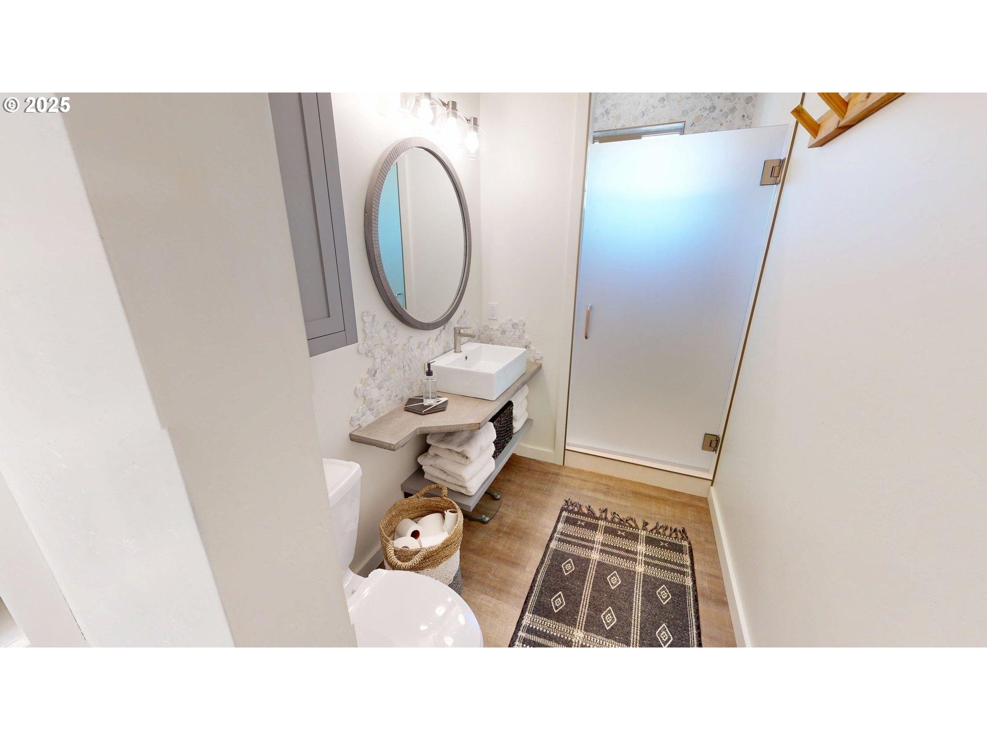 (503) 893-8874This expansive 2,188 sq. ft. home in Gold Beach, Oregon, offers a perfect blend of modern design and comfortable living. The two-level layout features 3 bedrooms and 3 bathrooms, including a main-level primary suite with approximately 190 sq. ft. of space.The open-concept living area combines the kitchen and living room, creating a seamless flow ideal for entertaining. The kitchen features sleek gray cabinetry, stainless steel appliances, and a stylish tiled backsplash. Floor-to-ceiling windows fill the home with natural light and frame views of the surrounding greenery, while warm luxury vunyl plank flooring enhances the inviting atmosphere.The primary suite offers ample space and modern amenities. Bathrooms are designed with walk-in showers and contemporary fixtures, with one bathroom featuring a convenient shower/tub combo. The upper level includes an additional living area with sloped ceilings and dormer windows—perfect for a home office, media space, or guest retreat. Outside, enjoy a charming backyard with a large, covered patio ideal for gatherings or quiet relaxation. A two-car garage adds convenience to this beautiful coastal property.