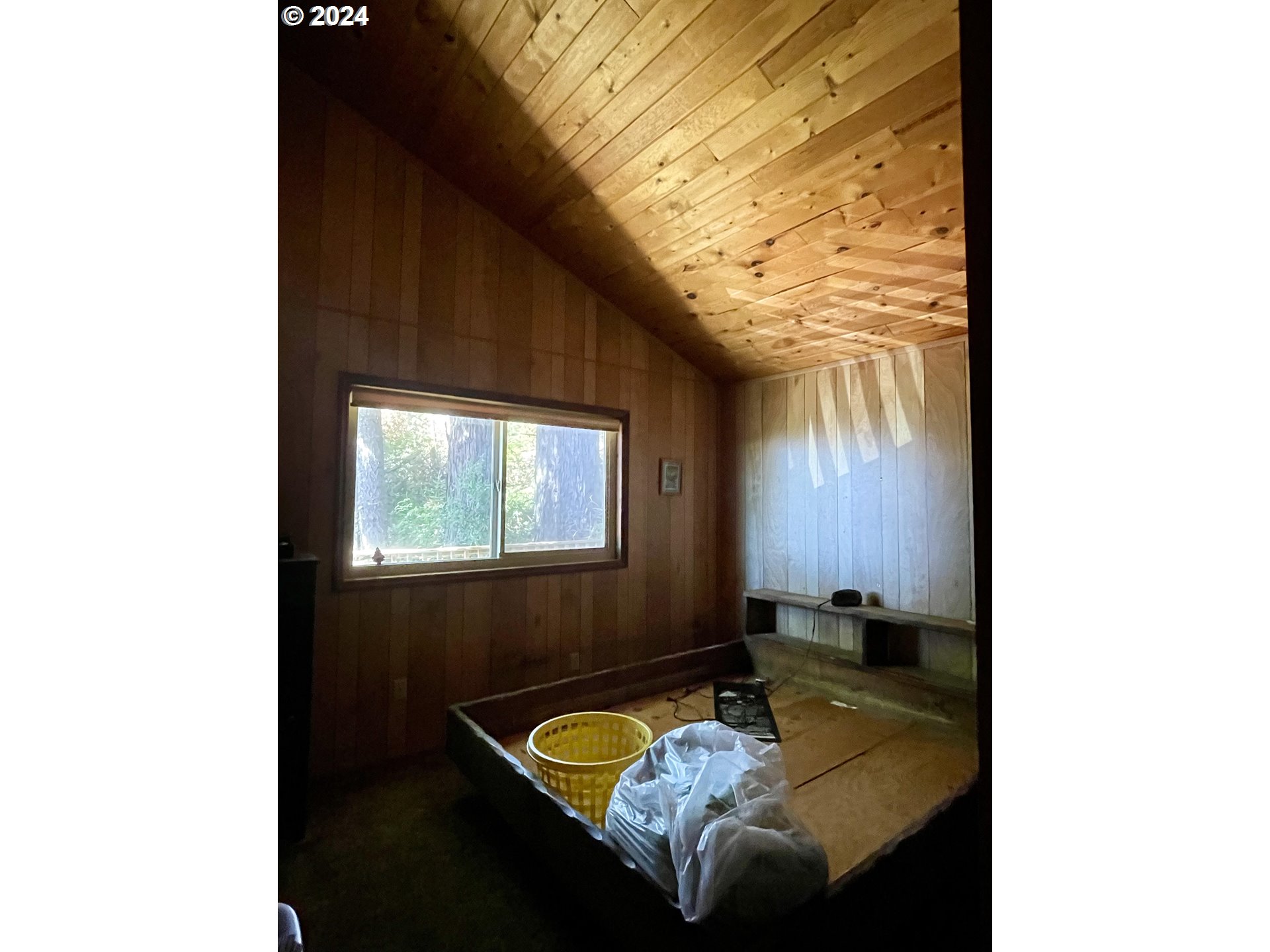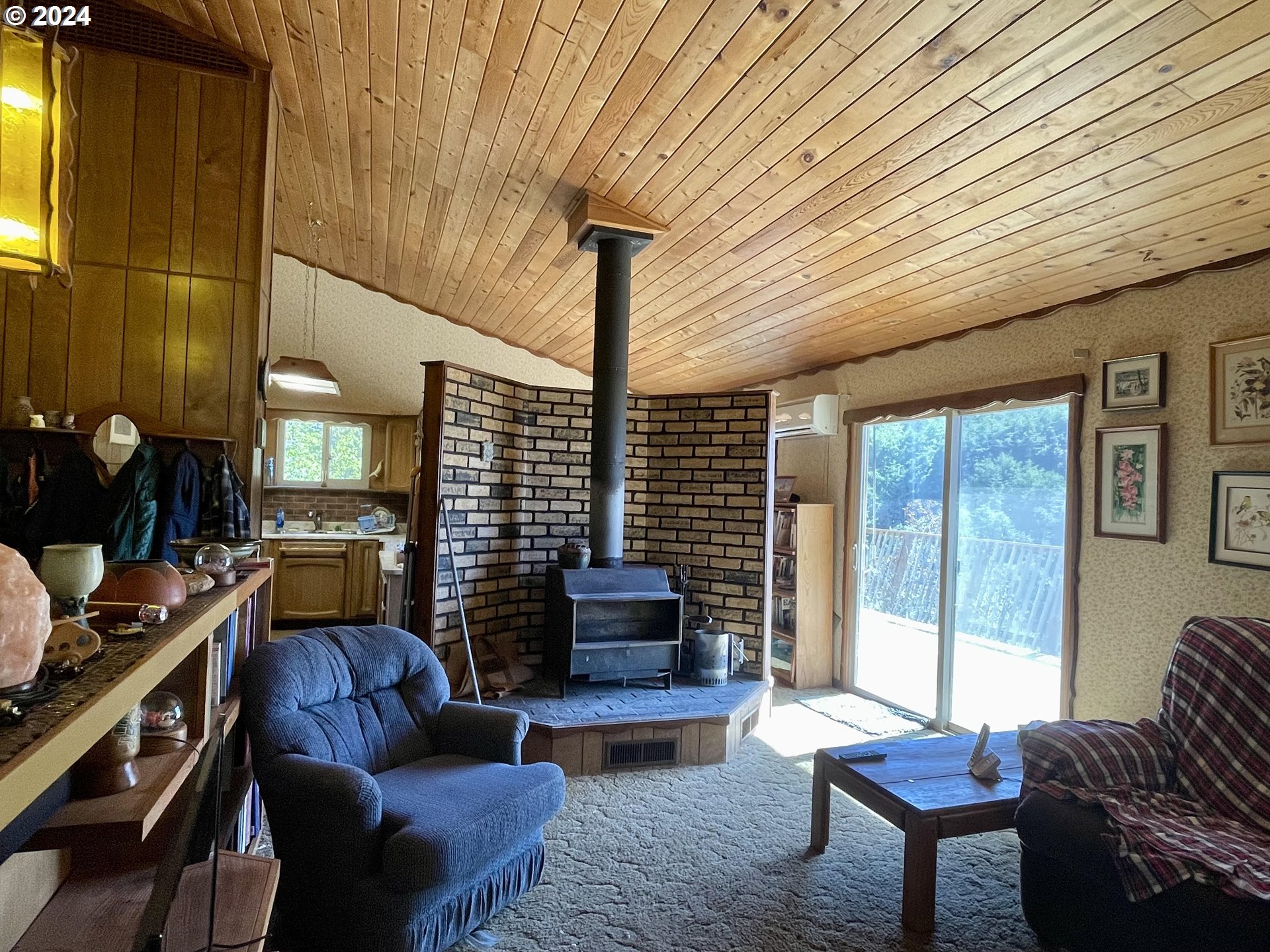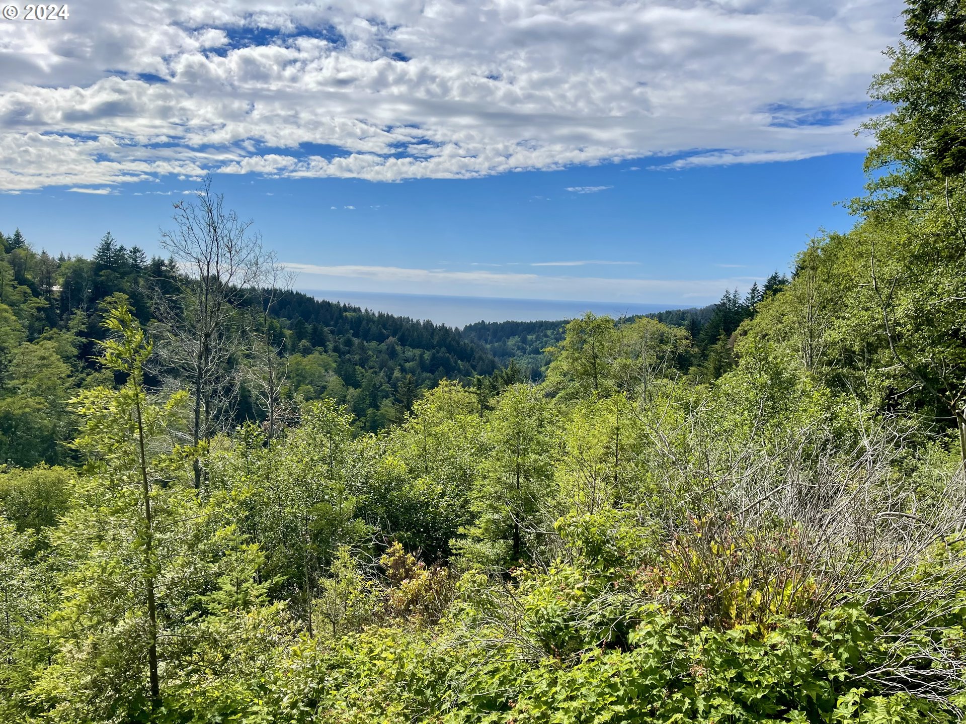 This cozy and rustic oceanview chalet offers serene and private country living, nestled on two tax lots for a total of 18.22 acres. With reverse floor plan, there are 2 bedrooms and 1 bath upstairs with full length oceanview deck that wraps the house on 3 sides; ample space for gatherings and BBQs. The bottom level offers a bonus room, utility room, double shop areas, and a single garage. The additional bonuses are excellent well (240') and septic systems AND SOLAR (electric bill is $25 mt)! There's a fenced area, room for garden, and even towering redwood trees in your own yard. You can see whitecaps, the ocean, and the sky distinctly from this distant oceanview. If you are looking for an affordable country home with a great oceanview, bring your finishing touches and make this yours. (Please do not lean against deck railing.)