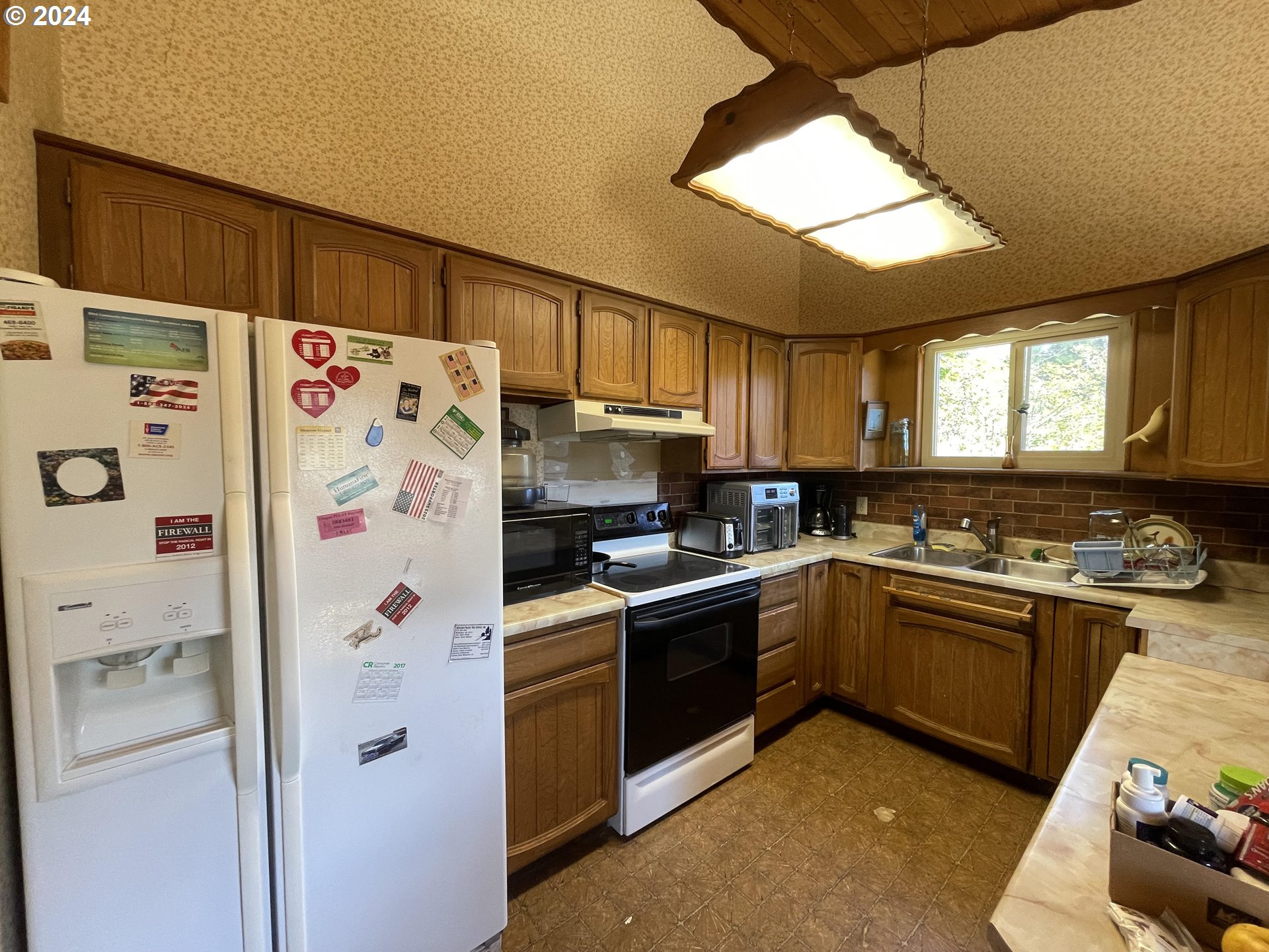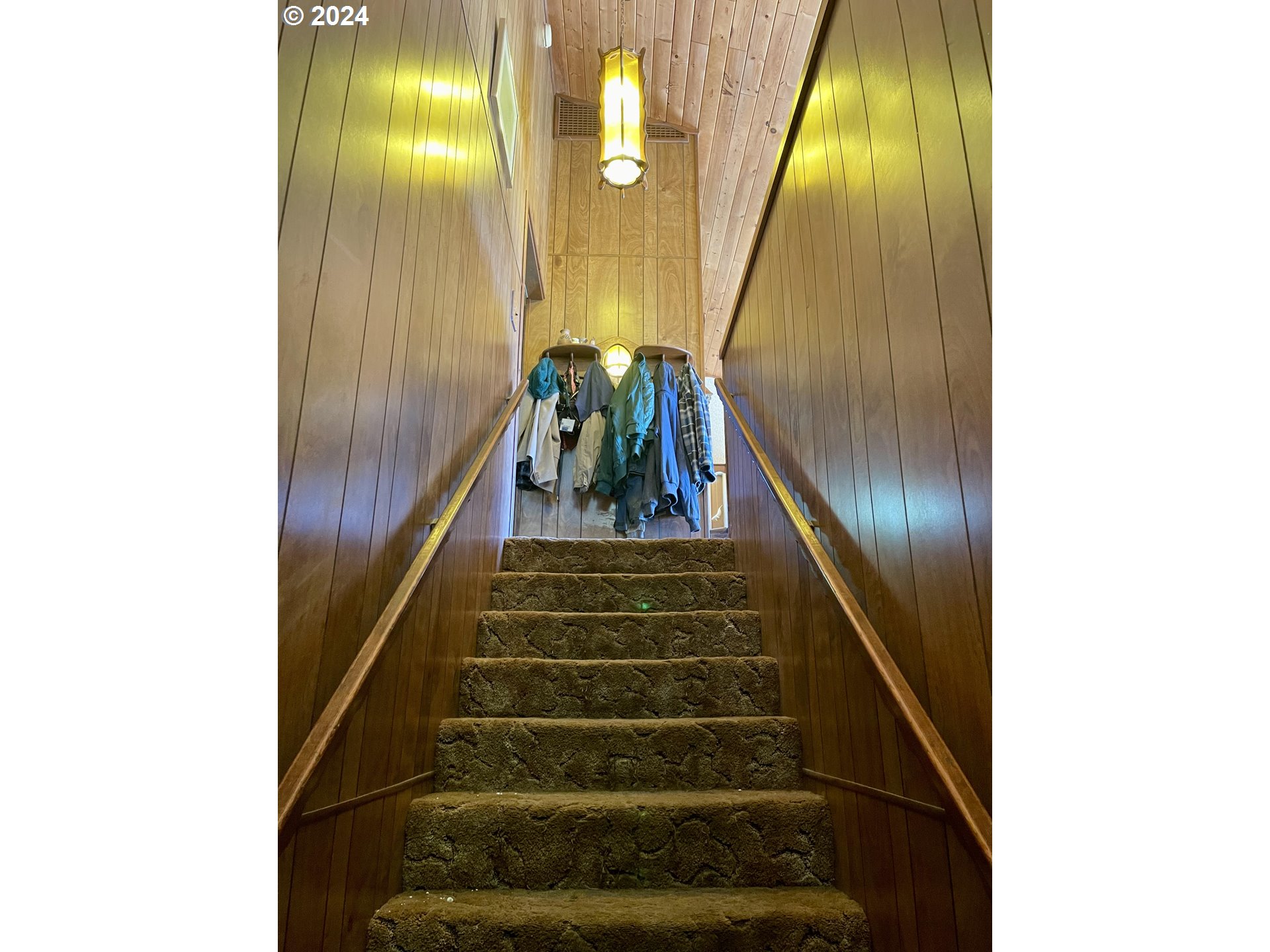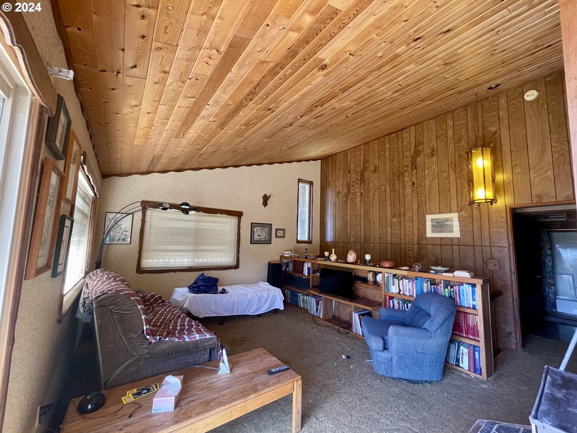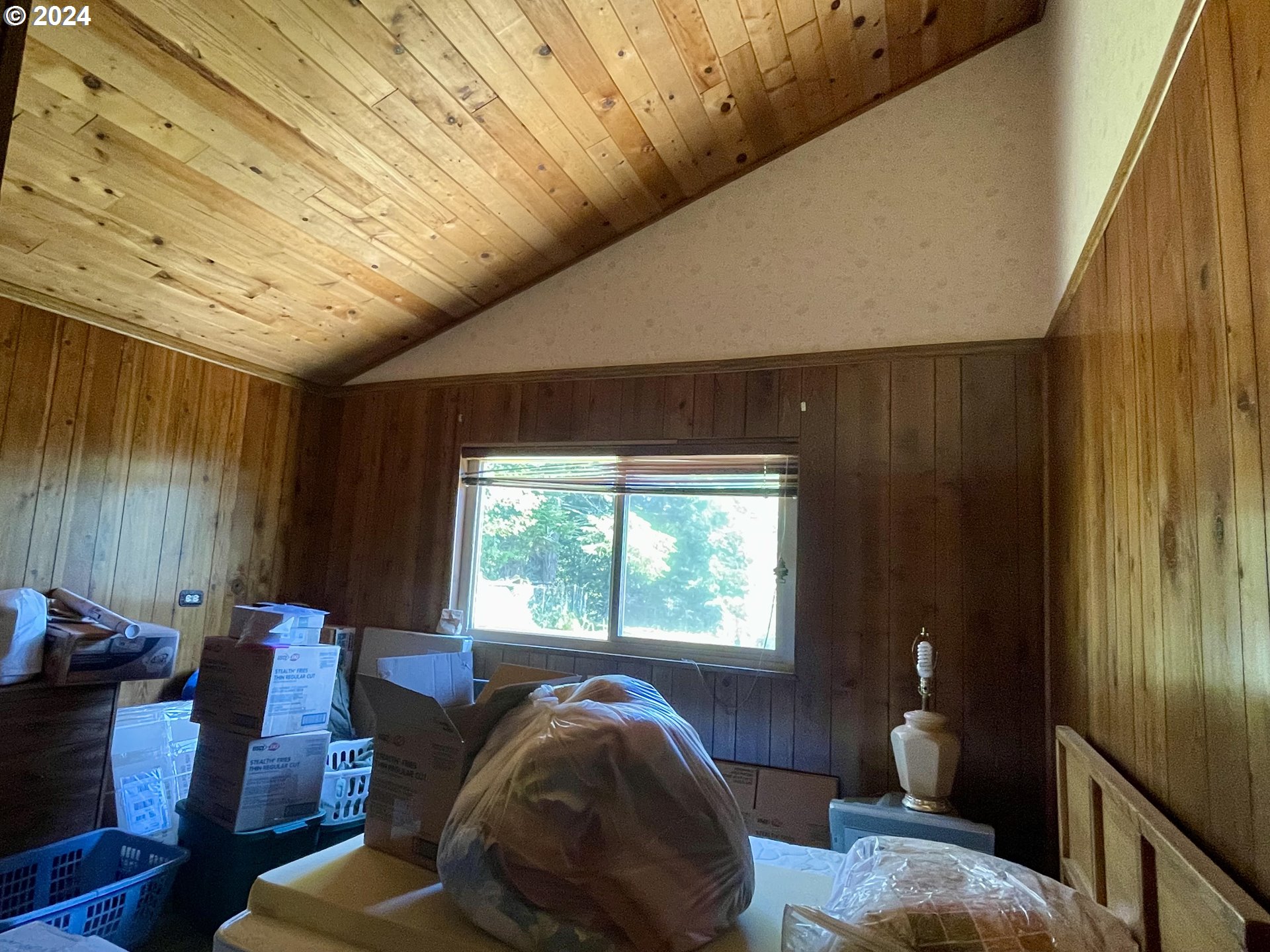 This cozy and rustic oceanview chalet offers serene and private country living, nestled on two tax lots for a total of 18.22 acres. With reverse floor plan, there are 2 bedrooms and 1 bath upstairs with full length oceanview deck that wraps the house on 3 sides; ample space for gatherings and BBQs. The bottom level offers a bonus room, utility room, double shop areas, and a single garage. The additional bonuses are excellent well (240') and septic systems AND SOLAR (electric bill is $25 mt)! There's a fenced area, room for garden, and even towering redwood trees in your own yard. You can see whitecaps, the ocean, and the sky distinctly from this distant oceanview. If you are looking for an affordable country home with a great oceanview, bring your finishing touches and make this yours. (Please do not lean against deck railing.)