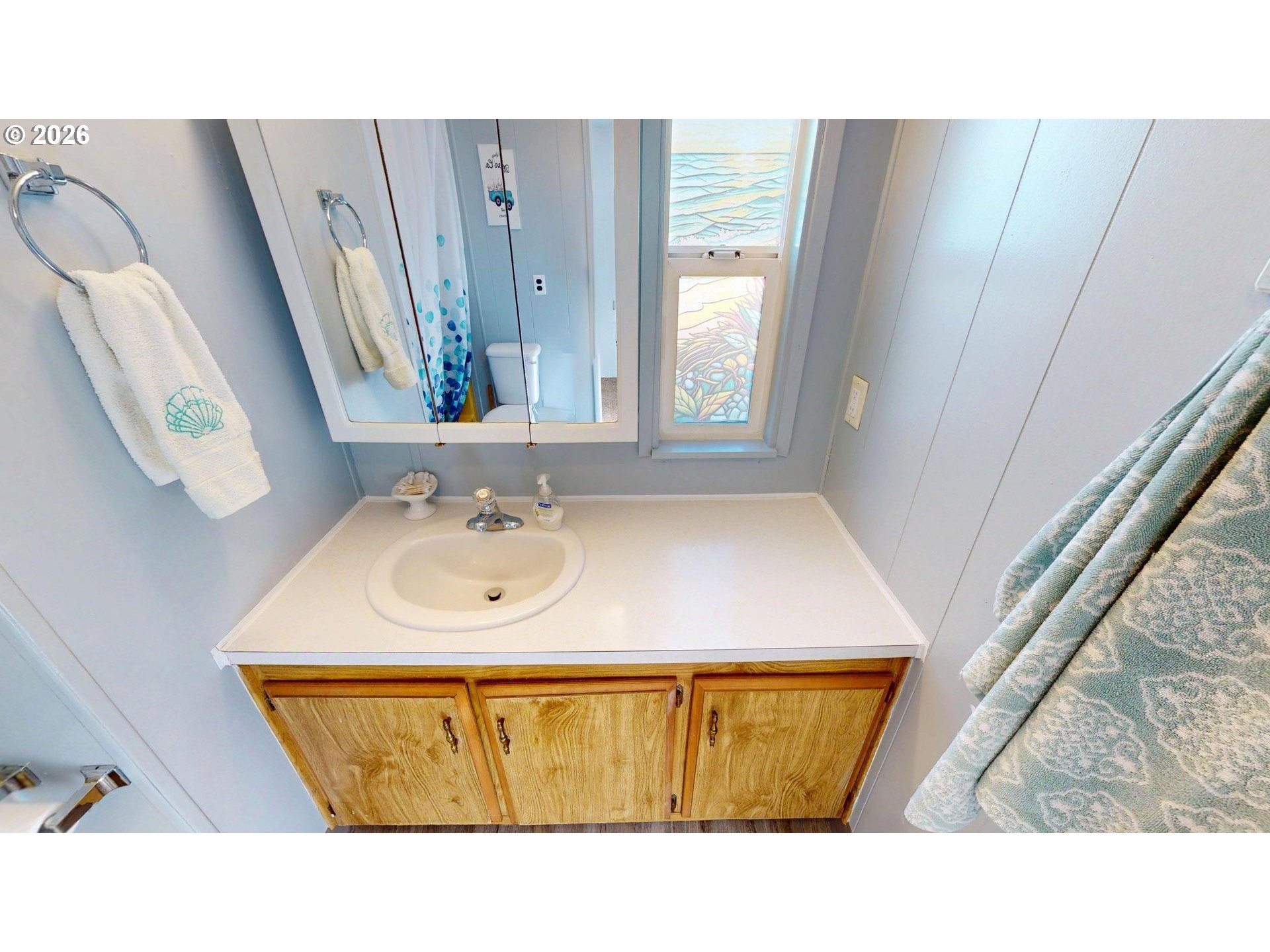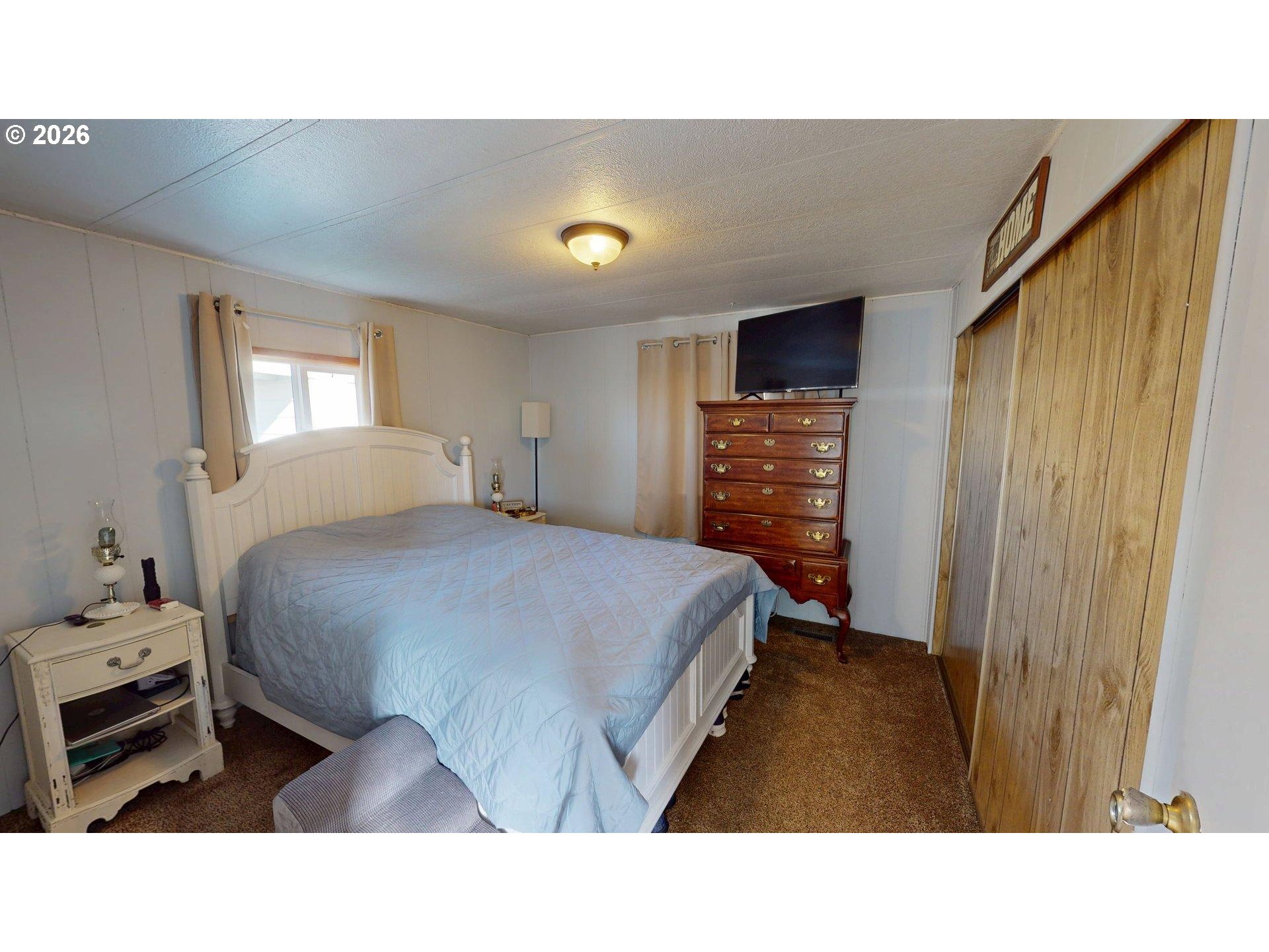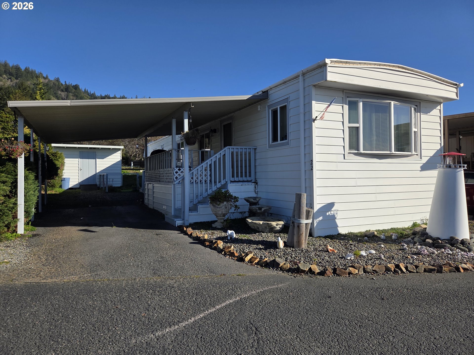 Beautifully updated home located in a quiet and friendly 55+ community. This well-maintained residence features a newer membrane roof with updated gutters, dual-pane vinyl windows, and a blend of laminate and carpeted flooring throughout. Enjoy the best of both worlds with ocean views from one side of the home and scenic mountain views from the other-a rare and relaxing combination.The bright, functional kitchen comes fully equipped with all appliances, a generous pantry, built-in storage, and a convenient eat-at bar—perfect for casual meals or morning coffee. The primary bedroom offers a comfortable retreat with an oversized closet for ample storage.Outside, a small, fenced area provides a great space for a small pet to enjoy. Affordable space rent of $695 per month includes sewer and trash, adding to the home’s overall value. Power and water are pro-rated between all owners in the park. One small pet is allowed. A wonderful opportunity to enjoy low-maintenance living in a peaceful setting with beautiful views in every direction.