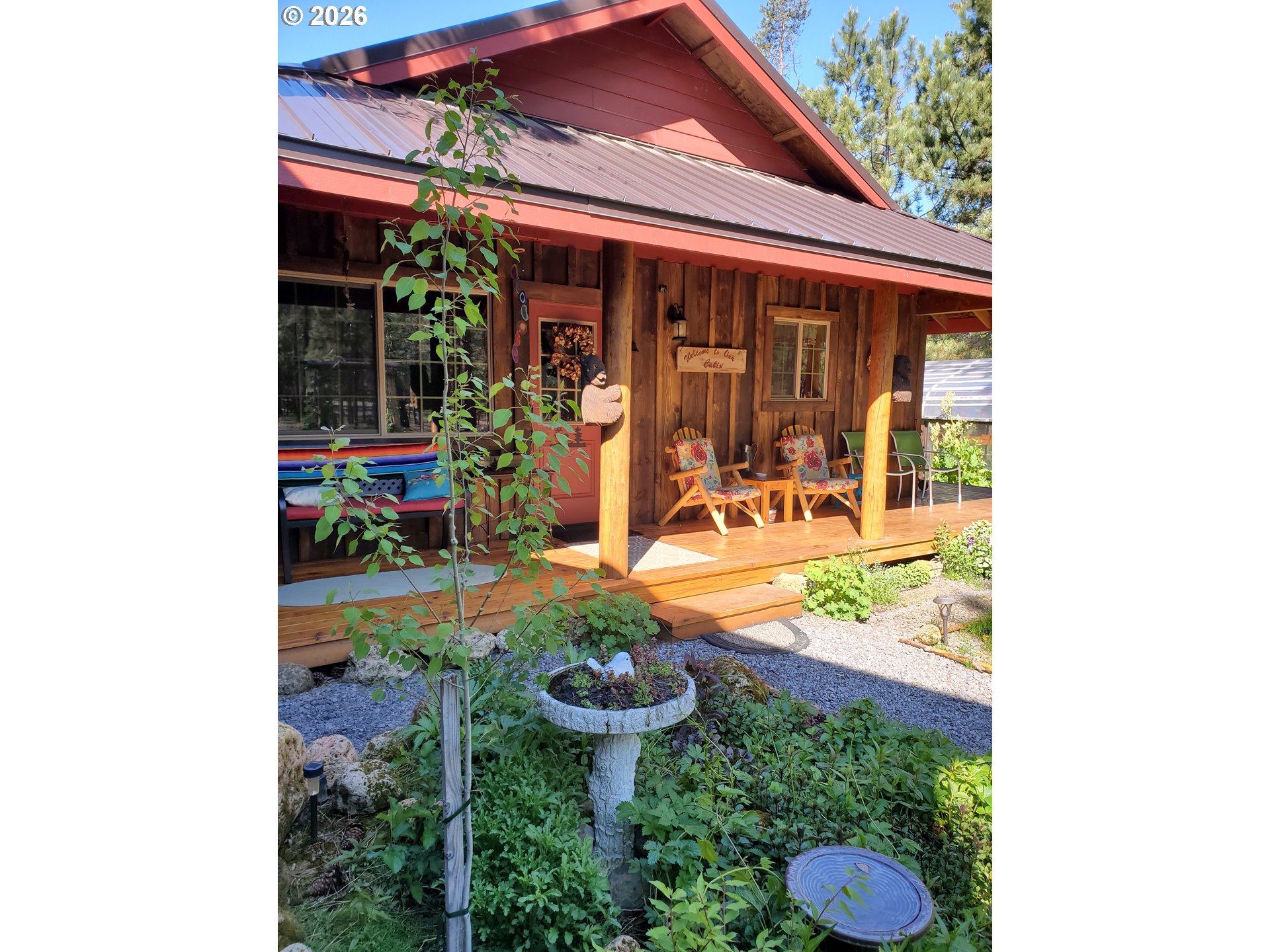 Live where you play! This beautiful log cabin nestled in Ponderosa Pines is just what you're looking for. Minutes from fishing, rivers, lakes, skiing, water sports, hiking, & trail riding, an outdoor lover's paradise. Property backs to acres of private forest land, offering access from your back yard. Fully fenced, gated, RV hookup and very private, home features the beauty of log construction inside & out, w/wood plank floors, open great room & kitchen w/pantry. Primary en suite has deck access. Second bdrm includes cozy loft. Outside, relax on 1 of 3 sides of the covered deck, perfect for birdwatching. Enjoy the beautifully landscaped yard w/arbor entry, pond, greenhouse & garden area for your green thumb, cozy fire pit, & hot tub for evenings under the stars. Detached garage is 1,296 sq ft, w/plenty of room for toys & space to work... And So Much More.