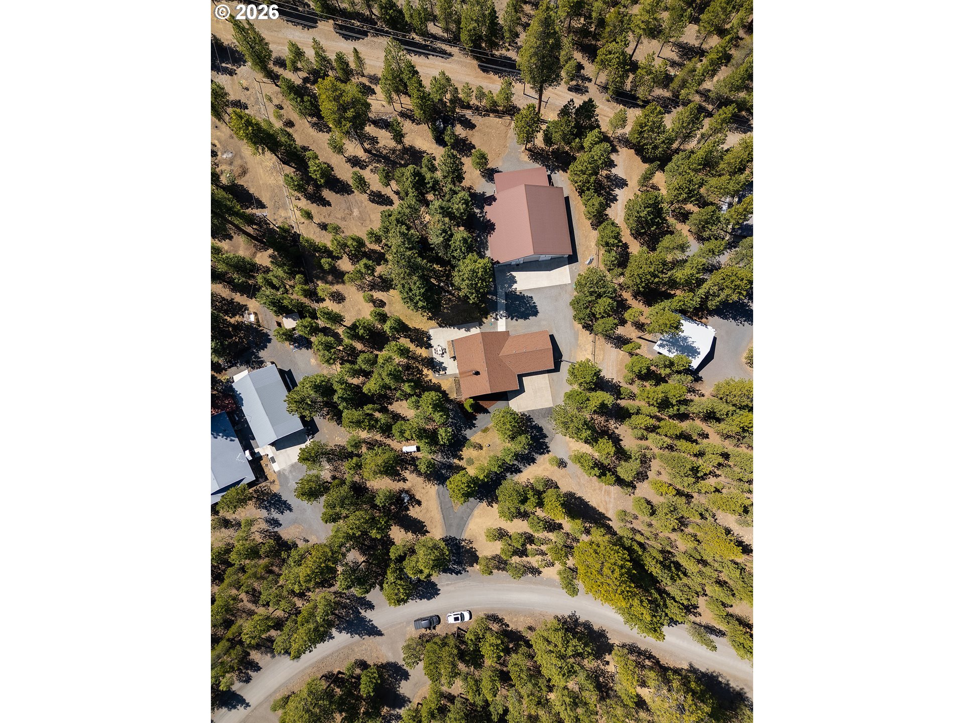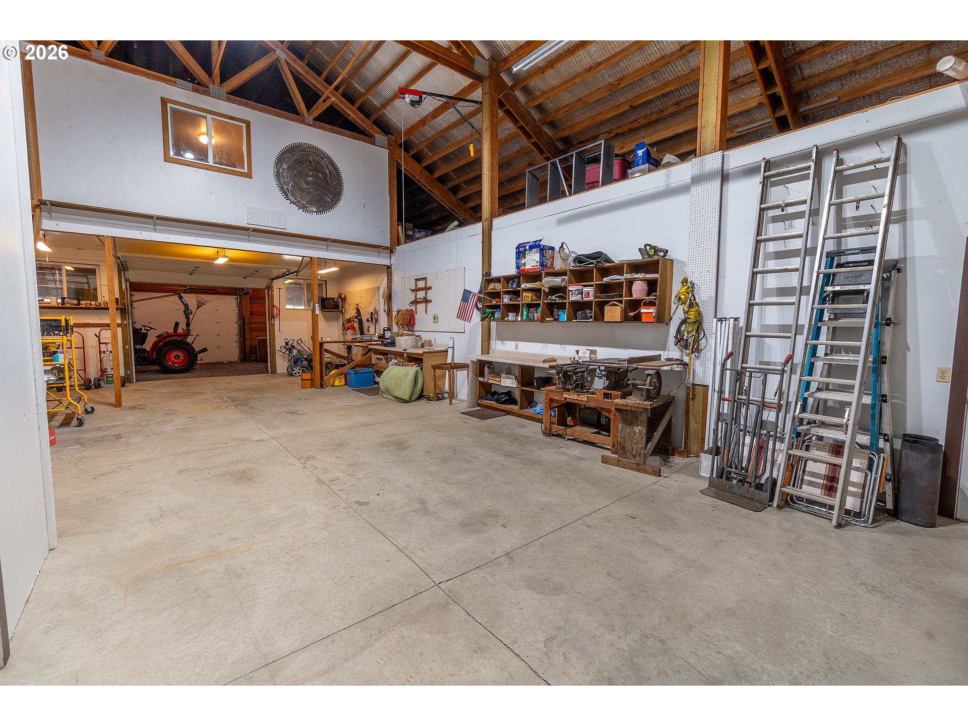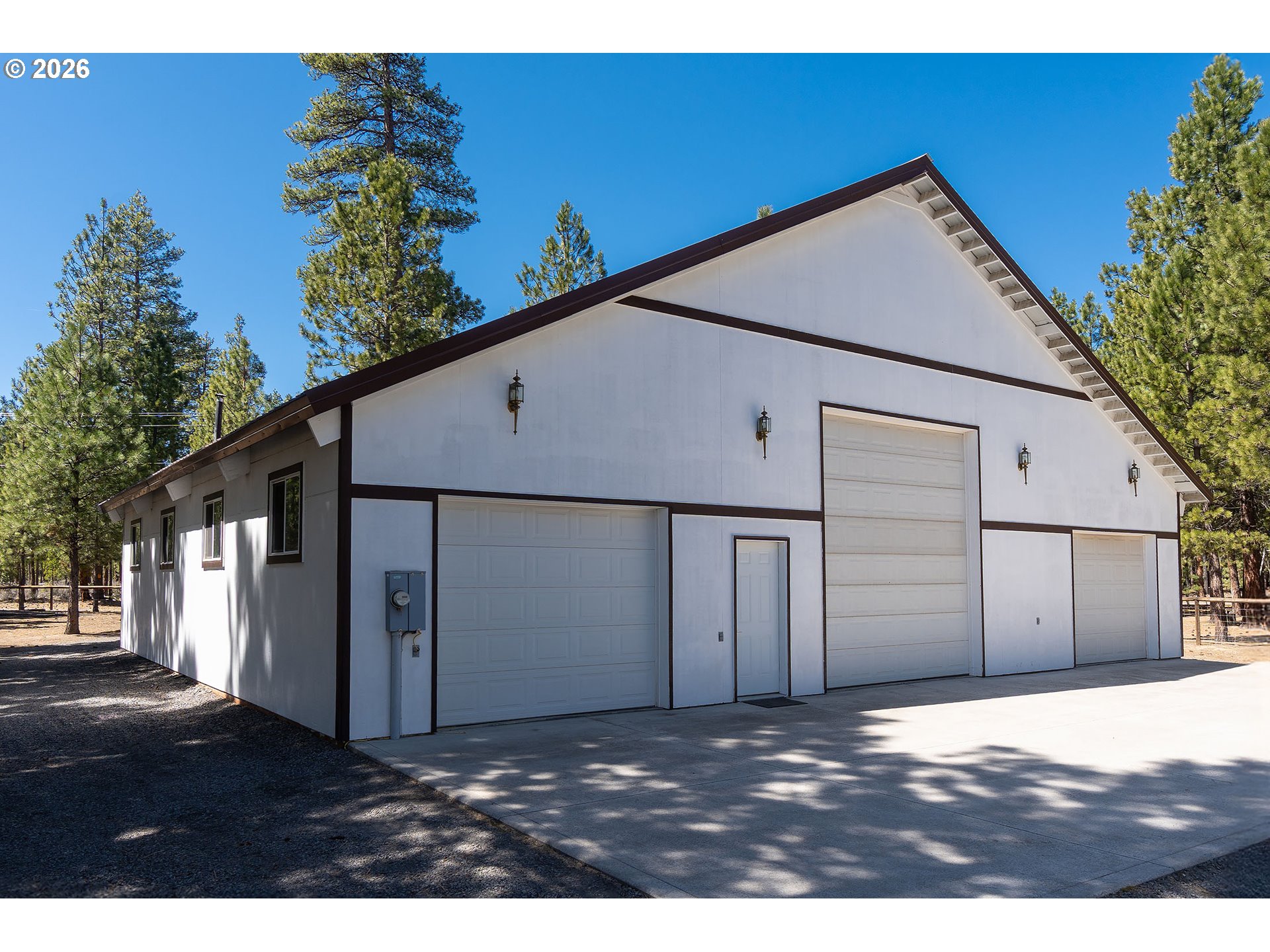 Discover your dream home nestled on 1.57 acres of serene land, backing onto private forest land with frequent wildlife sightings. This 3-bedroom, 2-bathroom gem boasts 2,104 sq ft of living space, featuring a primary suite on the main level, beamed ceilings, and a cozy library. Enjoy the modern comforts of new HVAC, new carpeting upstairs, newer stainless appliances, complemented by a huge walk-in pantry and ample storage upstairs. For the hobbyist or entrepreneur, a 2,688 sq ft, 3-bay shop which the two outside bays are insulated and finished awaits, complete with RV parking 13' door, 35' deep and storage. Entertain family and friends with a horseshoe pit, volleyball, badminton, and a fire pit for those cozy evenings. This property offers the perfect blend of tranquility and functionality, making it a must-see for anyone seeking a unique and inviting home.