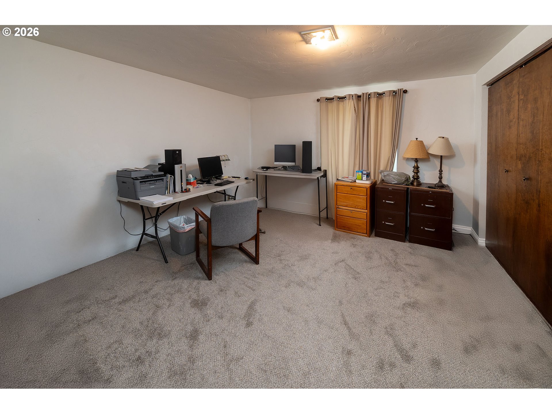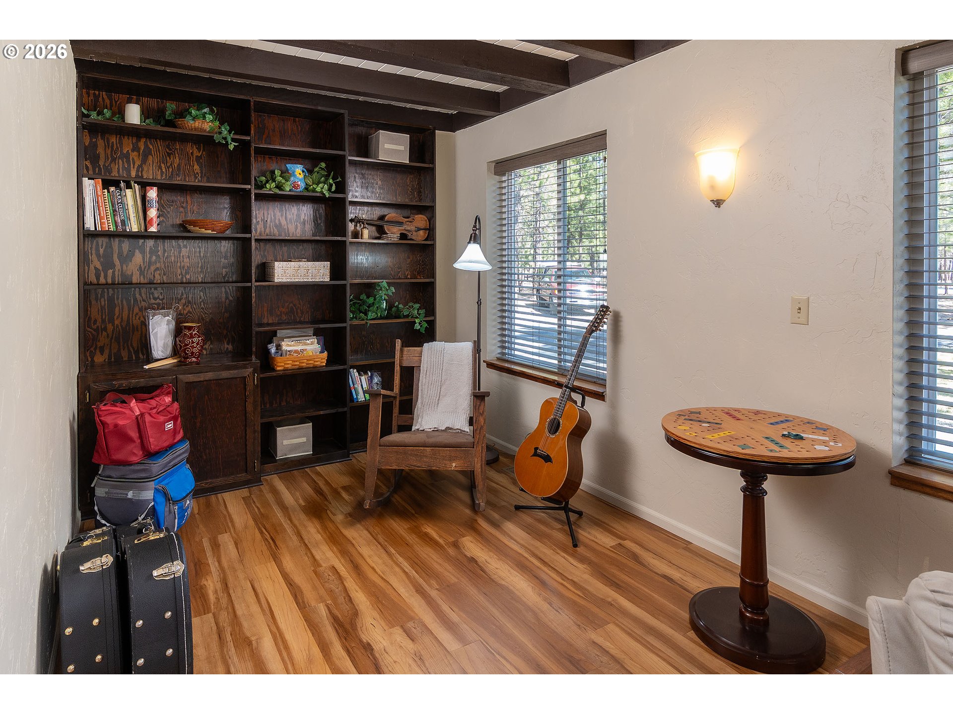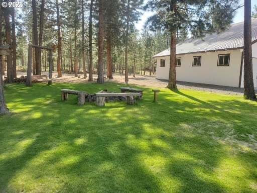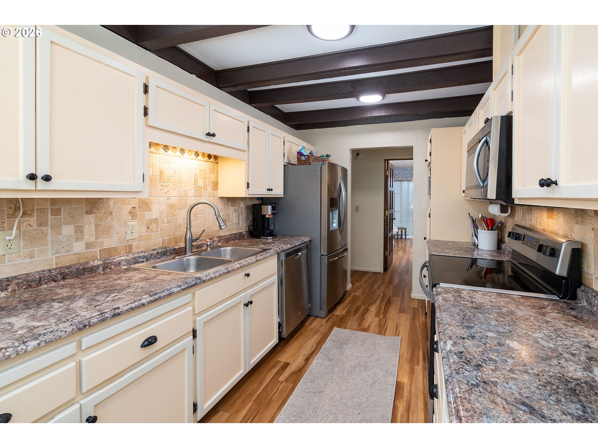 Discover your dream home nestled on 1.57 acres of serene land, backing onto private forest land with frequent wildlife sightings. This 3-bedroom, 2-bathroom gem boasts 2,104 sq ft of living space, featuring a primary suite on the main level, beamed ceilings, and a cozy library. Enjoy the modern comforts of new HVAC, new carpeting upstairs, newer stainless appliances, complemented by a huge walk-in pantry and ample storage upstairs. For the hobbyist or entrepreneur, a 2,688 sq ft, 3-bay shop which the two outside bays are insulated and finished awaits, complete with RV parking 13' door, 35' deep and storage. Entertain family and friends with a horseshoe pit, volleyball, badminton, and a fire pit for those cozy evenings. This property offers the perfect blend of tranquility and functionality, making it a must-see for anyone seeking a unique and inviting home.