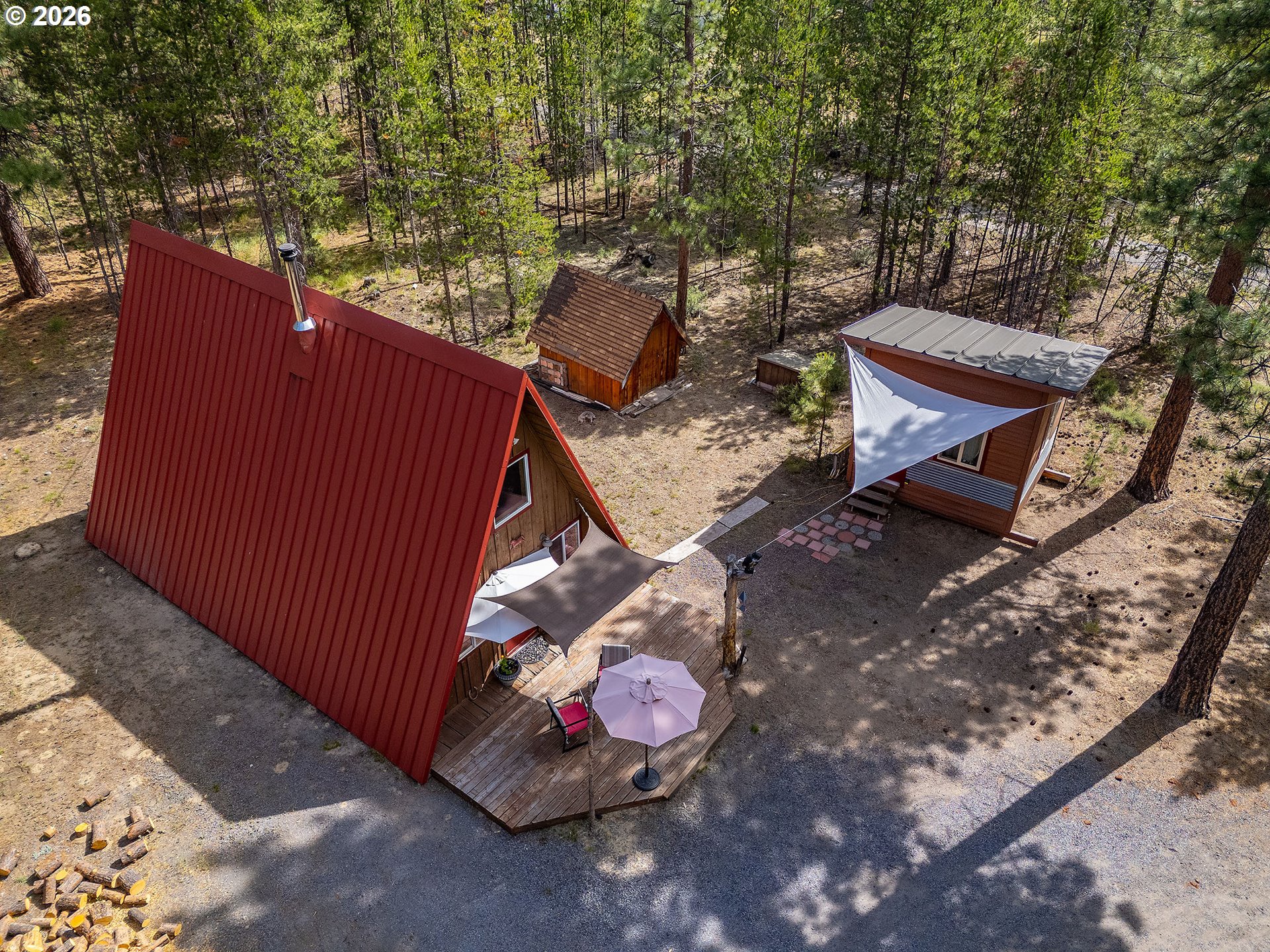 Have you DREAMED of the cute cabin in the woods? What about a Cozy A FRAME on 3 acres of FIRE WISE horse property. The home is a quaint 1 bedroom on the main (possibly another on 2nd floor) with 1 bath, laundry, living room and kitchen on the main. An adorable Art studio approximately 10x12 just outside the home. Great Hay storage in the large container on the property holds approximately 5 tons of hay and the front section as a tack room. A very functional overhang on the container provides shelter for the horses from the elements. The property is fenced and cross fenced on approximately 2 acres at the back of the property. There is also a small shed for storing other items and a nice sized woodshed. Located just 5 minutes from the center of the city with all types of stores, medical offices, restaurants, food trucks and tons of community activities happening throughout the year. Home is SOLD AS IS.