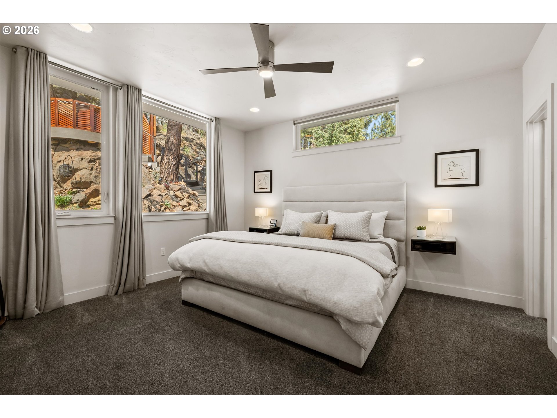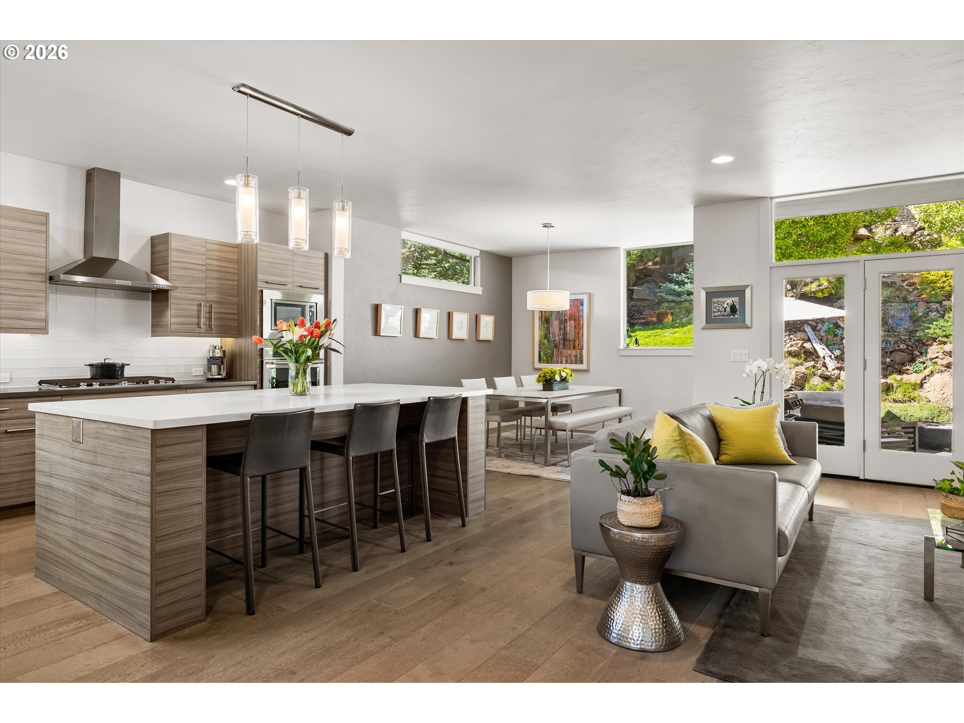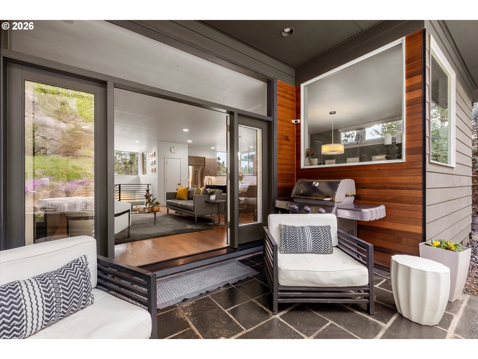(503) 893-8874This contemporary Earth Advantage home is a peaceful, private retreat tucked into a hillside on the Westside. Elevated main floor living with a chef's kitchen that flows into a light filled great room with a striking 25 ft waterfall feature and a mature landscaped backyard. Outside is a secluded hillside hot tub, perfectly positioned for quiet evenings under the stars. Thoughtfully designed spaces include a spa inspired primary suite, dedicated office, cozy den, home gym with a custom sauna, and two guest rooms—all with treetop views from nearly every window. With quick access to the Deschutes River Trail, Phil's Trails, Tetherow, Mount Bachelor, downtown Bend, and the Old Mill District. This is a home you need to experience in person.
