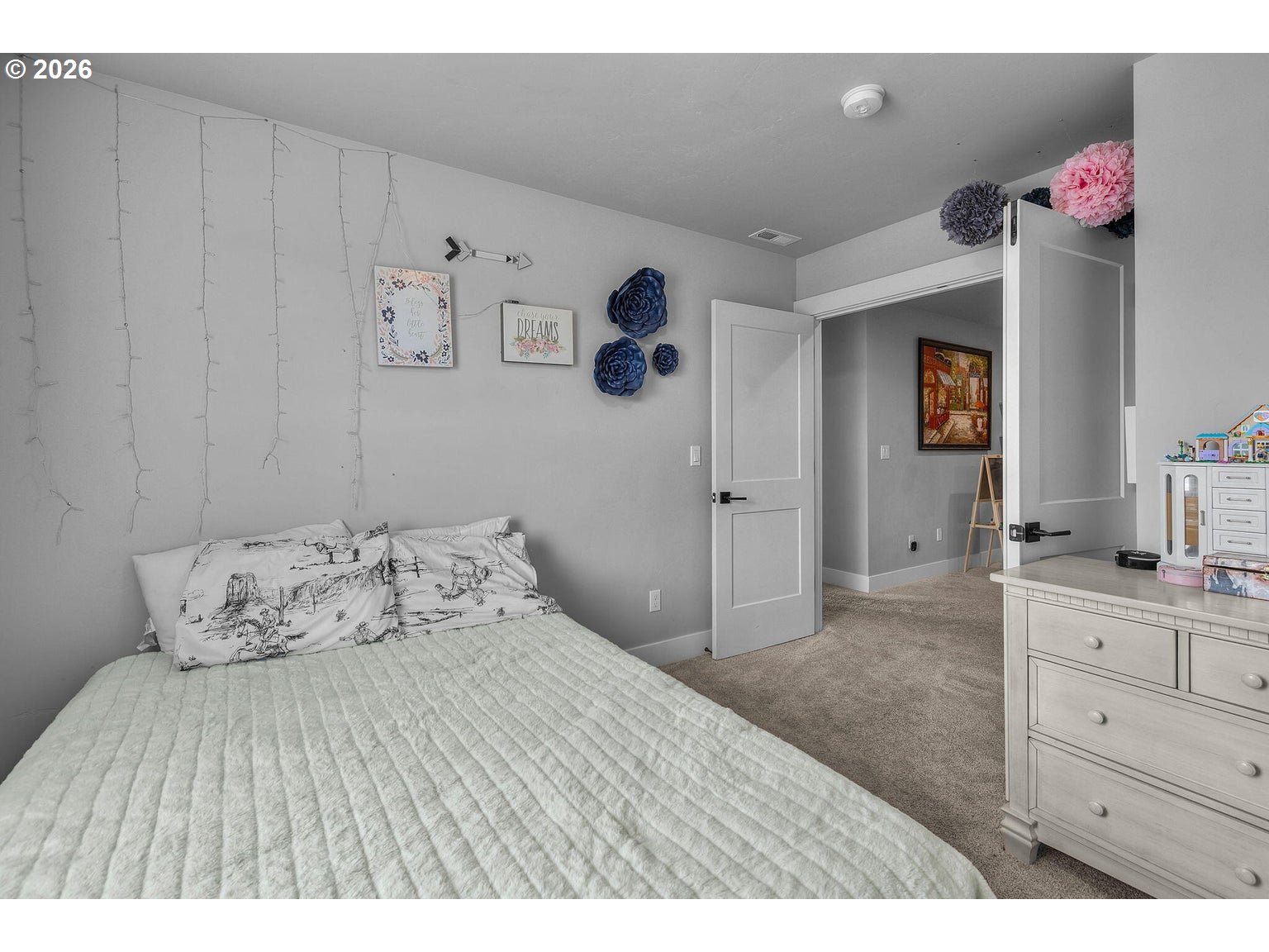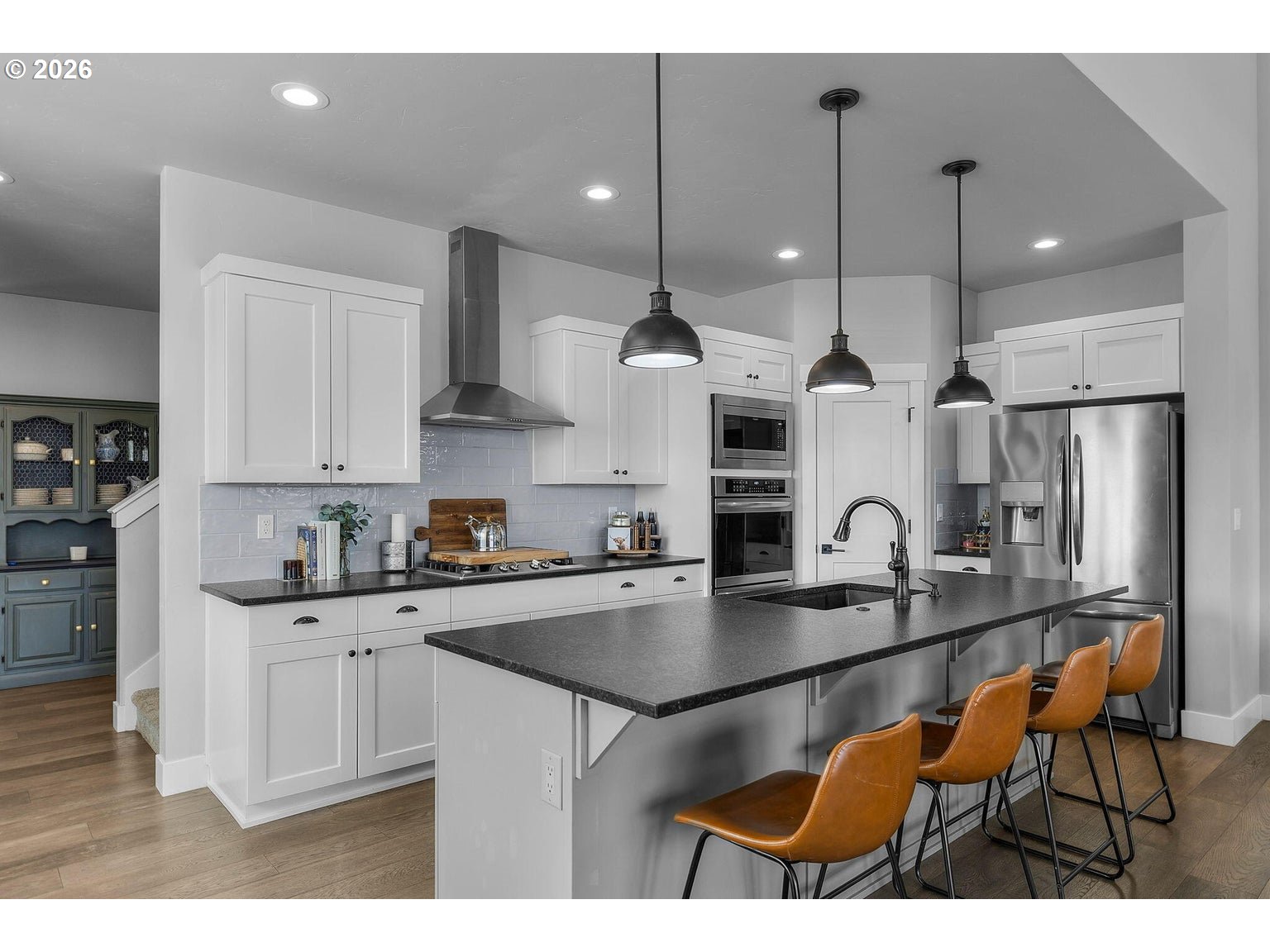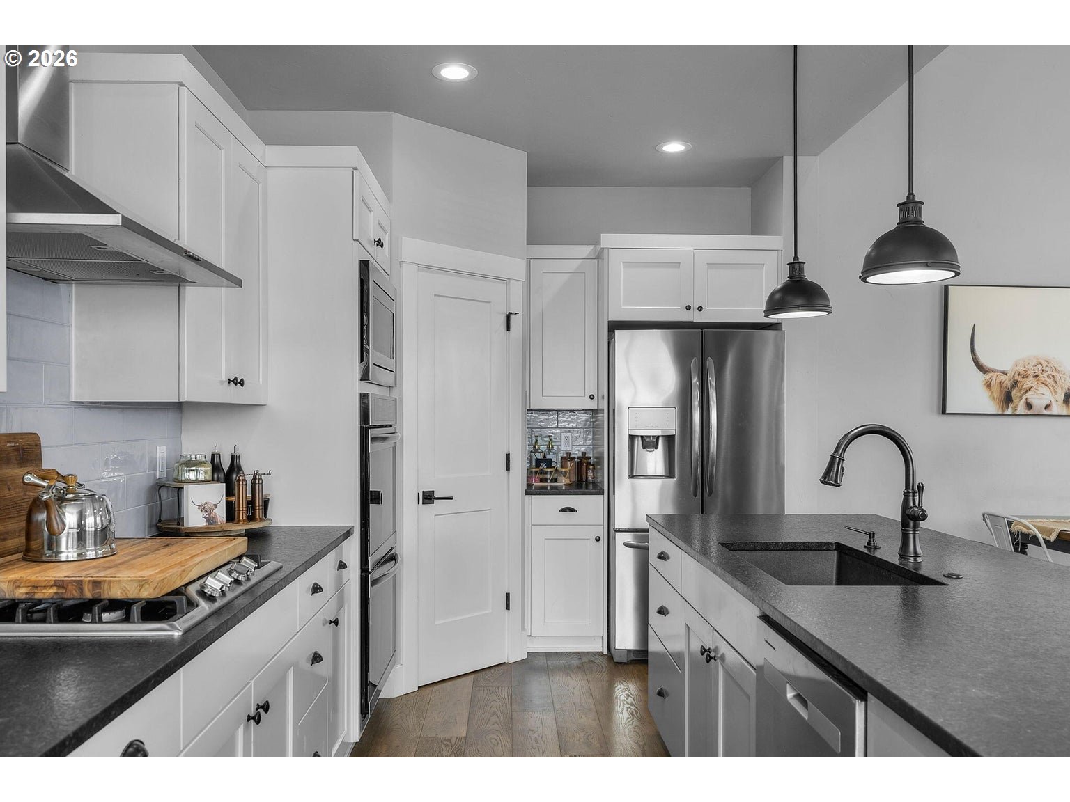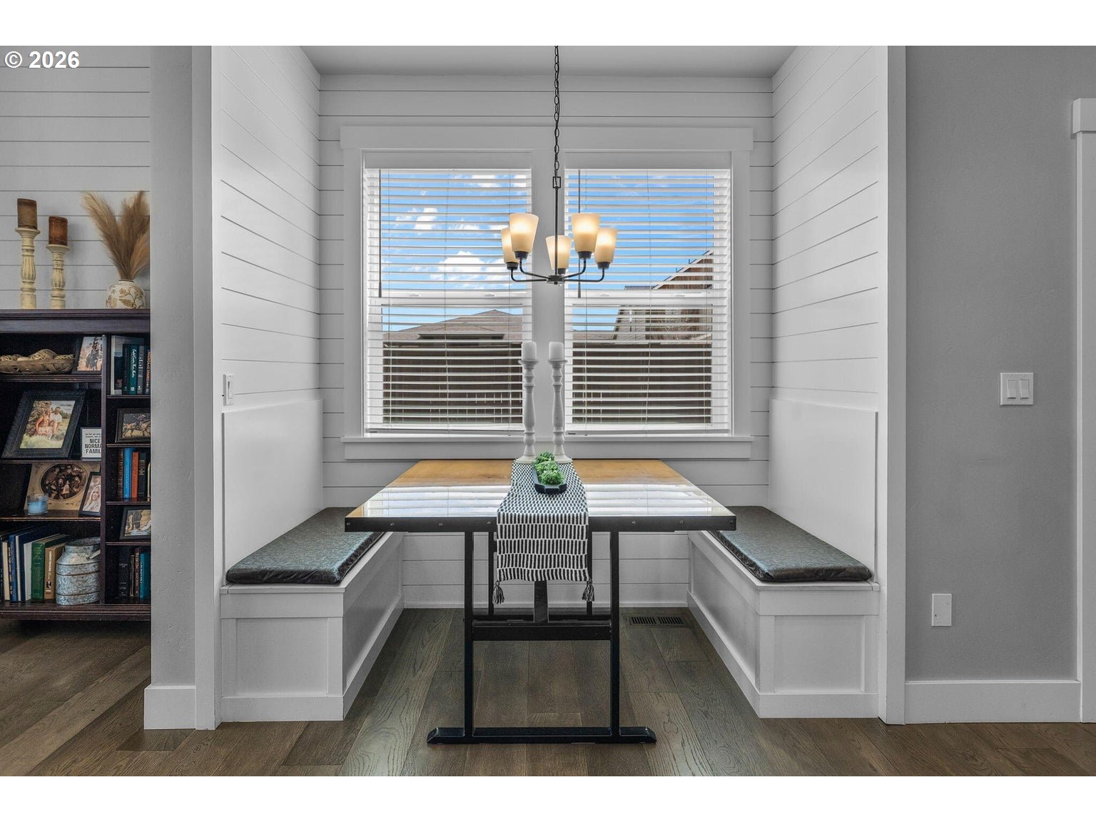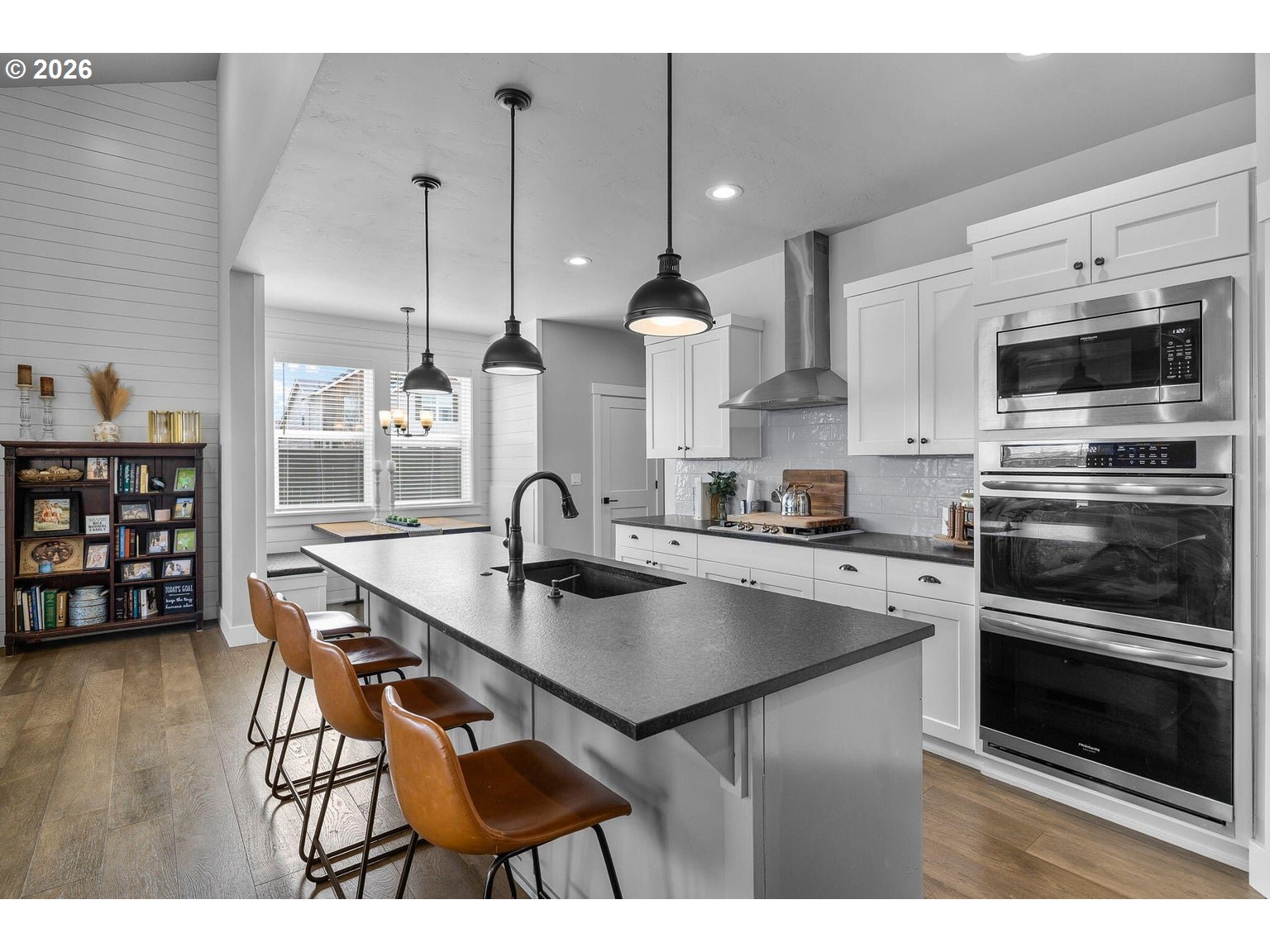 Welcome to Prairie Crossing -- SW Redmond's sought-after community ftring a 1.41-acre park, covered pavilion, dog park, bocce court & walking trails. The spacious entryway opens to a vaulted great room flooded w/natural light from lg windows throughout, a cozy stacked stone fireplace w/mantle & decorative shiplap accent wall. An open concept Chef's kitchen ftrs a large central island w/breakfast bar seating, black leather granite counters, gas cooktop w/hood, built-in double ovens, corner pantry, abundant cabinetry/prep space & built-in eating nook. Formal dining area w/sliders leads to the covered back porch. Primary suite on main w/patio access, bathroom w/heated tile flrs, his/hers sinks, tiled walk-in shower & massive closet. Upstairs bonus area + 3 addntl well-appointed bedrooms share full bath. Large mudroom/laundry w/storage & sink. Substantial backyard w/raised garden beds surrounding the perimeter & auto sprinklers. Min to downtown Redmond, restaurants, local amenities & more.