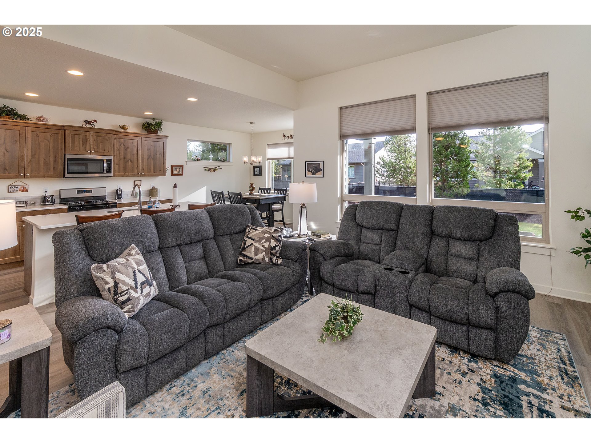 Beautiful Crescent Creek Pahlisch home lightly lived in and fully fenced. Welcoming luxury plank flooring and carpet in the bedrooms, double vanity in primary and nice walk in closet. Kitchen has quartz counters, pantry, kitchen island for enjoying friends and family while preparing meals. Plenty of windows for enjoying the beautiful weather of Central Oregon. A gas fireplace in the living area to cozy up to on the chilly nights while listening to your favorite music or watching a great movie. Walk in and unpack and start enjoying all that Central Oregon has to offer while living just a few miles from the grocery stores, coffee shops, food carts, doctors, banks and the fun life that La Pine offers to it's community.