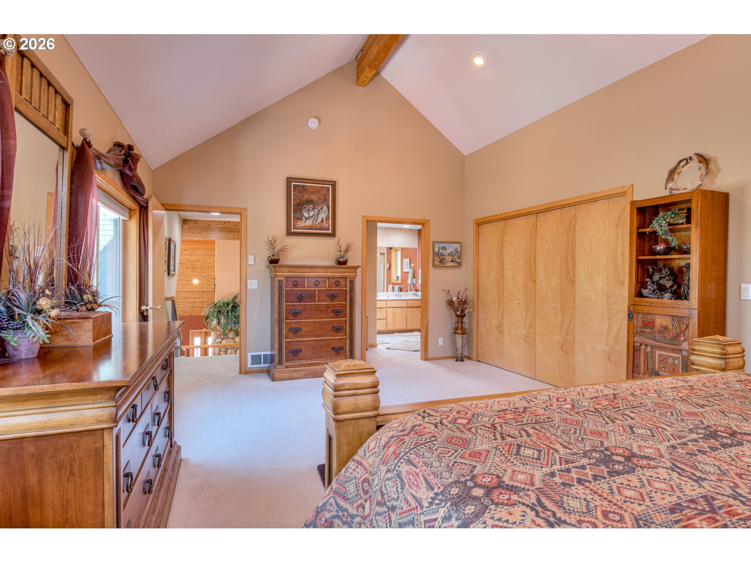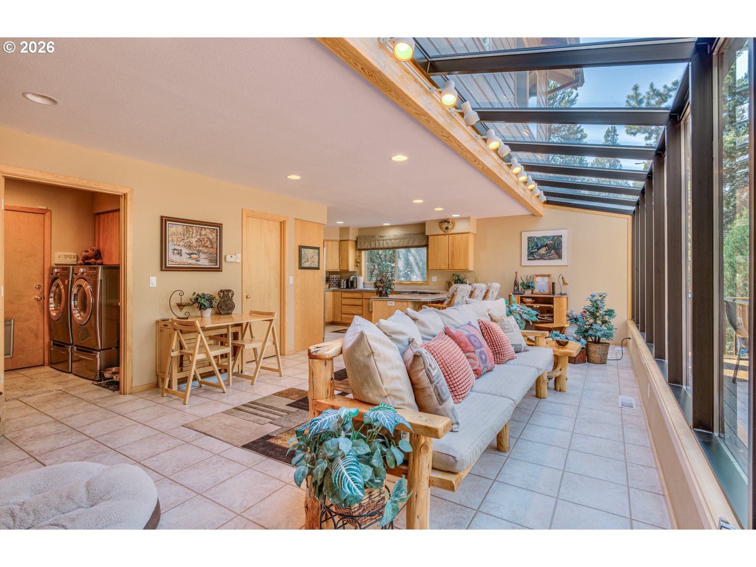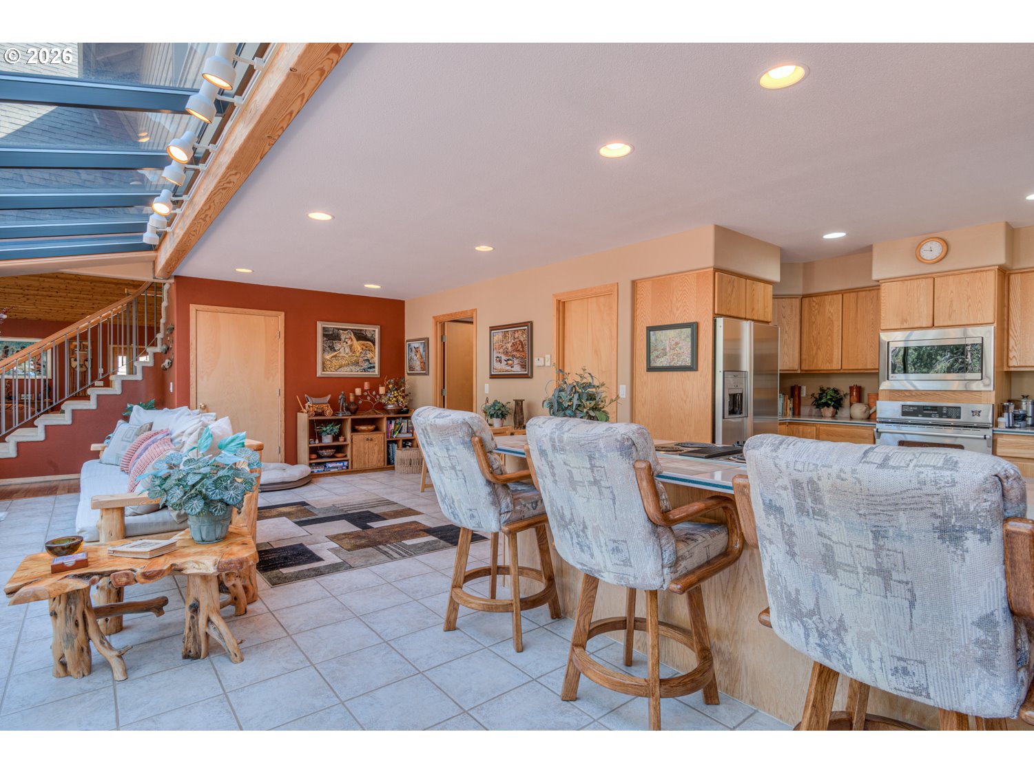 This stunning Big Deschutes riverfront home offers a seamless blend of warmth and architectural design, highlighted by a magnificent living room with Tiger Wood hardwood floors, two-story floor to ceiling windows looking out to the river, vaulted cedar ceilings, and river rock surrounding a high efficiency pellet stove. The thoughtful design ensures breathtaking, panoramic Deschutes views from the kitchen, dining area, living room, and the oversized private primary suite. This 3 bedroom, 2 bath home with over 2400 sq ft of living space offers newer stainless appliances, solid surface countertops with a large glass enclosed dining area to observe the amazing river views. Outside, the hot tub and large wrap around cedar deck provides the ultimate vantage point for the river, overlooking a large, beautifully landscaped yard that leads directly to the water's edge and private floating dock. Completing this exceptional property is an oversized three-car garage.