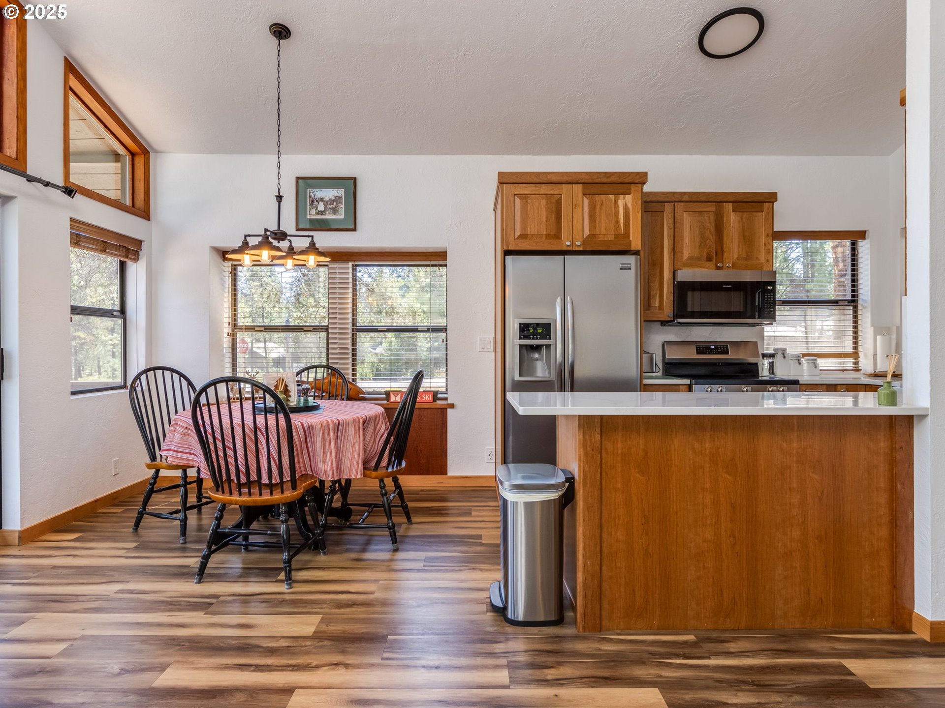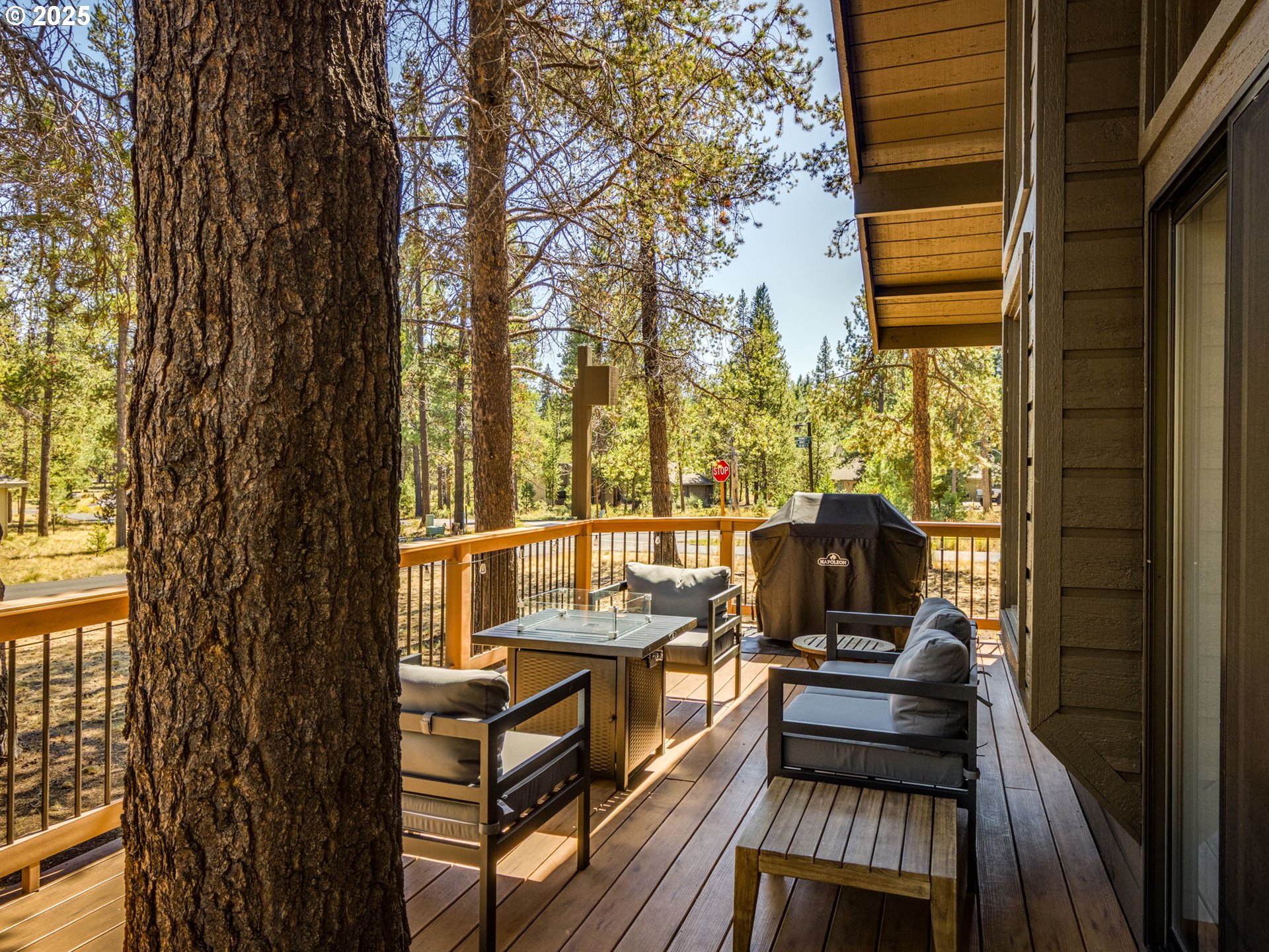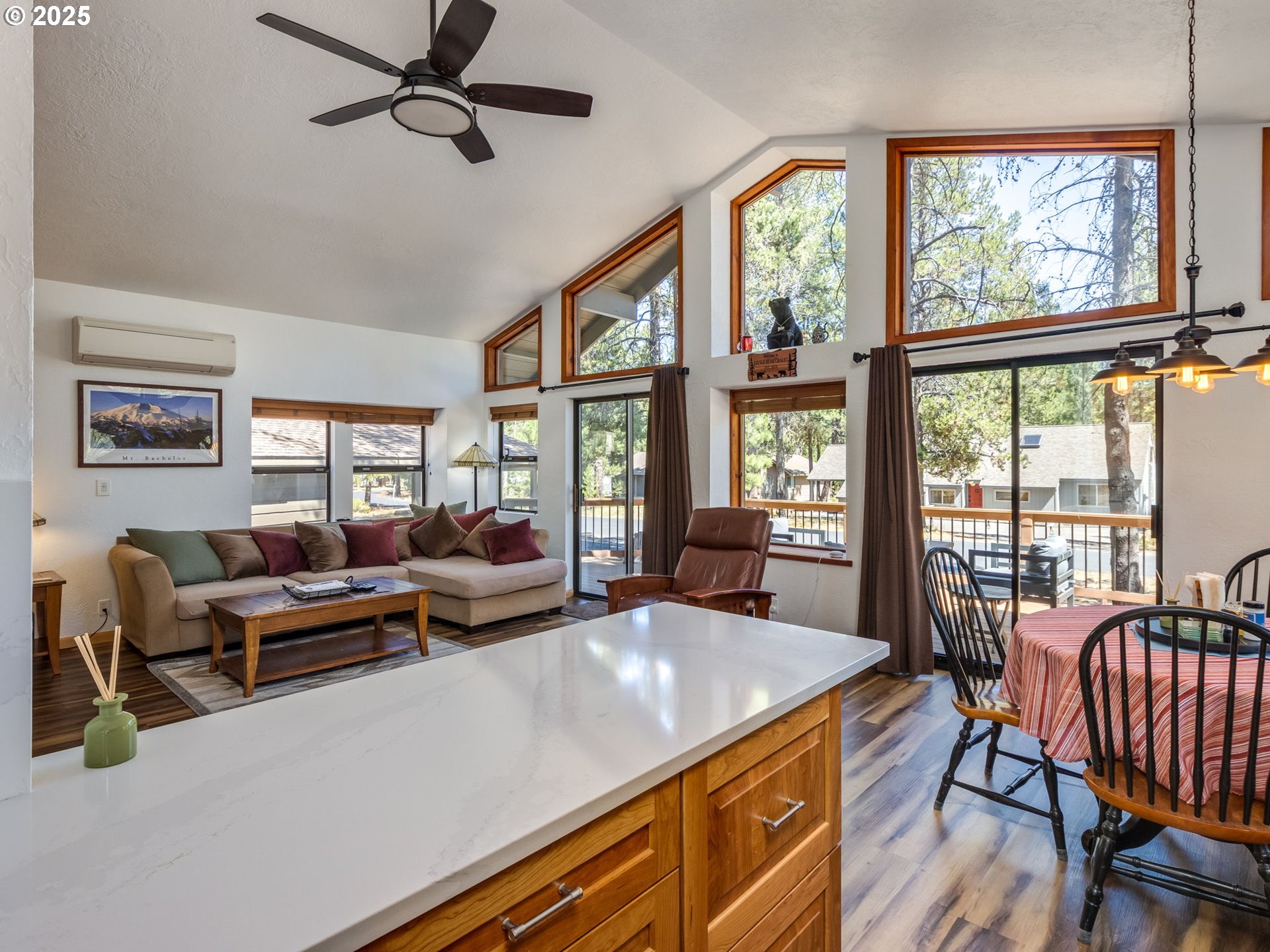 Welcome to #1 Indian Lane, a charming full-time residence or serene vacation retreat nestled in the heart of Sunriver, Oregon. This cozy home features a main-level bedroom and full bath, a spiral staircase leading to a spacious primary suite with exposed beams, and a generous open-concept living area with vaulted ceilings, a gas fireplace, and walls of windows that flood the space with natural light while framing the surrounding beauty. The fully modernized gourmet kitchen boasts soft-close cabinetry and drawers, a farmhouse sink, quartz countertops with full backsplash, and all-new stainless-steel appliances. New recessed lighting, luxury vinyl flooring, and fresh interior paint throughout the main floor add a special touch of modern elegance. Year-round comfort is ensured with oversized mini-split systems and new baseboard and wall heaters. Step outside to a freshly painted exterior and enjoy a massive private front Trex deck—perfect for evening grilling and large gatherings—a covered rear deck for peaceful mornings, and an upper deck off the primary bedroom for coffee with a view. A detached carport with lockable storage for bikes and gear adds convenience, and with easy access to Sunriver’s top amenities—golf, parks, trails, SHARC, the Deschutes River, and more—this home is your gateway to relaxation, adventure, and lasting memories. Sold fully furnished. Improvements and Upgrade list available.