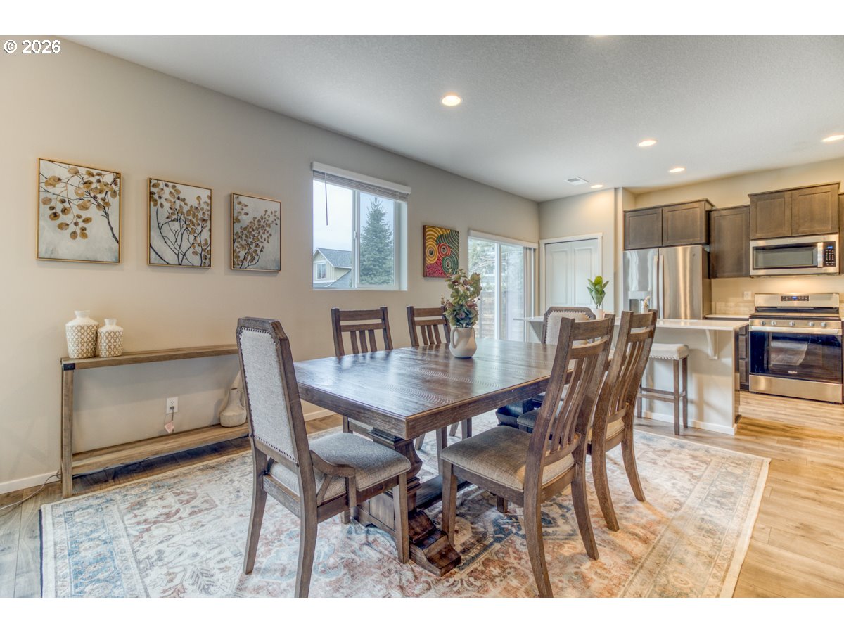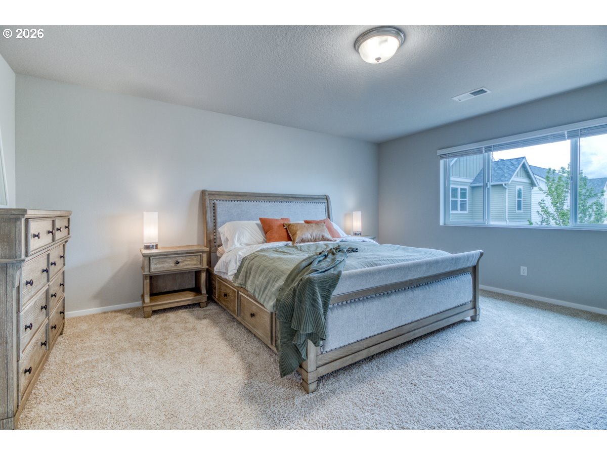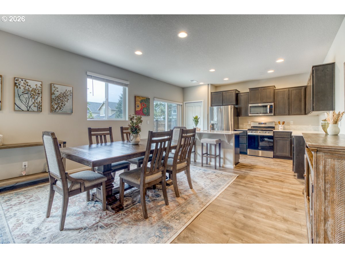 Better than new and thoughtfully designed for modern living, this pristine home offers the perfect blend of space, flexibility, and style, featuring 4 generously sized bedrooms plus a large versatile 5th bedroom that could easily function as a bonus room, guest room, or media space. The open-concept layout creates a seamless flow for everyday comfort. The west-facing primary suite offers a peaceful retreat with mountain views, creating the perfect setting to enjoy Central Oregon sunsets. Step outside to a private backyard that provides a quiet escape for relaxing or entertaining.Featuring Nest and GE devices that are Google Home compatible and an EV charger for added convenience and modern functionality. The kitchen is equipped with stainless steel appliances, and the refrigerator, washer, and dryer are all included—making this home truly move-in ready. Located in SE Bend within the Old Farm District, this home features a community pool and is just a short distance from Silver Rail Elementary School and Stone Creek Park. The Old Mill District and downtown Bend are less than a 10-minute drive away, offering the perfect blend of convenience and lifestyle in a highly sought-after area.