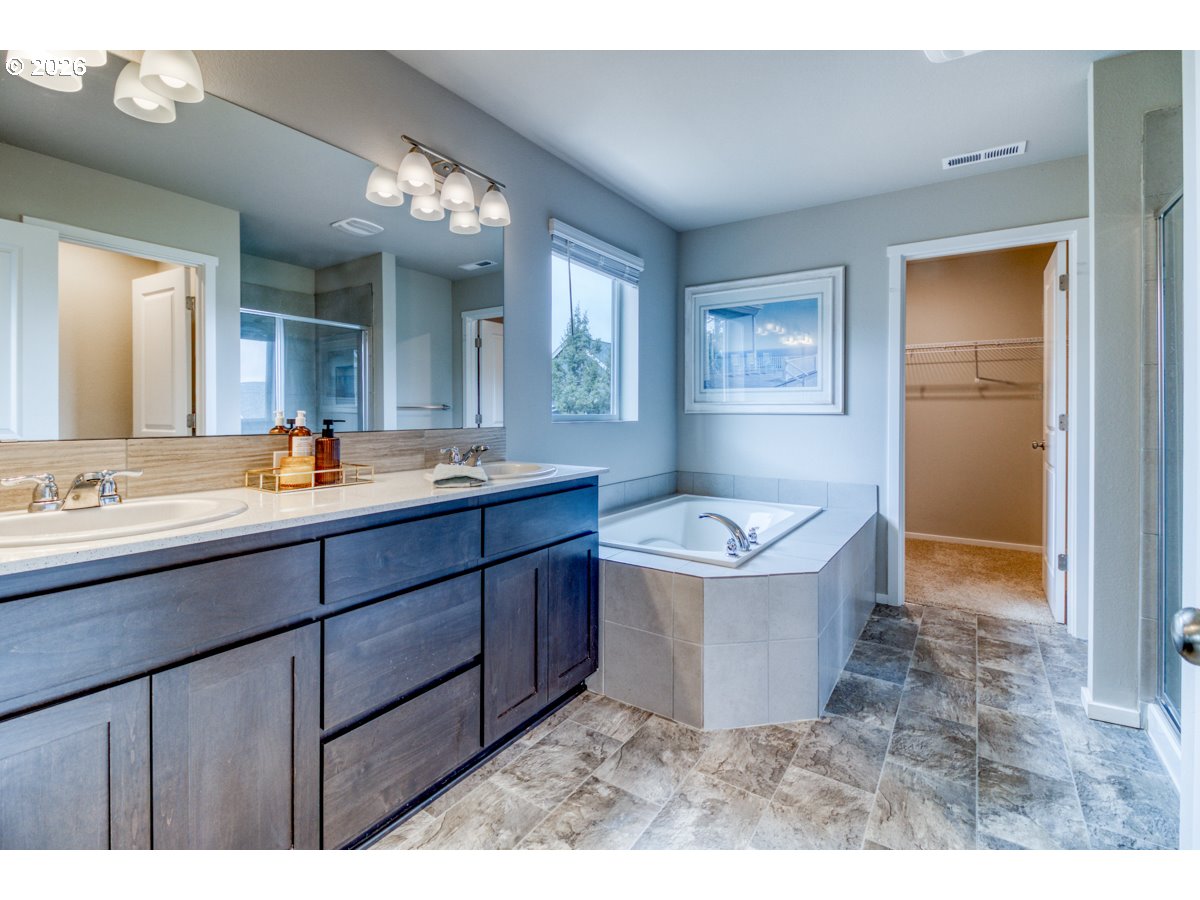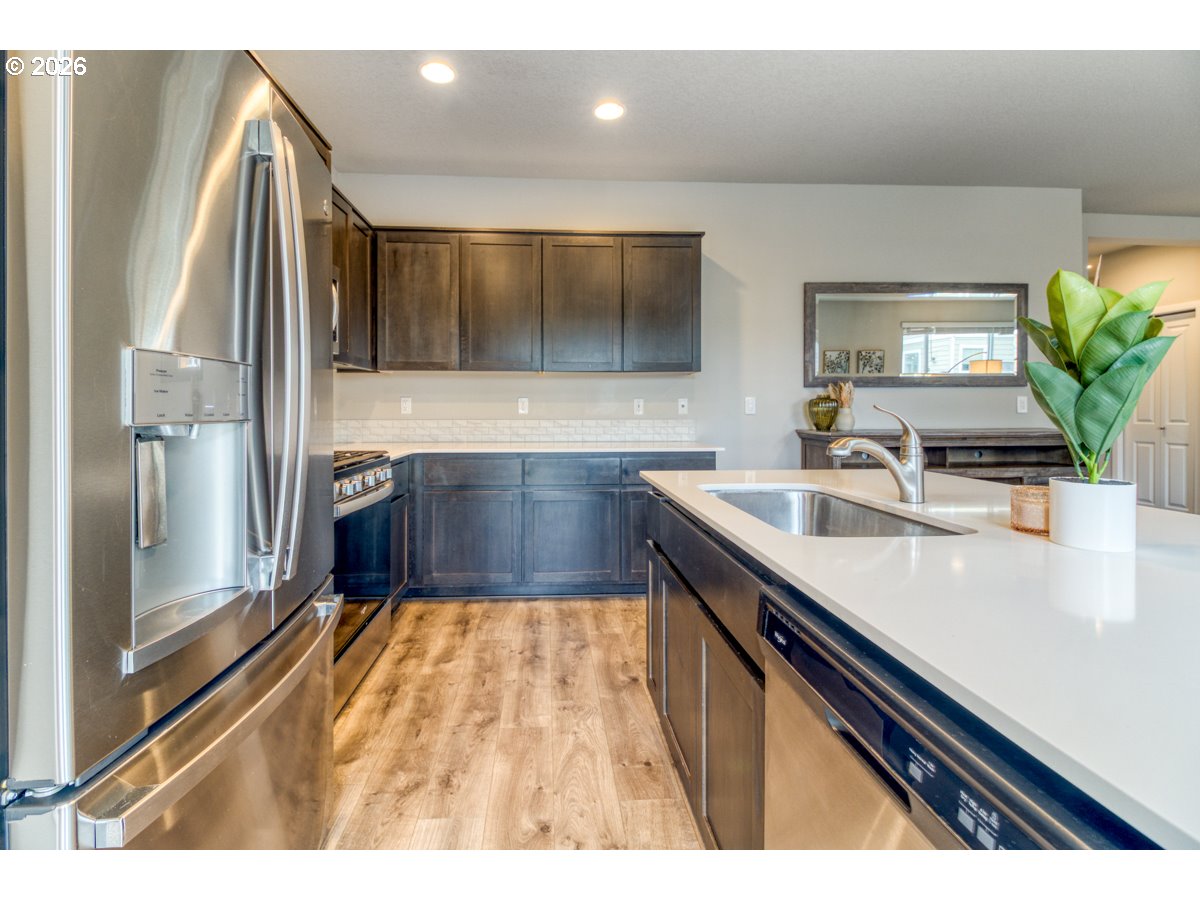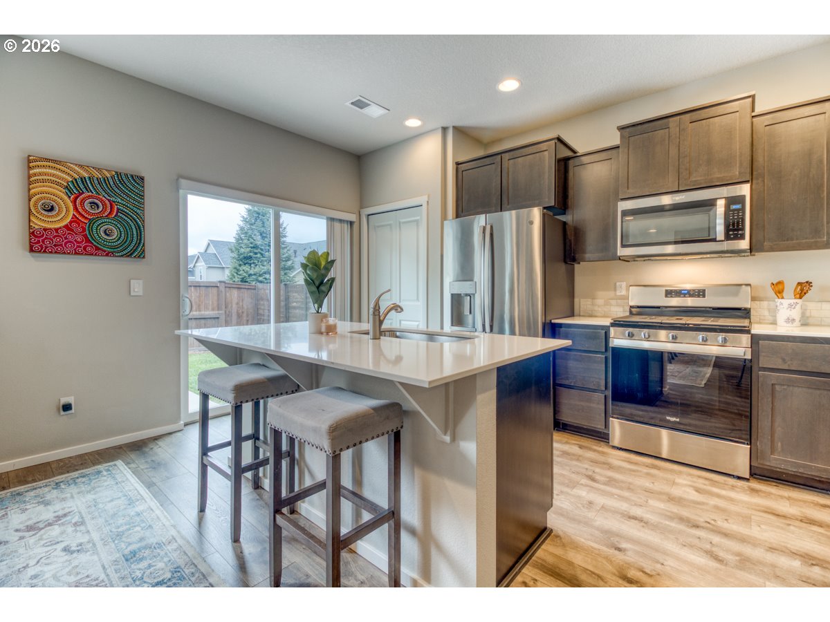 Better than new and thoughtfully designed for modern living, this pristine home offers the perfect blend of space, flexibility, and style, featuring 4 generously sized bedrooms plus a large versatile 5th bedroom that could easily function as a bonus room, guest room, or media space. The open-concept layout creates a seamless flow for everyday comfort. The west-facing primary suite offers a peaceful retreat with mountain views, creating the perfect setting to enjoy Central Oregon sunsets. Step outside to a private backyard that provides a quiet escape for relaxing or entertaining.Featuring Nest and GE devices that are Google Home compatible and an EV charger for added convenience and modern functionality. The kitchen is equipped with stainless steel appliances, and the refrigerator, washer, and dryer are all included—making this home truly move-in ready. Located in SE Bend within the Old Farm District, this home features a community pool and is just a short distance from Silver Rail Elementary School and Stone Creek Park. The Old Mill District and downtown Bend are less than a 10-minute drive away, offering the perfect blend of convenience and lifestyle in a highly sought-after area.