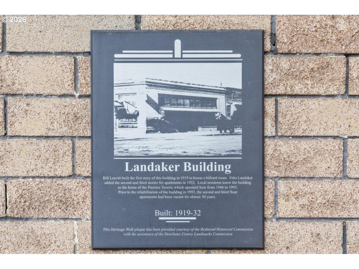 The Landaker Building, an iconic structure in Downtown Redmond, Oregon, was built in 1919 and spans approximately 7,500 square feet across three stories. Located at the prominent intersection of Evergreen Avenue and Sixth Street, it offers a prime investment opportunity with a stable income. Originally a pool hall, it was renovated in 1932, adding two additional floors for office and apartment spaces. Fully leased, the building includes two ground-floor retail units, two commercial units on the third floor, and 10 apartment units on the second and third floors. Its historic charm, strategic location, and potential for future development, including short-term rentals, make it a unique asset.