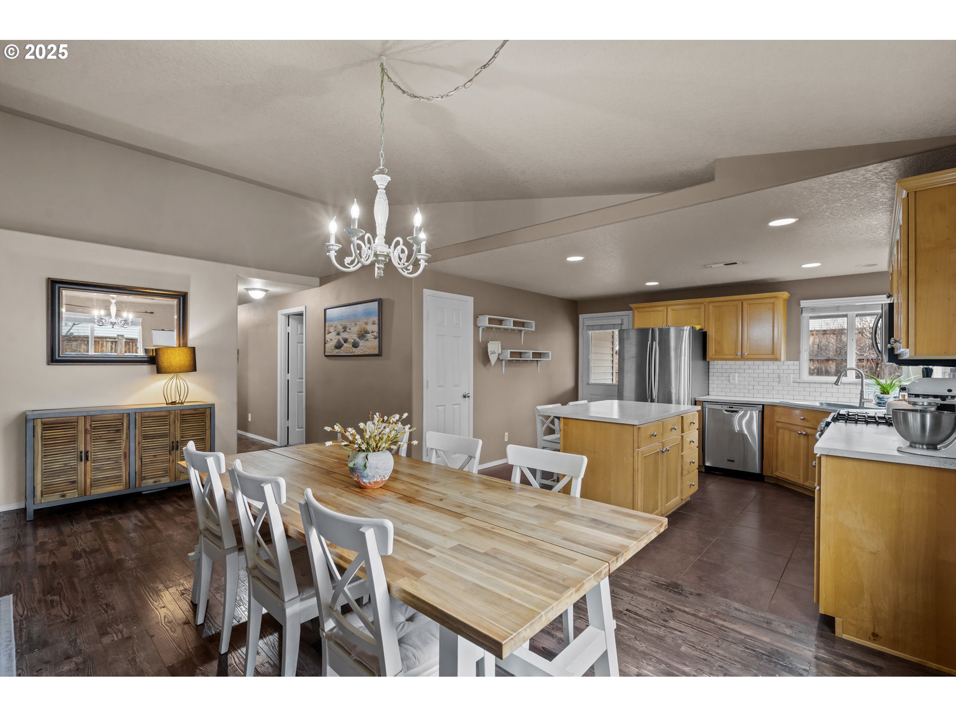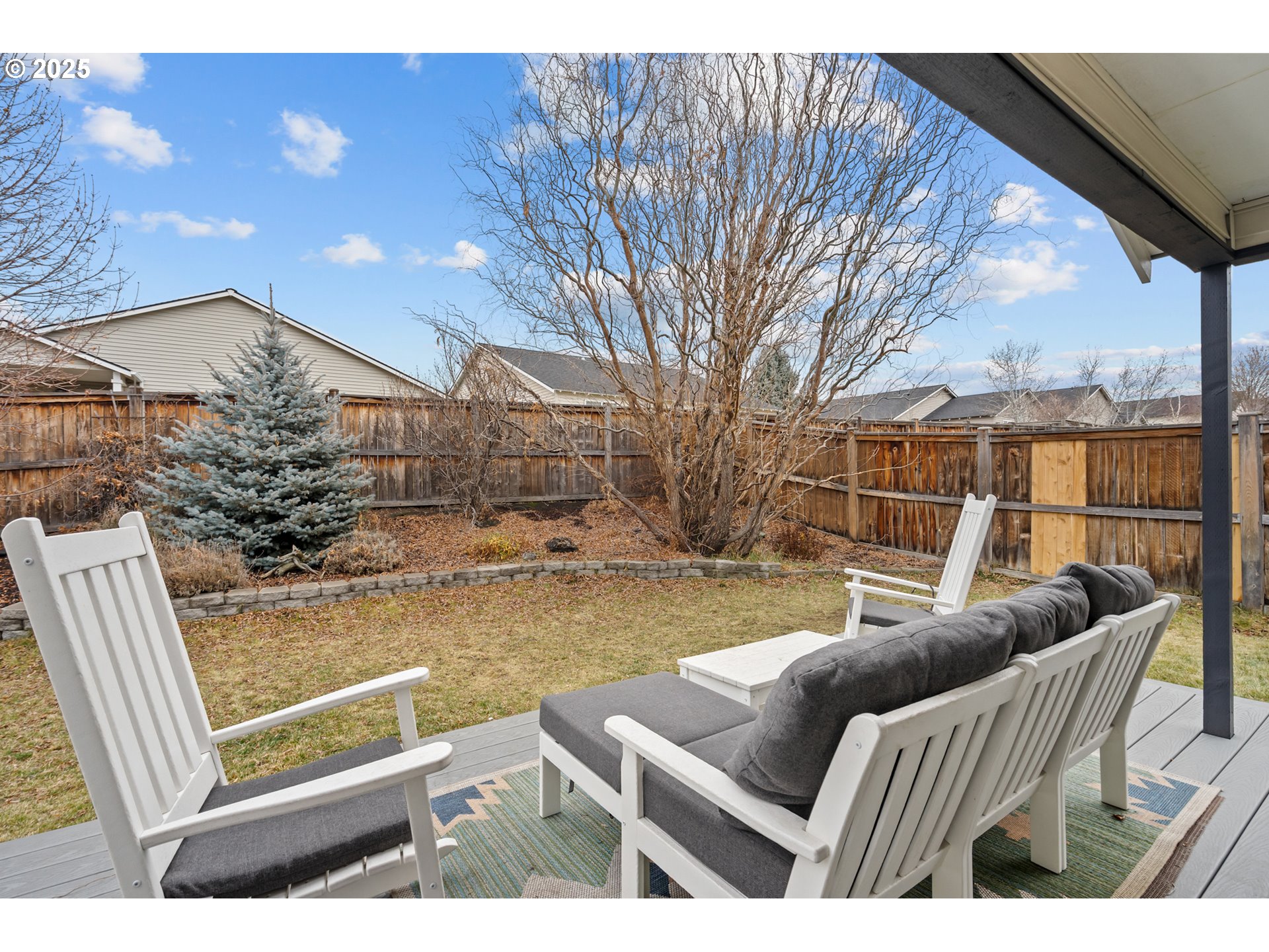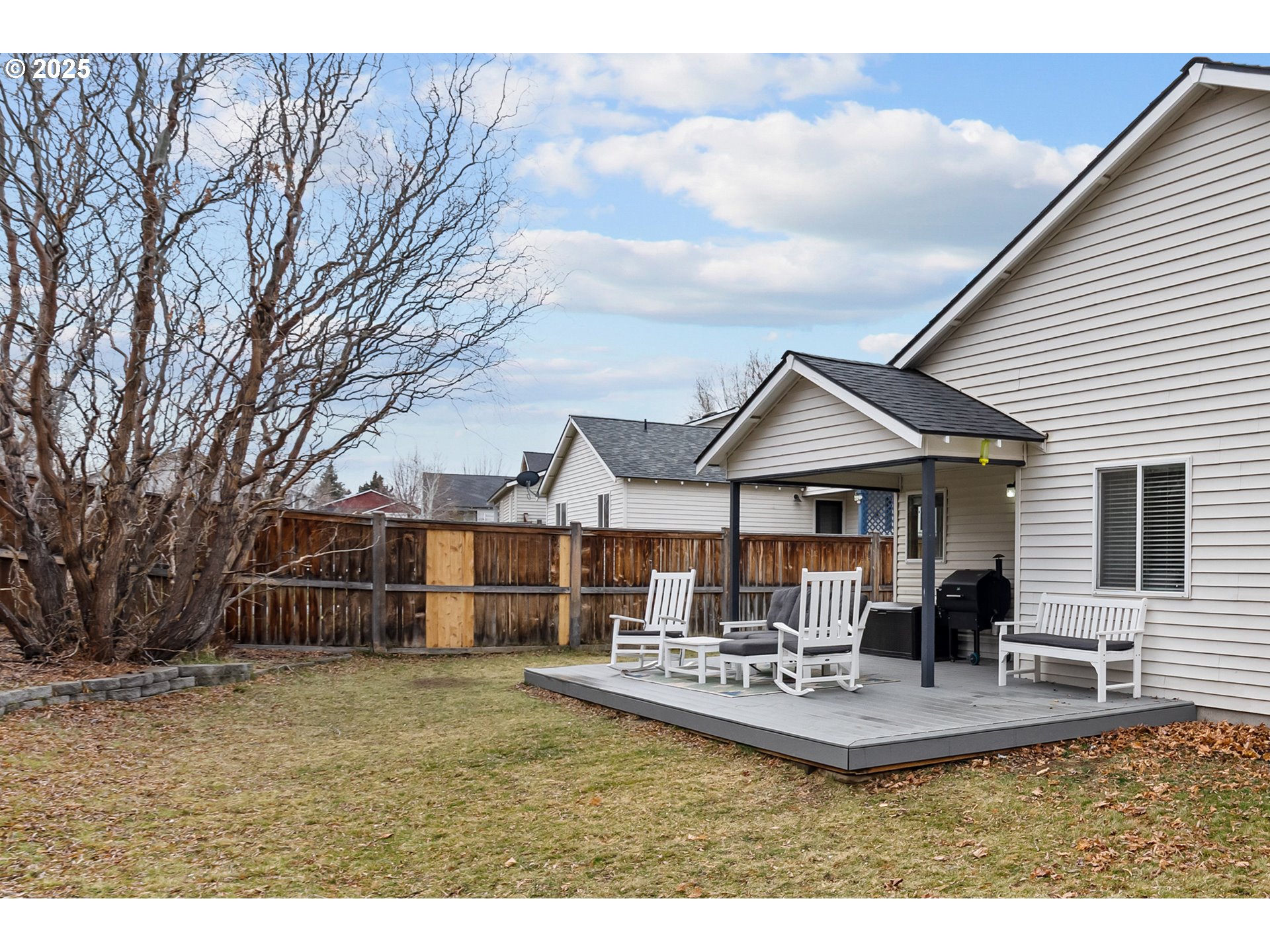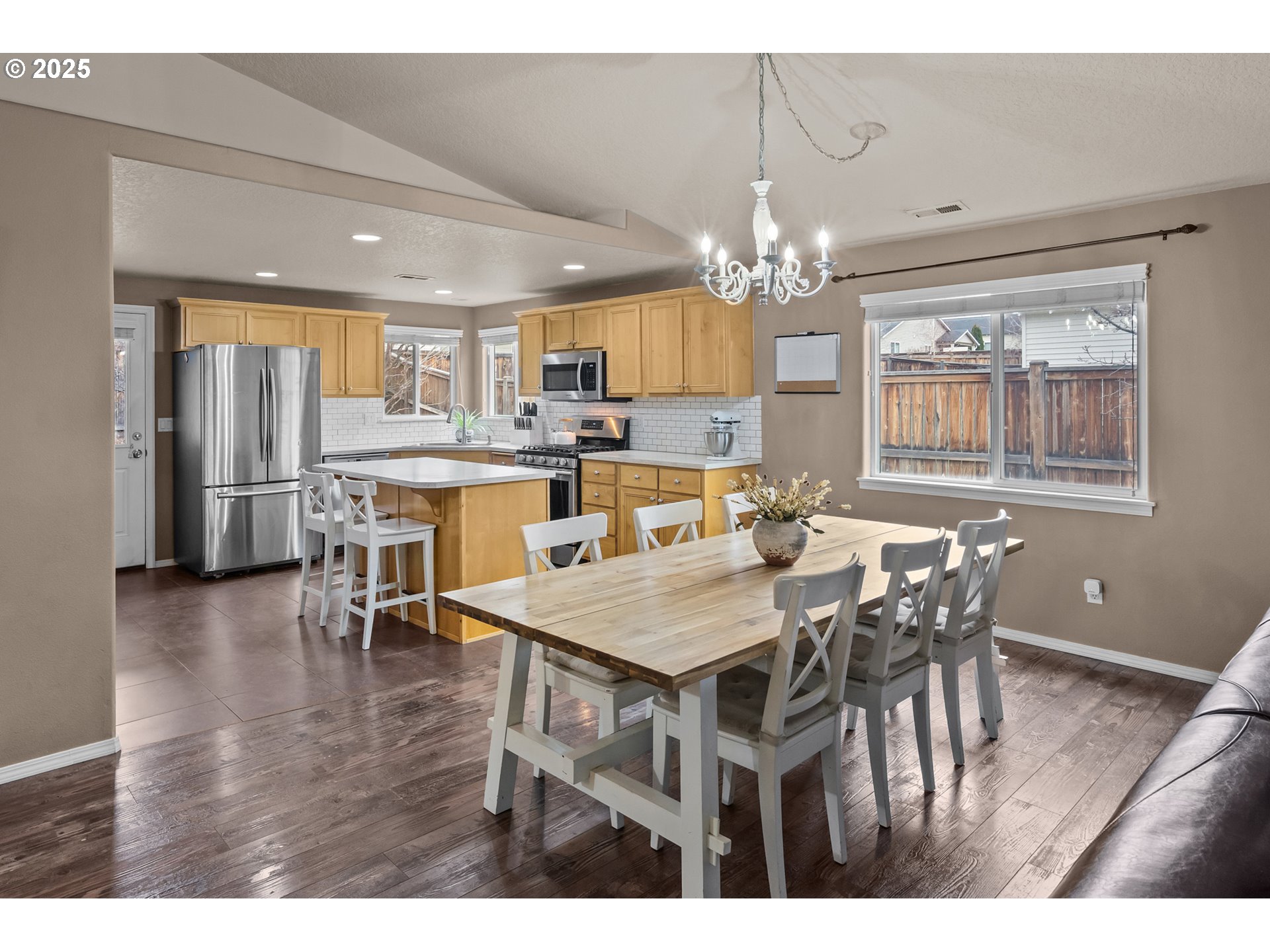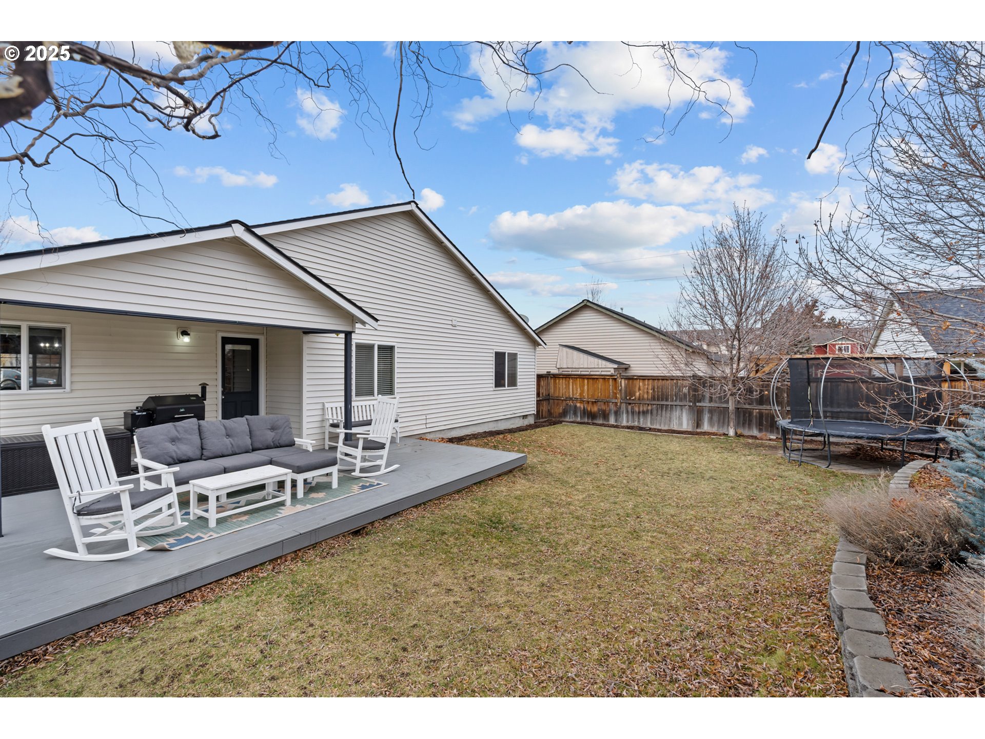 Single-level, open-concept living in an adorable NE Bend subdivision. This Craftsman-style home sits on a generous lot and welcomes you with vaulted ceilings and a cozy gas fireplace. The kitchen island and large adjacent dining area make entertaining effortless, while three bedrooms, two full baths, a mudroom with laundry off the garage, and ample linen storage keep daily life organized. The primary suite features a walk-in closet, and an easy walk-in shower. Step outside to a fully fenced, private backyard with Trex decking—ideal for relaxing or hosting friends. Enjoy a quick 0.1-mi stroll to Empire Crossing Park, your neighborhood coffee shop, and nearby market and pizza options just under half a mile away. With easy highway access, this home delivers comfort, walkability, and convenience in one inviting package.