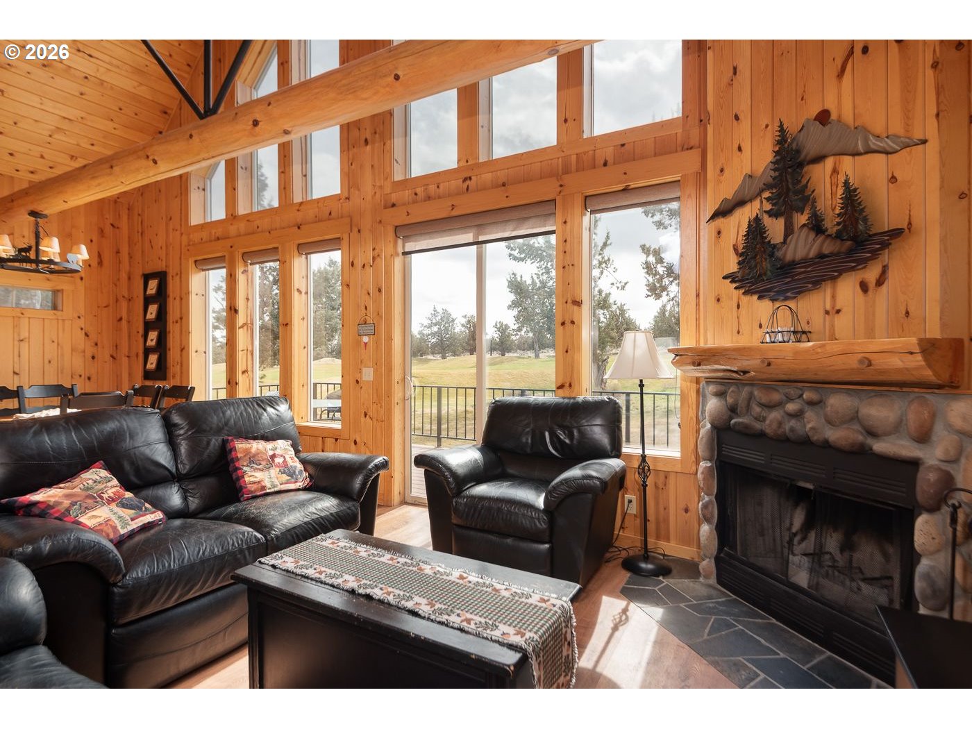 Golf-course chalet in Eagle Crest Resort offering 3 bedrooms and 2 bathrooms with a desirable setting right along the fairway. Enjoy peaceful views of the surrounding terrain, including the golf course, and frequent wildlife sightings, including deer, from this serene course-front location.The main level features newer luxury vinyl plank flooring and a cozy wood-burning fireplace, creating a warm and inviting living space. Solar shades enhance comfort and energy efficiency, and a newer roof provides added peace of mind.Sold fully furnished, this home is truly move-in or rental ready -- ideal as a primary residence, vacation getaway, or investment opportunity.Enjoy golf-course frontage and easy access to Eagle Crest's exceptional amenities, including three golf courses, swimming pools, fitness facilities, tennis courts, and miles of scenic trails.