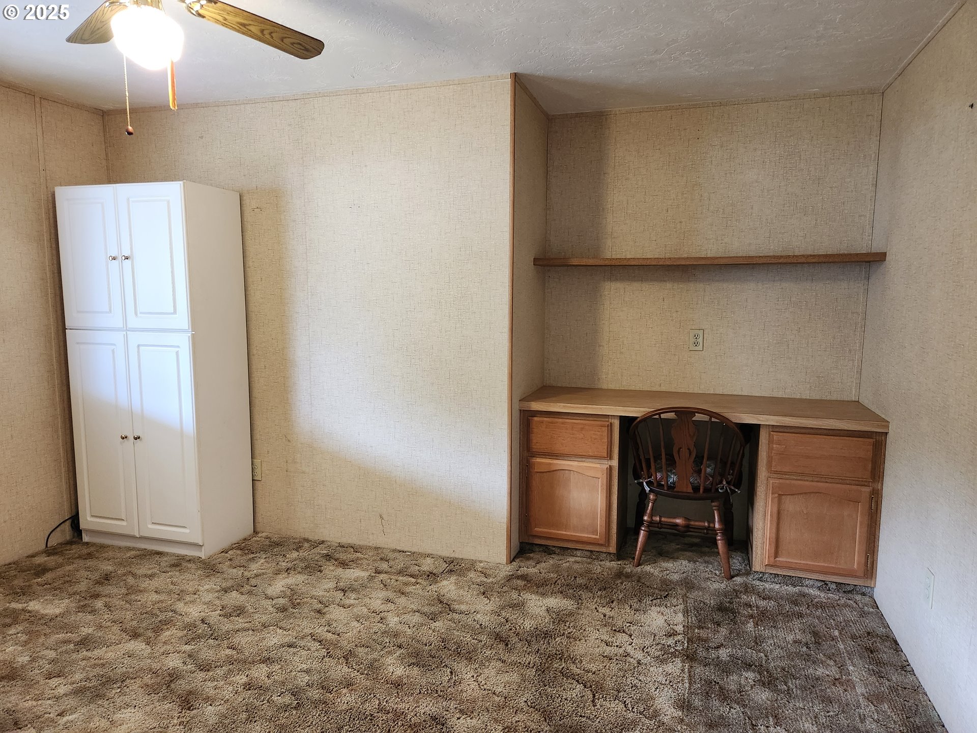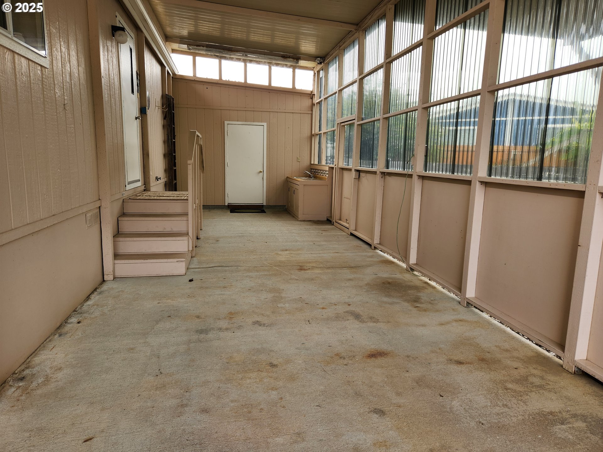 This is a rare gem in the park with more covered parking than any other for you buyers that have lots of toys and hobbies. Three large covered areas makes this one extra special. This 2 bedroom 2 bath home with large study has been well taken care of. Recent upgrades are new water heater and stove/hood, newer appliances in kitchen, freshly painted kitchen, dining and living room. Carpets cleaned thru out home. Outside was gone thru and cleaned up and painted where needed. Outbuilding has new panels, shelf and workbench for home projects. Park has lovely paths to walk and enjoy the wildlife around the river. Space rent is $630.00/mo and includes sewer and water. Must be park approved. (2 small pets allowed)
