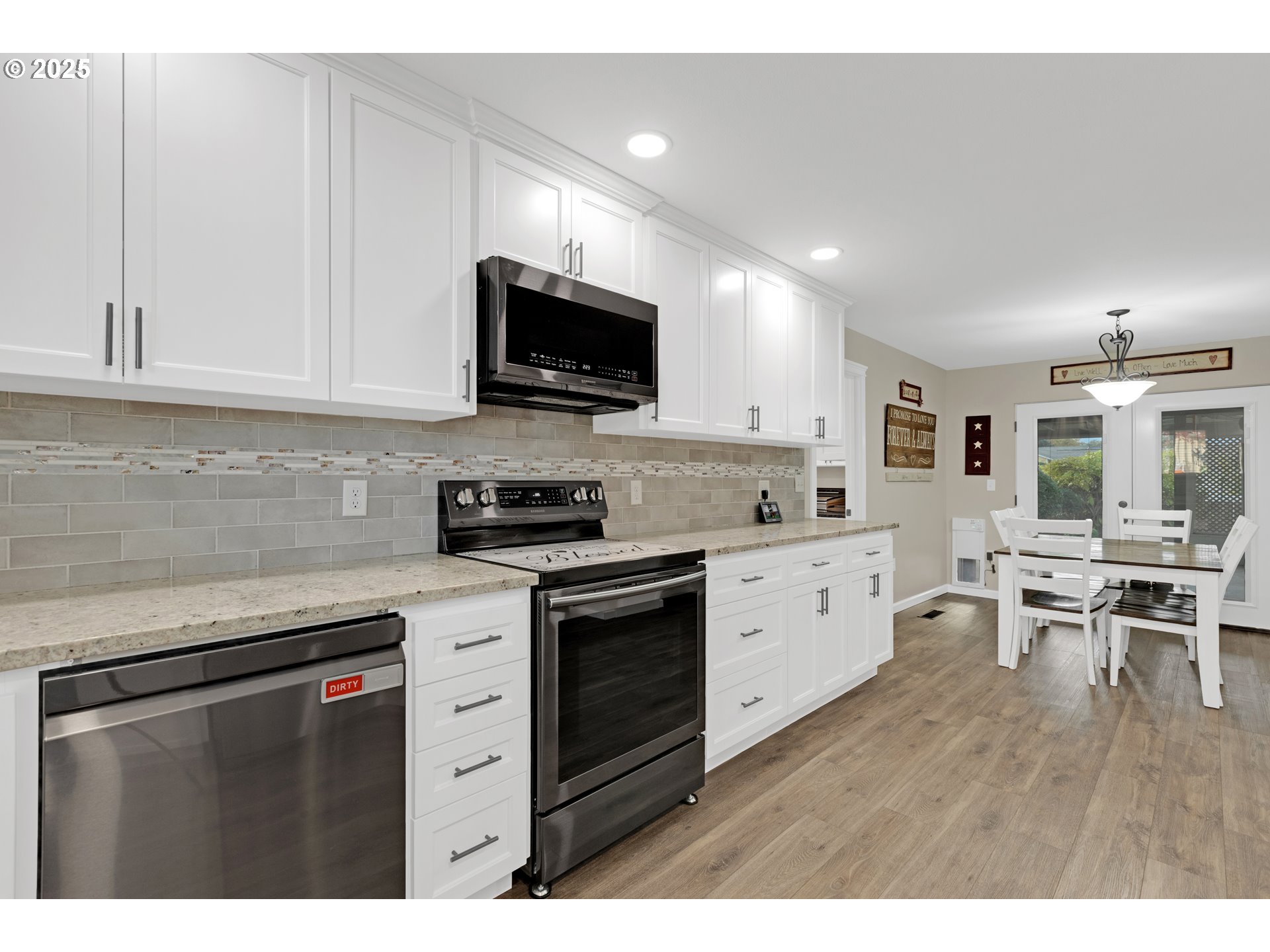 (503) 893-8874Grab this beautiful home while you can! Awesome home in a great neighborhood, 3beds 2 baths, 1508 SF, new LVP flooring, beautiful new updated kitchen with all the appliances, newly added huge laundry room w/granite counters, sink, and an abundance of storage. The primary suite has an entire wall of closet, ensuite with walk in shower, and double sinks. Set out the dining room french doors to a covered patio, fully fenced yard, garden shed, locked storage shed, workshop, RV carport and power hookup, all including the garage. So much space and room for all the things you want. The yards were redone and reseeded and ready to bloom into a lawn come spring. Nothing is left out here! Come by now.