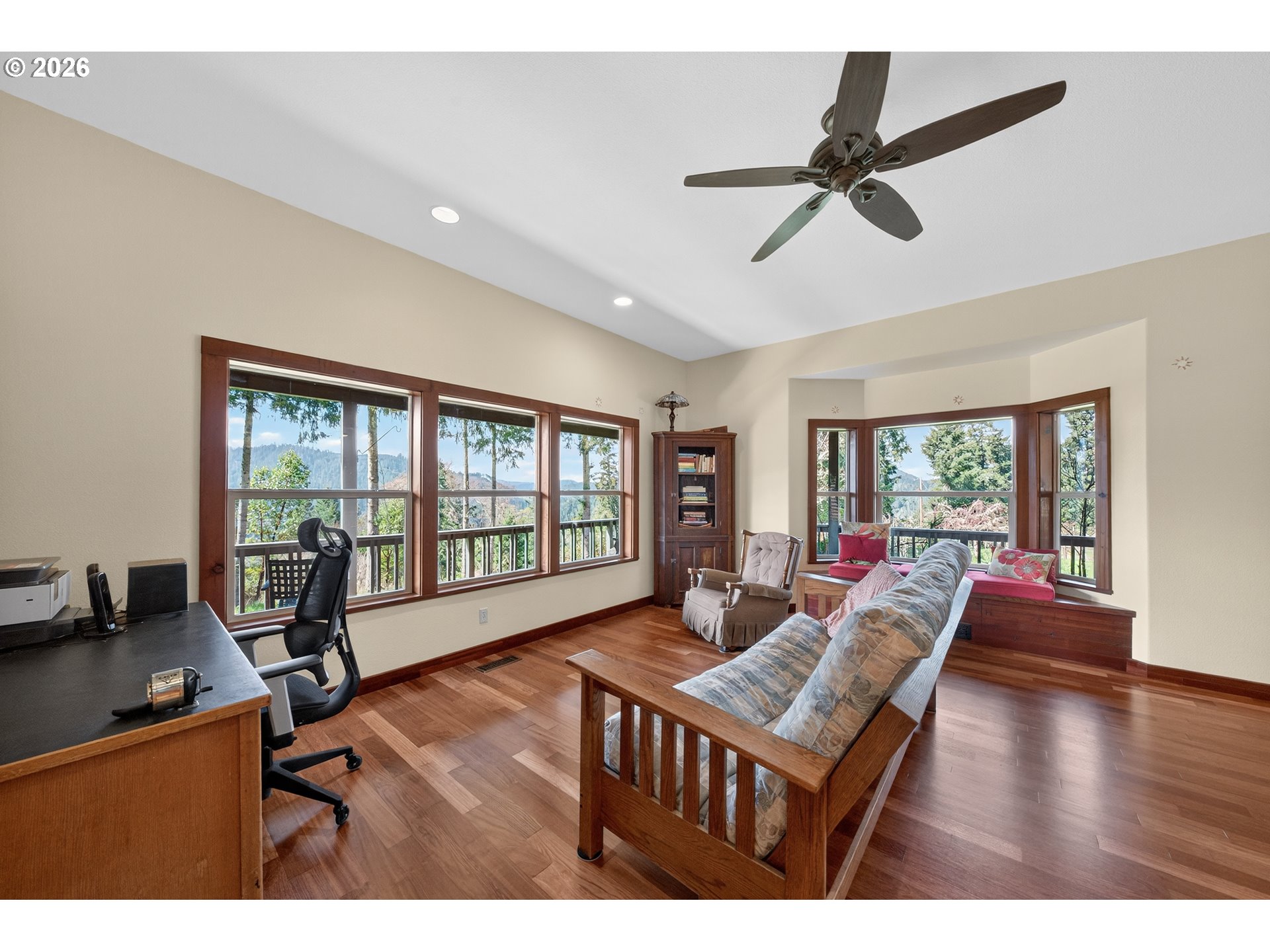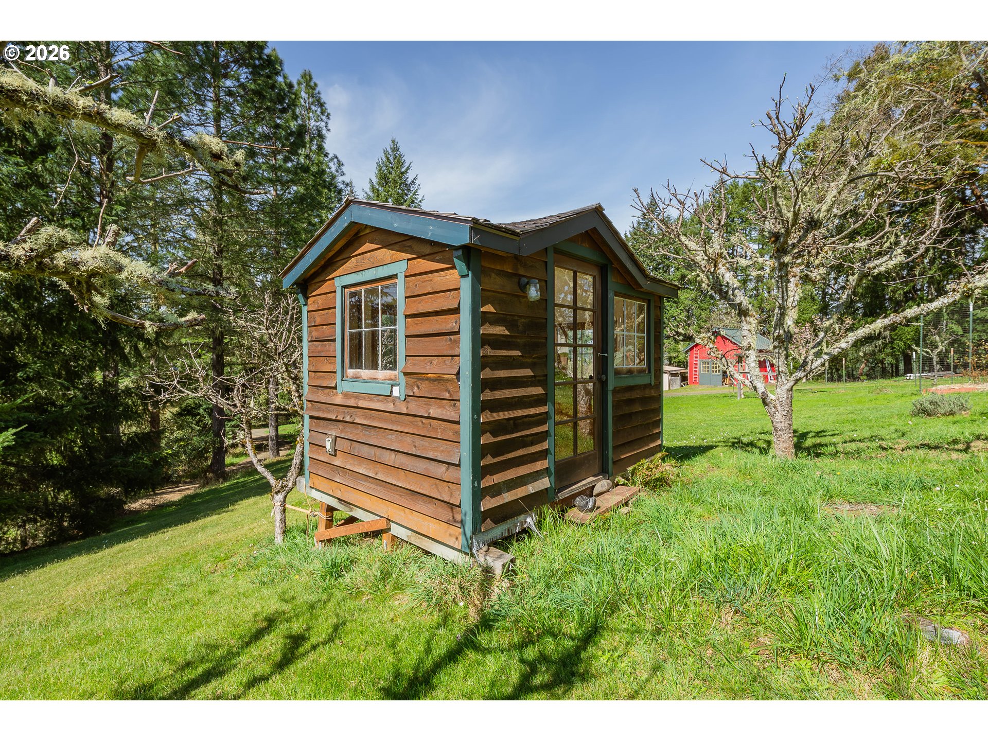 Custom farmhouse style meets elevated rural living in this truly one-of-a-kind property. Wrapped in cedar siding and surrounded by an expansive 1,300 sq ft wraparound deck with tongue-and-groove ceiling, this home is designed to be experienced. Enjoy a built-in hot tub and outdoor shower—perfect for unwinding in total privacy.Inside, you’ll find Brazilian cherry wood floors, tile accents, and soaring 10’ ceilings. Natural light fills the home, with mountain and forest views from every window. The kitchen features granite counters, an island, and space to gather, blending beauty and function.Upstairs offers four large bedrooms plus a versatile bonus area ideal for a family room, library, or media space. A main-level bedroom adds flexibility for guests or multi-generational living.Outside, the property is set up for a true rural lifestyle with multiple fenced garden areas, quality storage buildings, and a concrete-floor shop with 220 power. A small pasture provides room for a horse or a few animals.Peaceful, private, and surrounded by nature, yet just a short drive to town and near Umpqua River recreation, this is a rare opportunity for those seeking space, quality, and a lifestyle that feels worlds away.