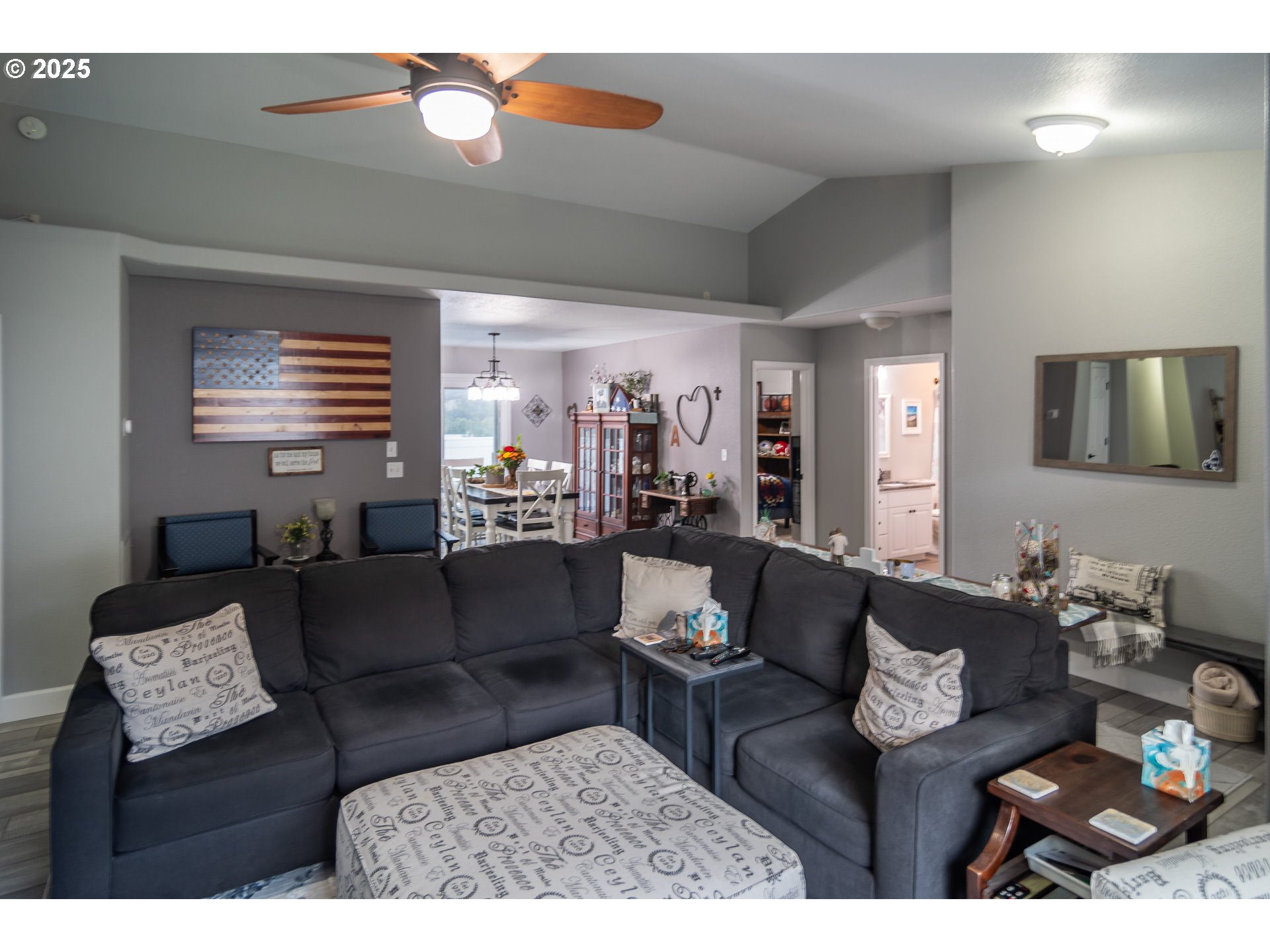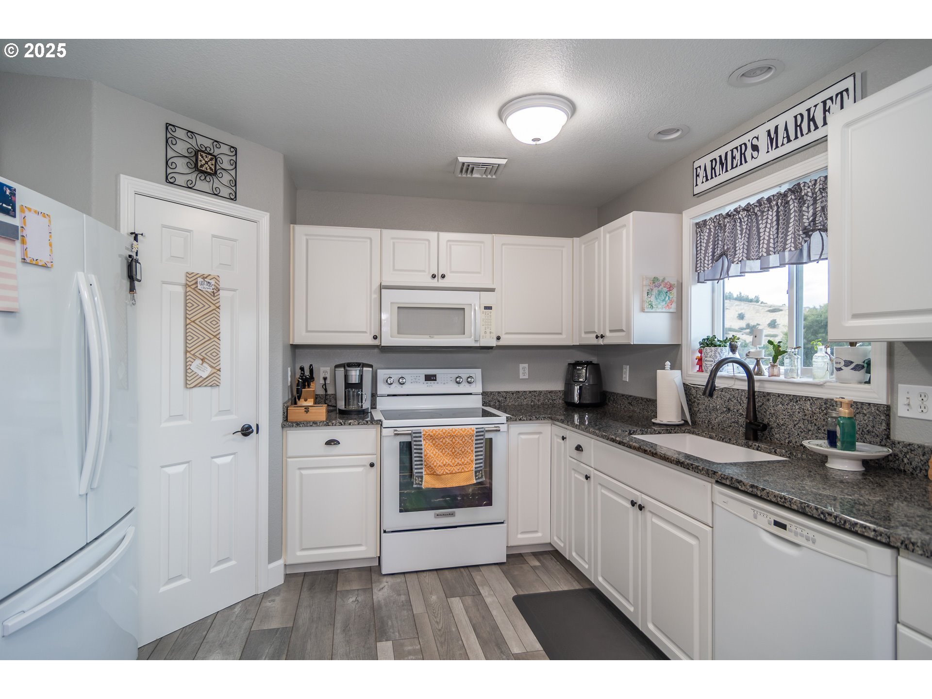 Prepare to be impressed by this beautifully updated home with nice views, nestled in a quiet neighborhood. This meticulously maintained property showcases pride of ownership in every detail, featuring tasteful decor and careful attention throughout. The home boasts high-end, water-resistant, and scratch-resistant luxury vinyl flooring throughout its interior. The kitchen is equipped with a pantry for extra storage, nice white cabinetry, elegant granite countertops and seller will be installing new micro-hood. In the spacious living room, you'll find vaulted ceilings that create an open and airy atmosphere. The home also features a split floor plan for added privacy. The lovely primary suite includes a large walk-in closet & vaulted ceilings, and plenty of space for your belongings. Both the front and backyard are beautifully landscaped, complete with sprinklers, a drip system, and accent lighting. From the fenced backyard, you can enjoy stunning views of the surrounding mountains. Don't miss your chance to tour this exceptional home; it is truly a must-see to fully appreciate all that it has to offer.