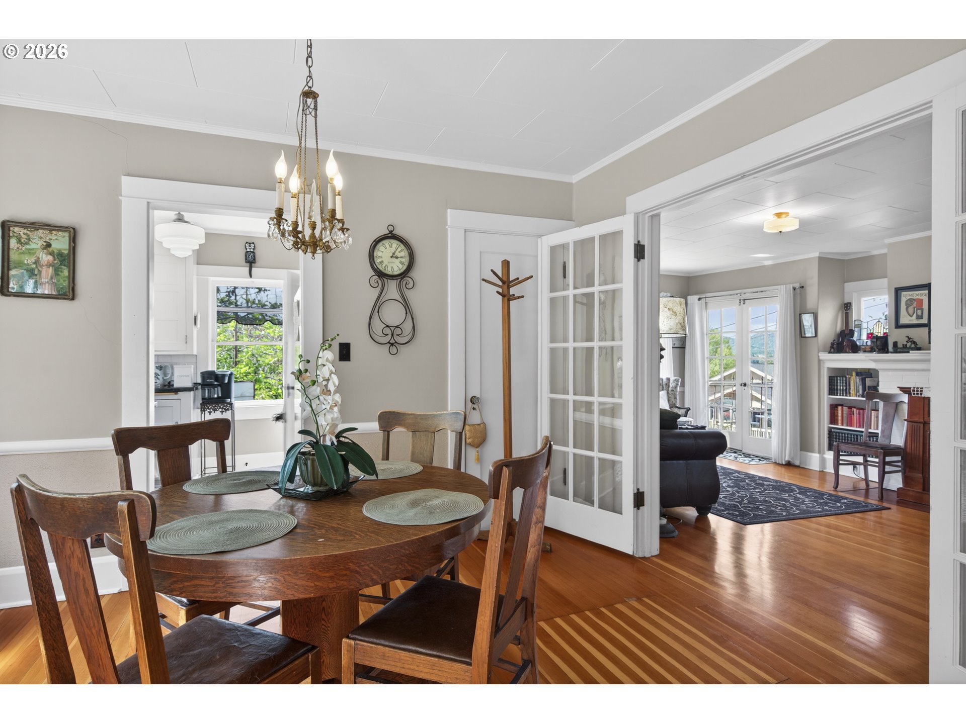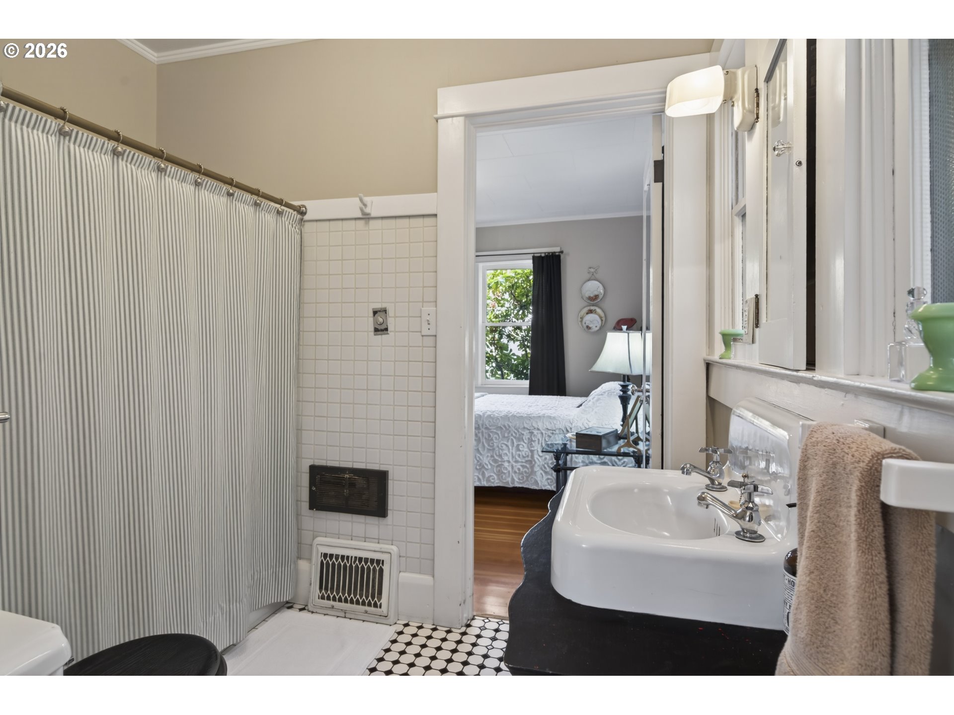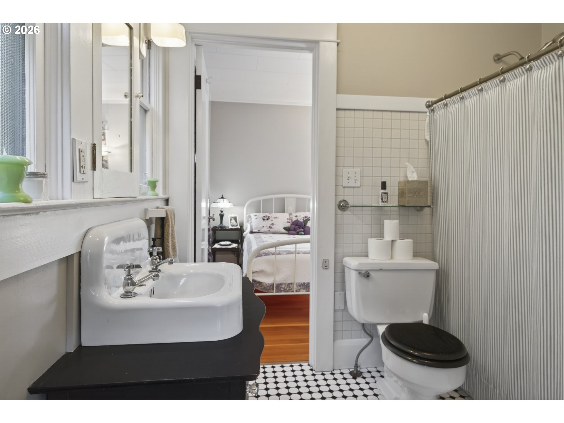 (503) 893-8874This charming English Tudor home is ideally located in downtown Roseburg. The residence features hardwood floors, a fireplace, and elegant French doors that enhance its classic character. The kitchen maintains its period style while offering thoughtful modern updates, including granite countertops, a dishwasher, and tile flooring. A Jack-and-Jill bathroom connects the two bedrooms, providing both convenience and functionality. The unfinished attic presents an excellent opportunity for expansion, with potential to add an additional bedroom and bathroom. The home also includes a full unfinished basement with laundry facilities and ample storage space.Parking and garage access are available from Lane Street. The property’s grounds evoke a cottage-style “secret garden,” offering numerous inviting and picturesque outdoor spaces. Currently, the home is operated as a vacation rental.