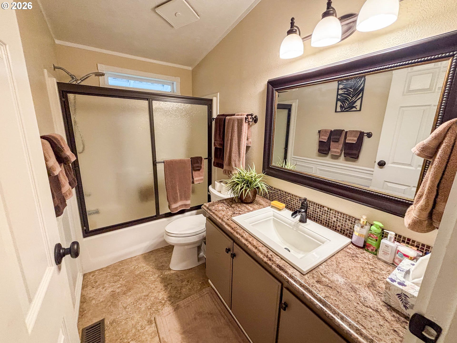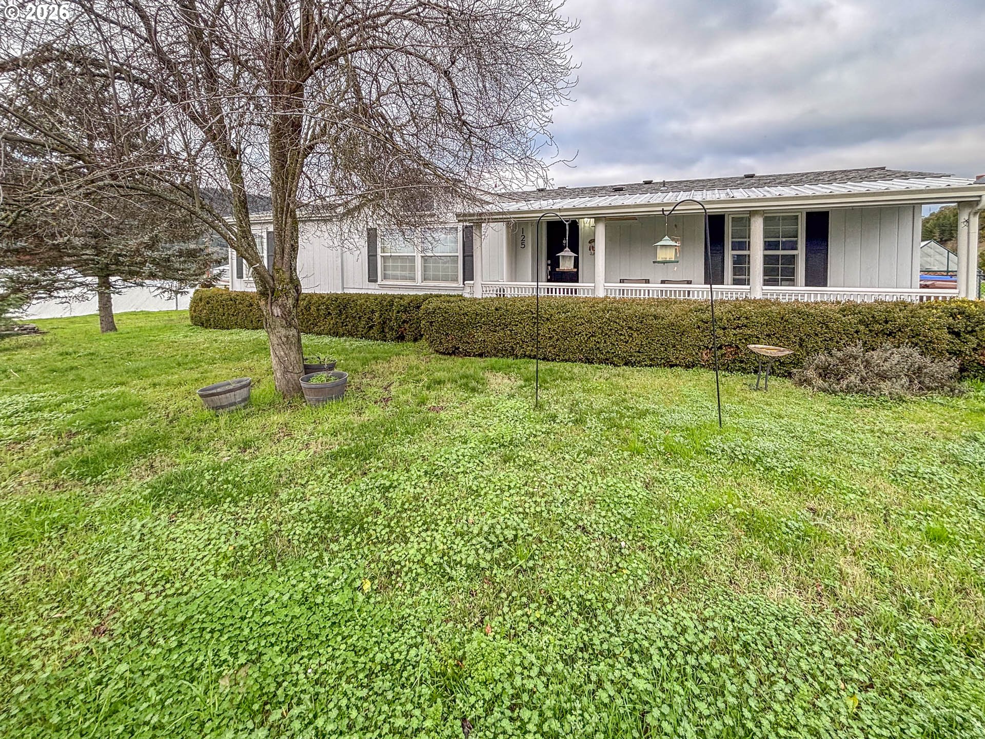 Charming Double Lot Home with Modern Comforts! Nestled on a spacious 0.27 acre double lot, this delightful 3-bedroom, 2-bathroom manufactured home, built in 1993, combines modern living with serene outdoor space. Step into a beautifully appointed living room featuring elegant wainscoting that adds a touch of sophistication to your everyday life. The open layout flows seamlessly into the hallway, creating a warm and welcoming atmosphere. With three bedrooms, there's ample space for family guests or even a home office. Enjoy your mornings or unwind in the evenings on the covered backyard deck. Outdoor hot tub is included. Room to grow. The expansive double lot provides endless possibilities for gardening, entertaining, or creating your own outdoor oasis. Don't miss the chance to own this charming manufactured home that perfectly blends comfort, style, and outdoor enjoyment. Washer, dryer, free-standing electric fireplace, and corner cabinet are included.