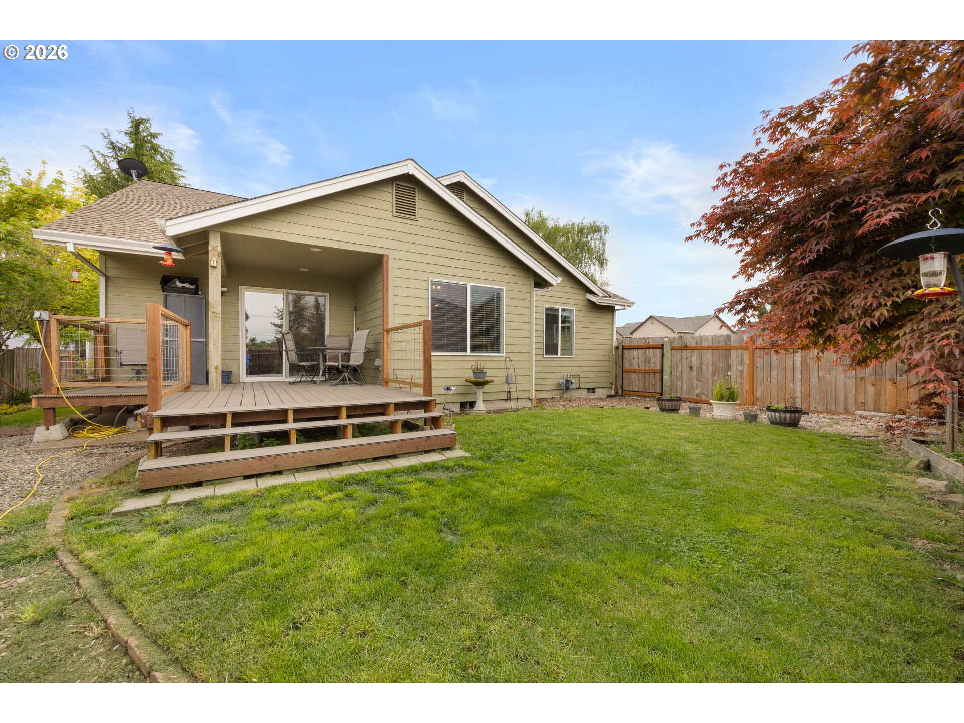 Immaculate single level home in highly desired Sutherlin neighborhood. Situated in a cute cul-de-sac with great curb appeal is this 3 bedroom, 2 bathroom home with an oversized garage and large gated RV parking. Inside offers combo living and family room spaces, formal dining space, well appointed kitchen with stainless appliances, gas range, and seamless flow into the vaulted living room with plant shelf. The generous master suite offers a walk-in closet, updated vanity, and walk-in shower. Guest bedrooms are very comfortable with an updated main bathroom with new flooring, paint, and walk-in shower. The laundry room and mud room offer great storage spaces with built in cabinets and room to take off dirty clothes before entering the home. Outside offers a private oasis with a large koi pond with small waterfall to relax and enjoy the sounds of nature. The new Trex deck offers a great outside entertaining space with a nice yard, mature landscape, and garden shed. Paved and gated RV parking with room for a large RV and full hookups. Recent upgrades include new interior paint throughout, new laminate floors, updated main bath, and new Trex deck in the back. Extremely well maintained and updated home, in a beautiful neighborhood within close proximity to Fords Pond Recreation area. Call today for a private tour.