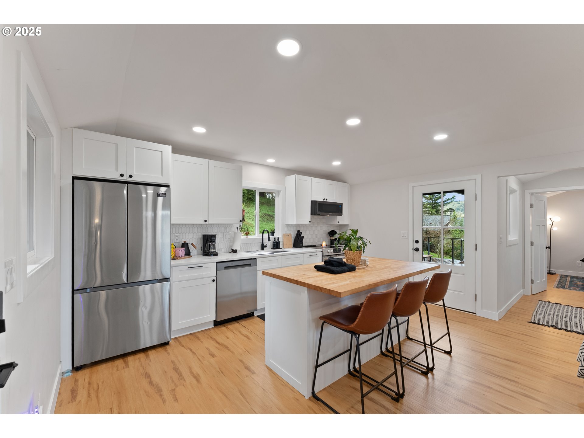 WOW! Experience modern living in this thoughtfully maintained and beautifully appointed 2-bedroom, 2-bath home with breathtaking city and valley views, located just minutes from town with easy access to restaurants, shopping, and the I-5 corridor. This home was rebuilt from the studs out and remains in exceptional condition. The exterior features a newer roof, windows, siding, exterior paint, gutters, fixtures, and a spacious deck ideal for enjoying the expansive views. A freshly graveled driveway and parking area enhance curb appeal and functionality. Inside, the open floor plan showcases LVP flooring, fresh interior paint, and stylish modern fixtures throughout. The kitchen serves as the heart of the home with quartz countertops, a butcher block island with bar seating, and stainless steel appliances, making it perfect for both everyday living and entertaining. A low-profile ductless mini-split system provides efficient heating and cooling year-round. The primary bedroom is positioned opposite the second bedroom for privacy and offers stunning views from every window along with an attractive en-suite bathroom featuring a walk-in shower. The downstairs area offers flexible potential for a third bedroom, workshop, hobby room, or additional storage. The home has been operated to a very high standard and consistently maintained, meaning it has benefited from regular professional cleaning and proactive upkeep. It is offered fully furnished, well appointed, turnkey, and truly move-in ready, allowing the next owner to step in without projects or delays. With updated insulation, sheetrock, electrical, and interior plumbing, this home feels nearly brand new and offers the perfect blend of modern updates, comfort, and ease. Schedule your private tour today.