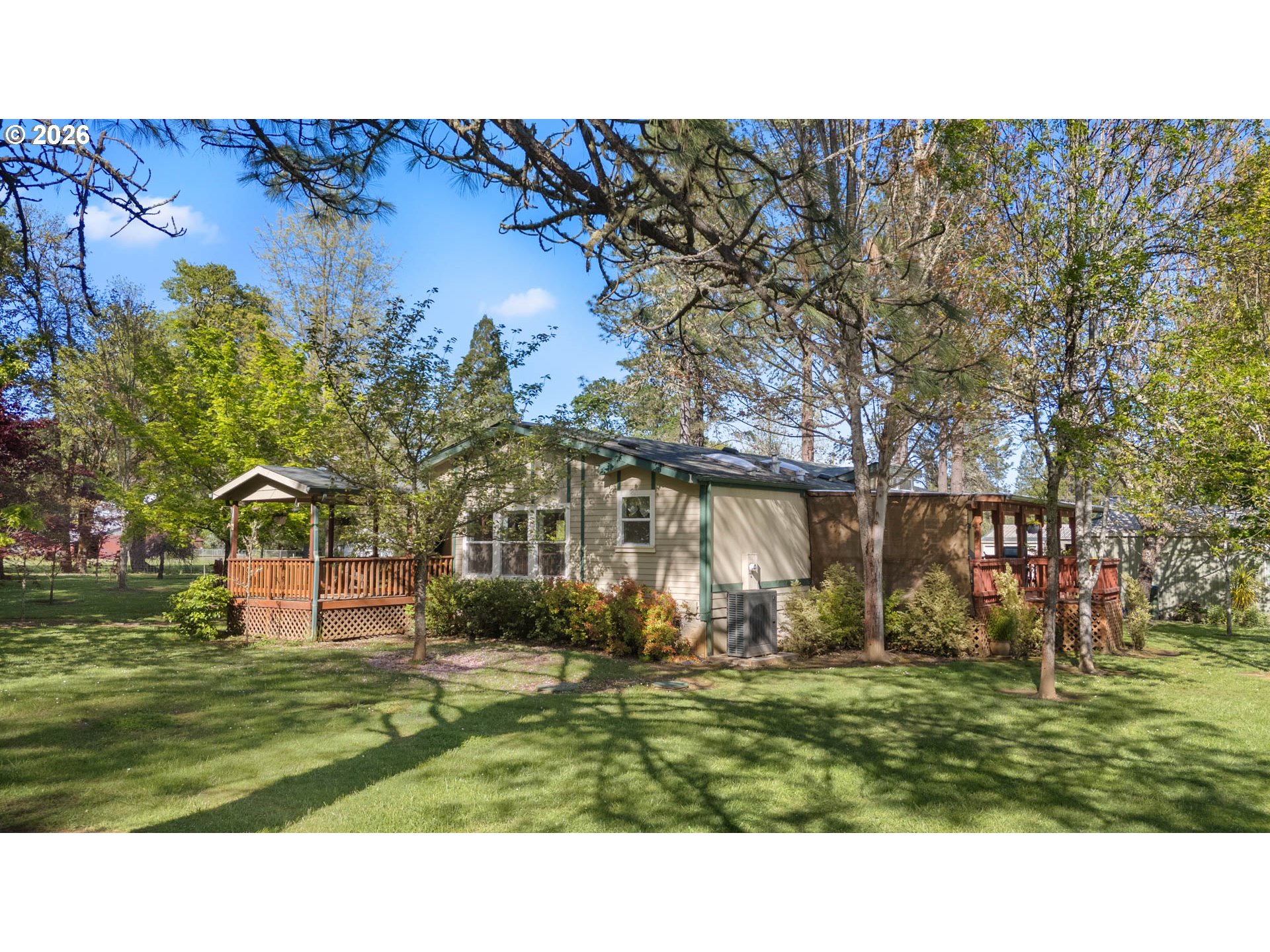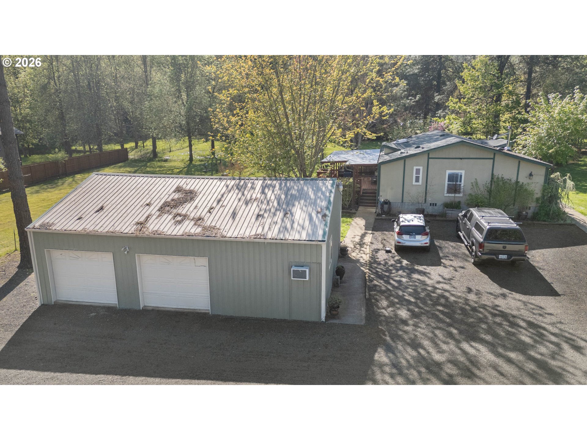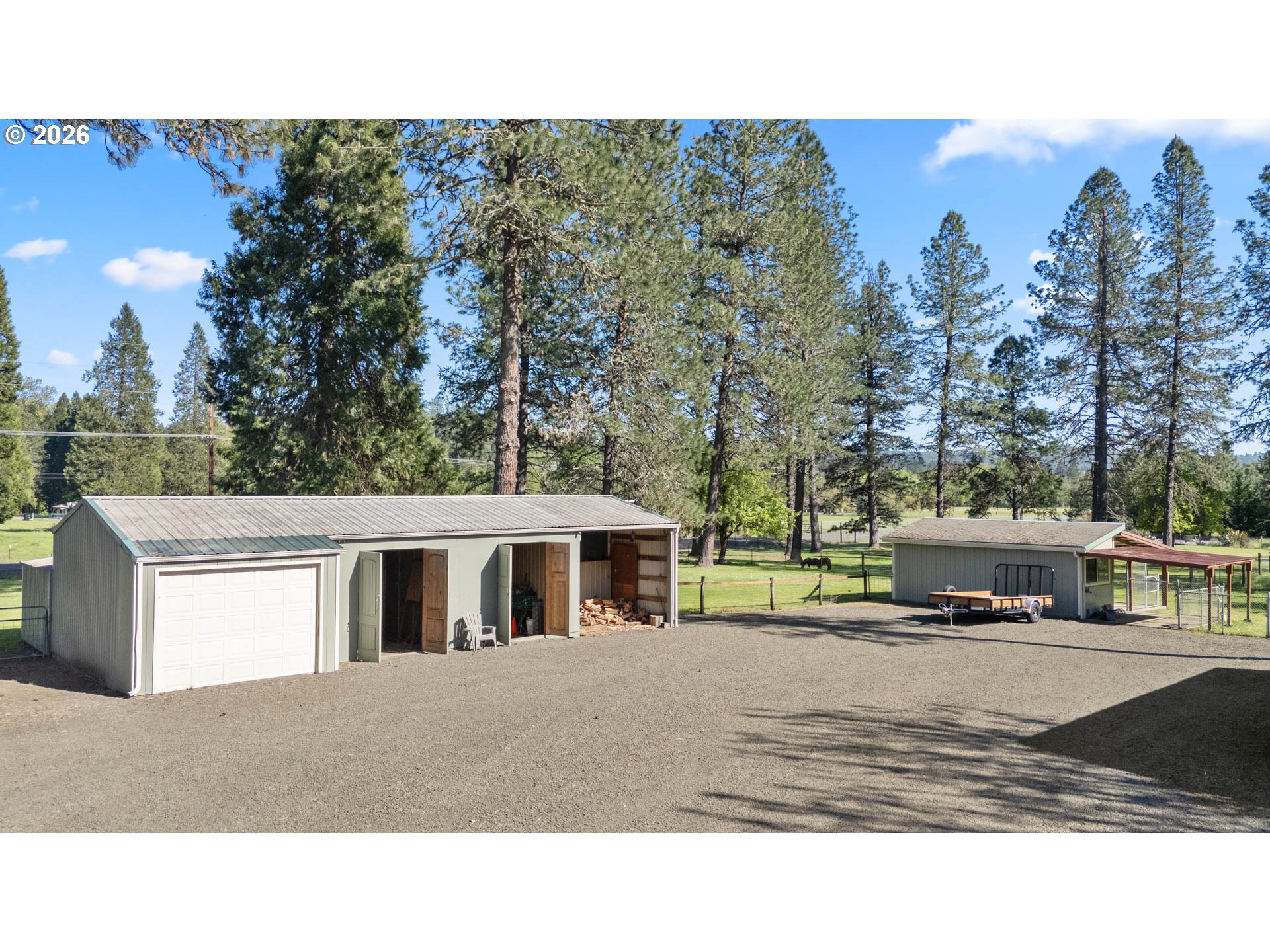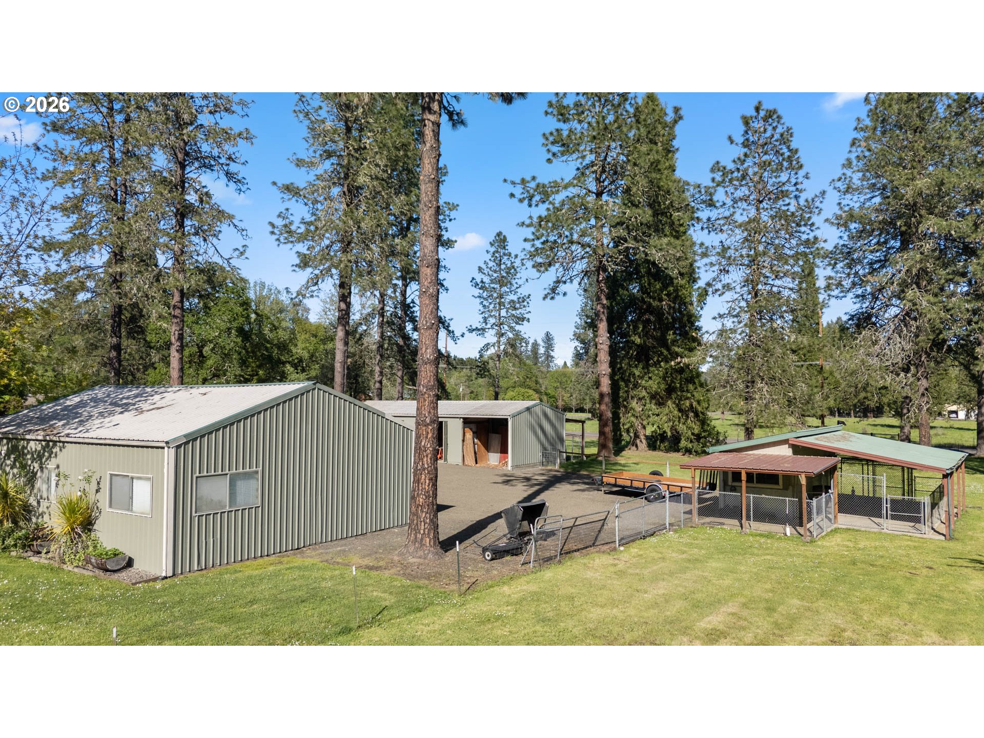 Beautiful park-like setting in the heart of Melrose. Level lot with remodeled 2004 "Palm Harbor" home. This top-of-the-line model includes vaulted ceilings, kitchen skylights, newer heat pump and wood stove, plus a covered front porch and covered rear deck off of the kitchen that's ready for outdoor relaxation or entertaining rain or shine. Detached finished shop and bonus space with air conditioned extra private room. Large machine shed, separate well-built dog kennels, deluxe chicken coop, fenced pasture, mature fruit trees (apple, cherry, pear, plum), garden area, and ample parking. A lovely and peaceful place to call home!