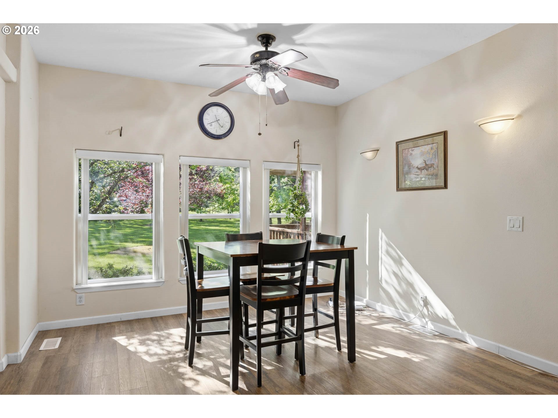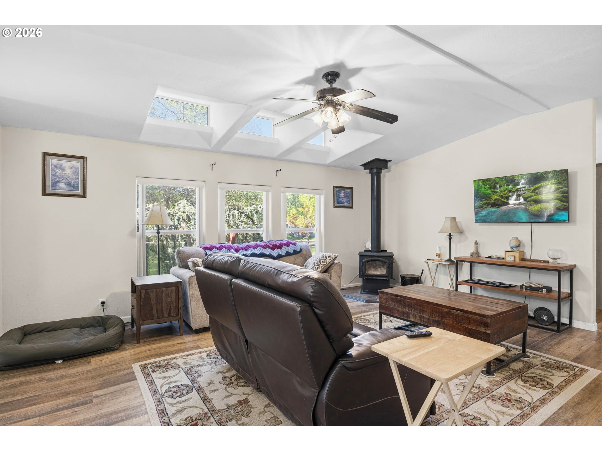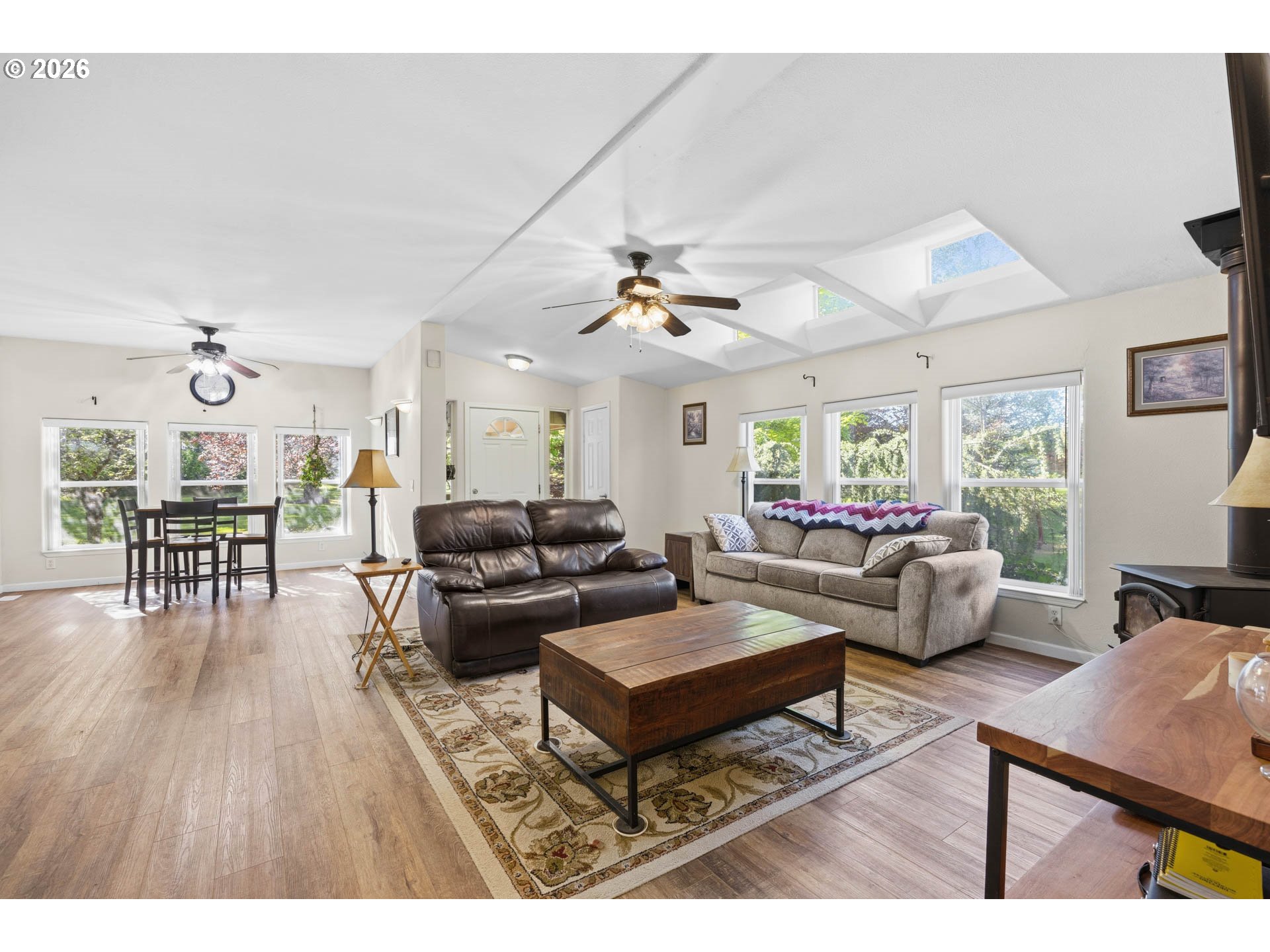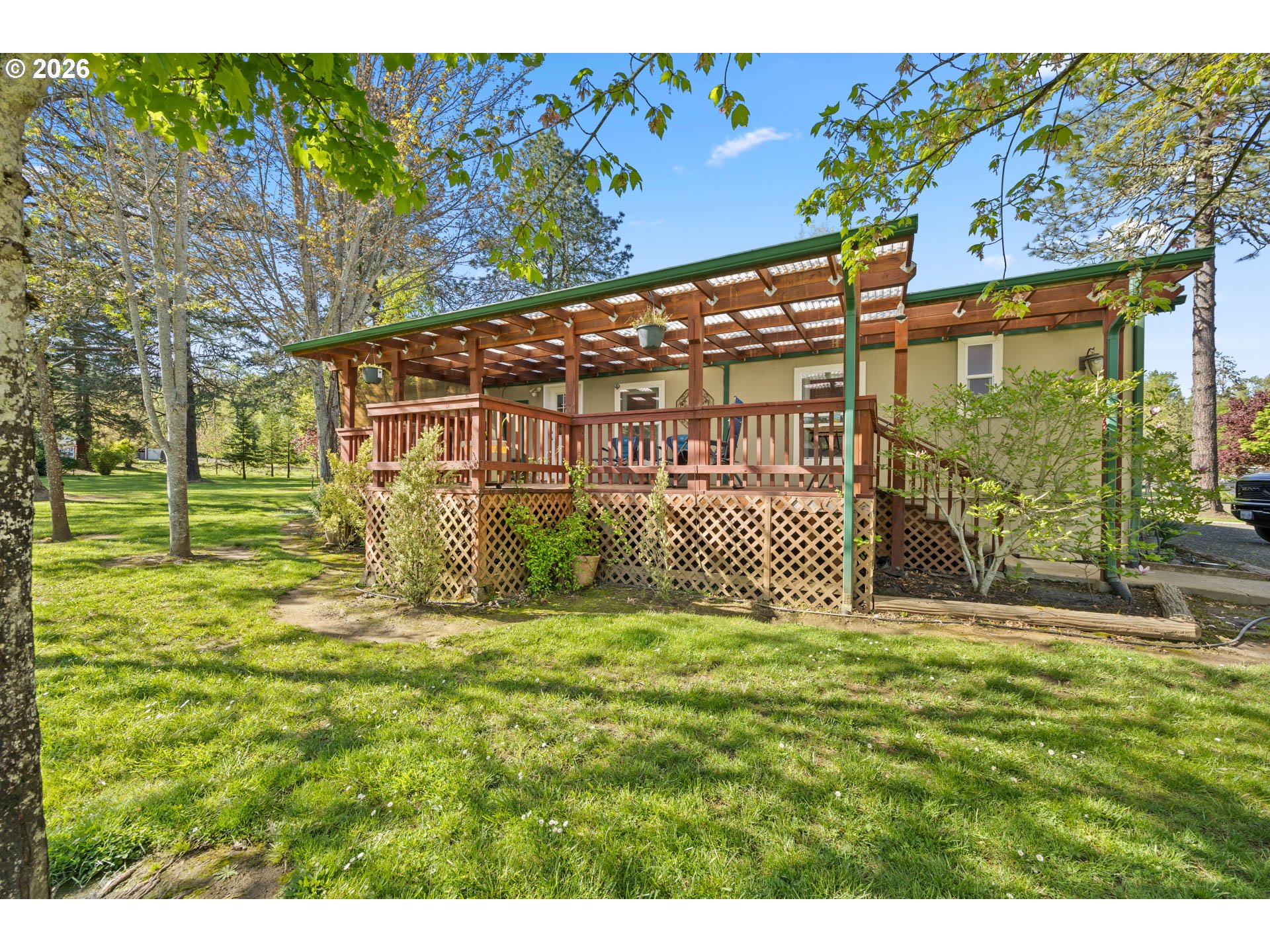 Beautiful park-like setting in the heart of Melrose. Level lot with remodeled 2004 "Palm Harbor" home. This top-of-the-line model includes vaulted ceilings, kitchen skylights, newer heat pump and wood stove, plus a covered front porch and covered rear deck off of the kitchen that's ready for outdoor relaxation or entertaining rain or shine. Detached finished shop and bonus space with air conditioned extra private room. Large machine shed, separate well-built dog kennels, deluxe chicken coop, fenced pasture, mature fruit trees (apple, cherry, pear, plum), garden area, and ample parking. A lovely and peaceful place to call home!