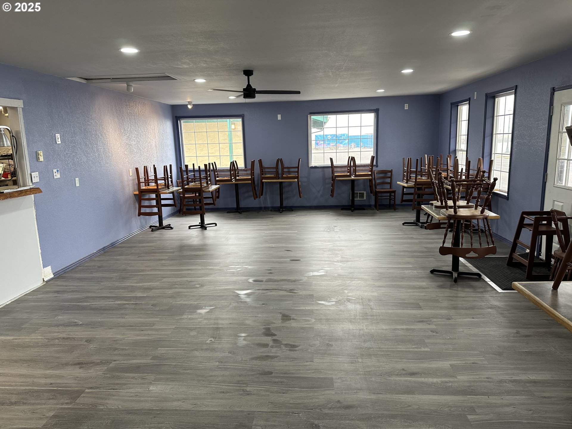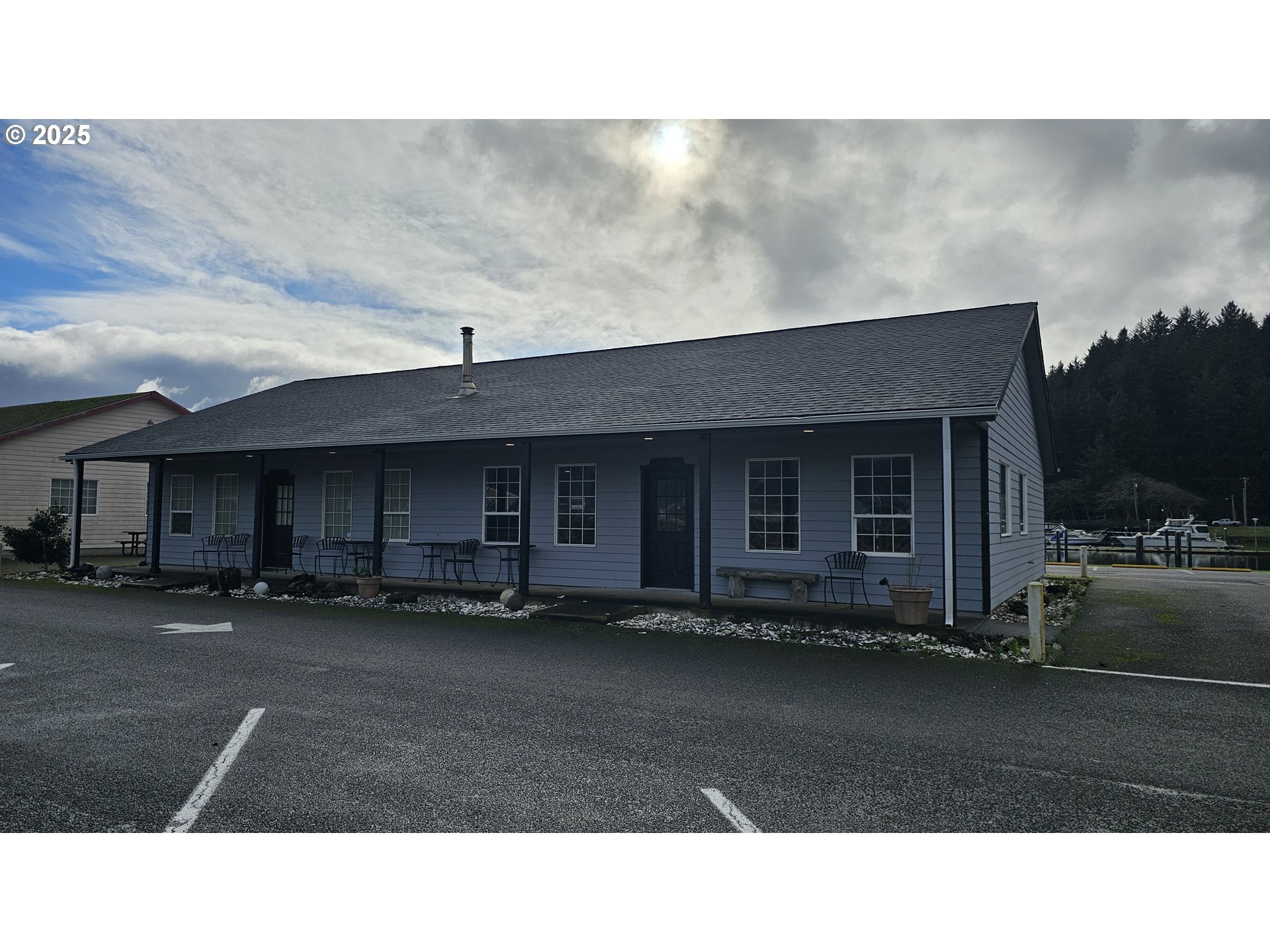 Oregon coast commercial building. Bayfront building with access to fresh seafood. Seasonal and local patron support. Freshly remodeled: New roof, interior/exterior paint, flooring, bathroom, kitchen, etc. Views of sunsets & storms from every window.