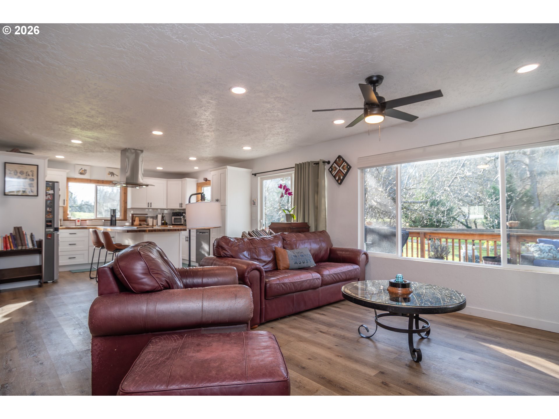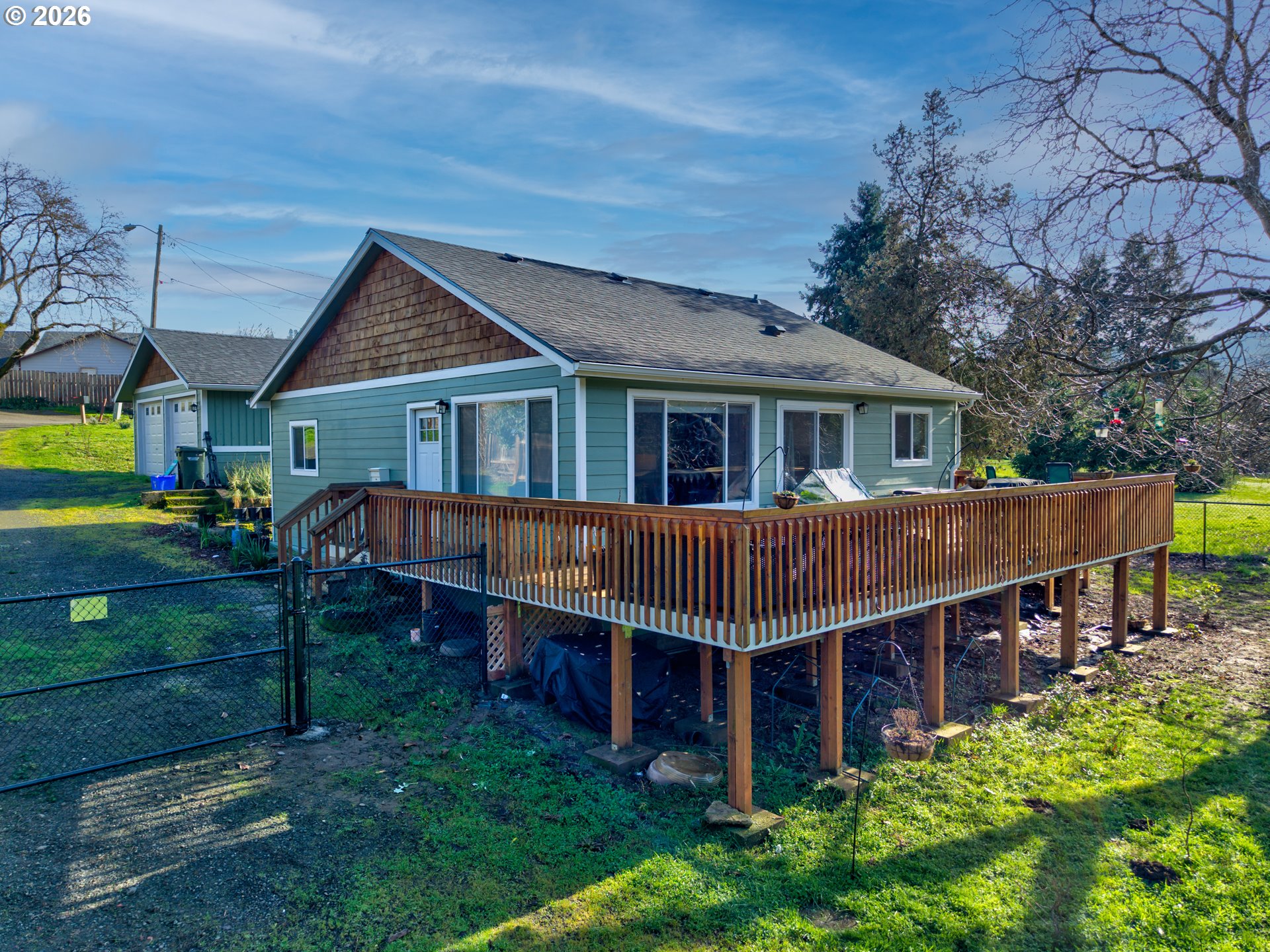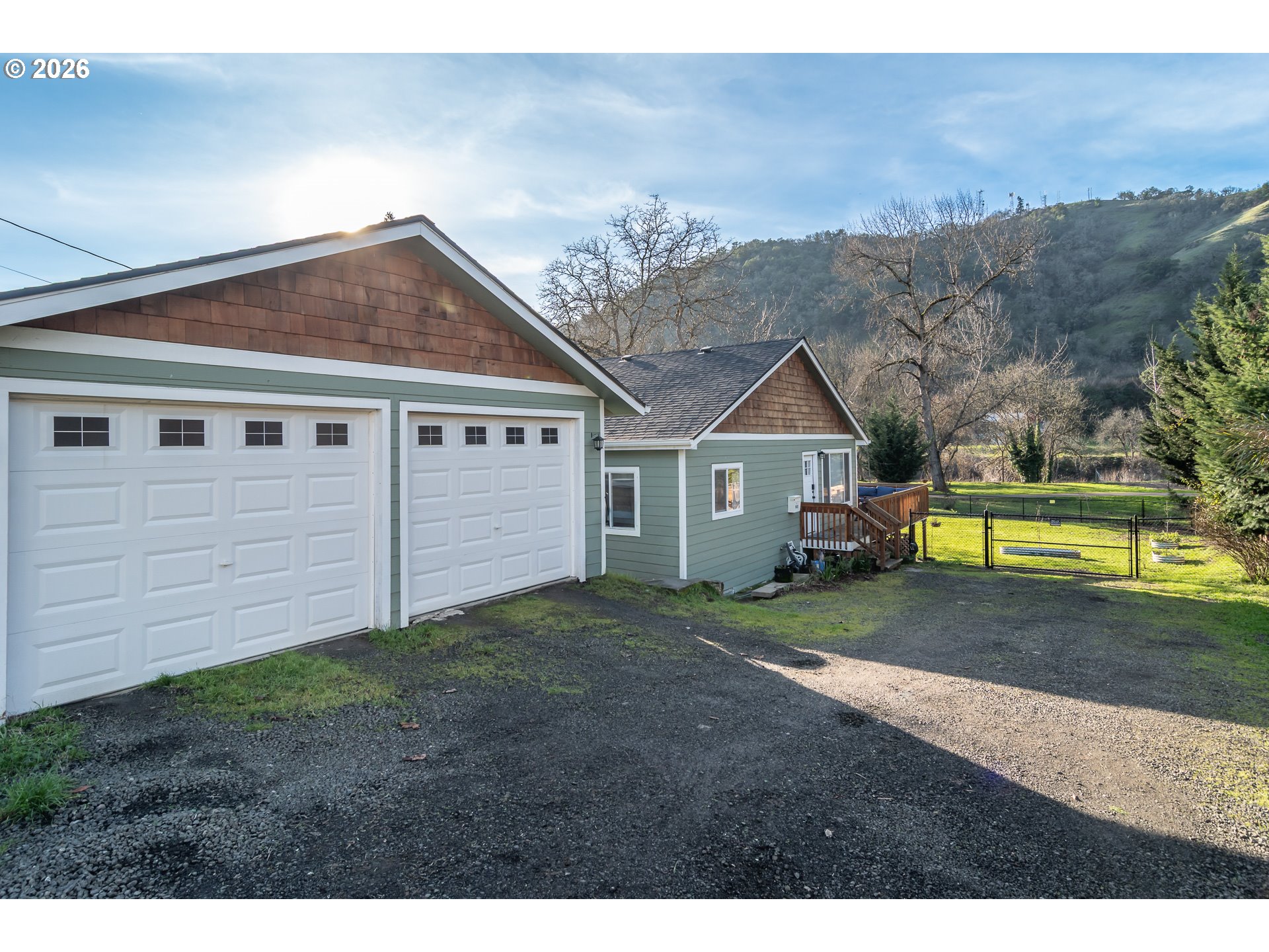 This charming single-level, 3-bedroom, 2-bath home offers the perfect blend of privacy and convenience. The kitchen shines with white cabinetry, classic subway tile, and warm butcher block countertops, creating a modern yet timeless aesthetic. Enjoy your morning coffee at the island breakfast bar or unwind on the expansive deck while taking in views of the mountains and the lush, oversized yard.The easy-care, fully fenced yard is ideal for pets or gardening—perfect for enjoying the true Oregon lifestyle. An oversized double-car garage provides ample space for tools and a workshop, while the generous driveway offers plenty of room for vehicles, an RV, and recreational toys.Home has been completely remodeled from top to bottom in 2023.Tucked away for a peaceful, secluded feel, this home is just steps from walking paths, the dog park, community playground, and easy river access. Located in downtown, it offers a rare sense of retreat—an ideal place to relax and enjoy comfort, nature, and convenience.