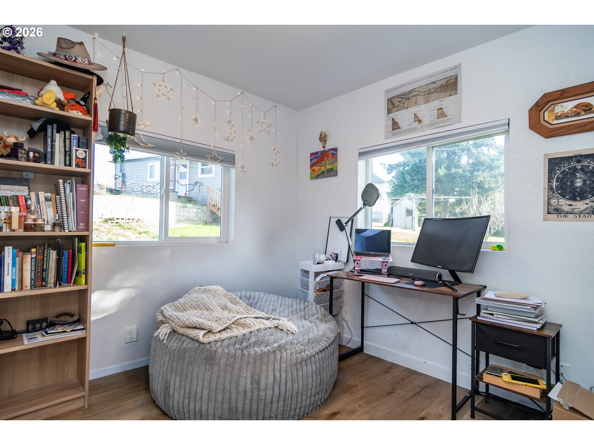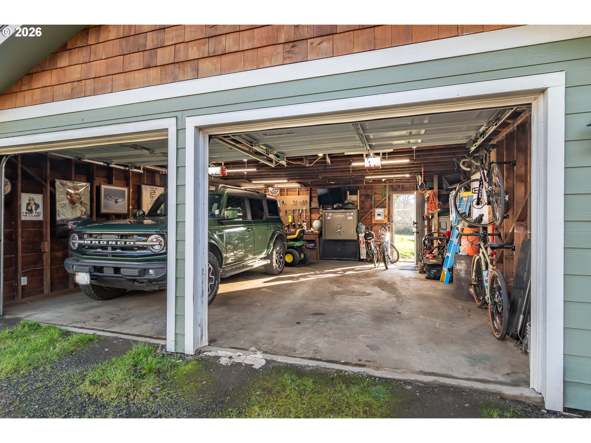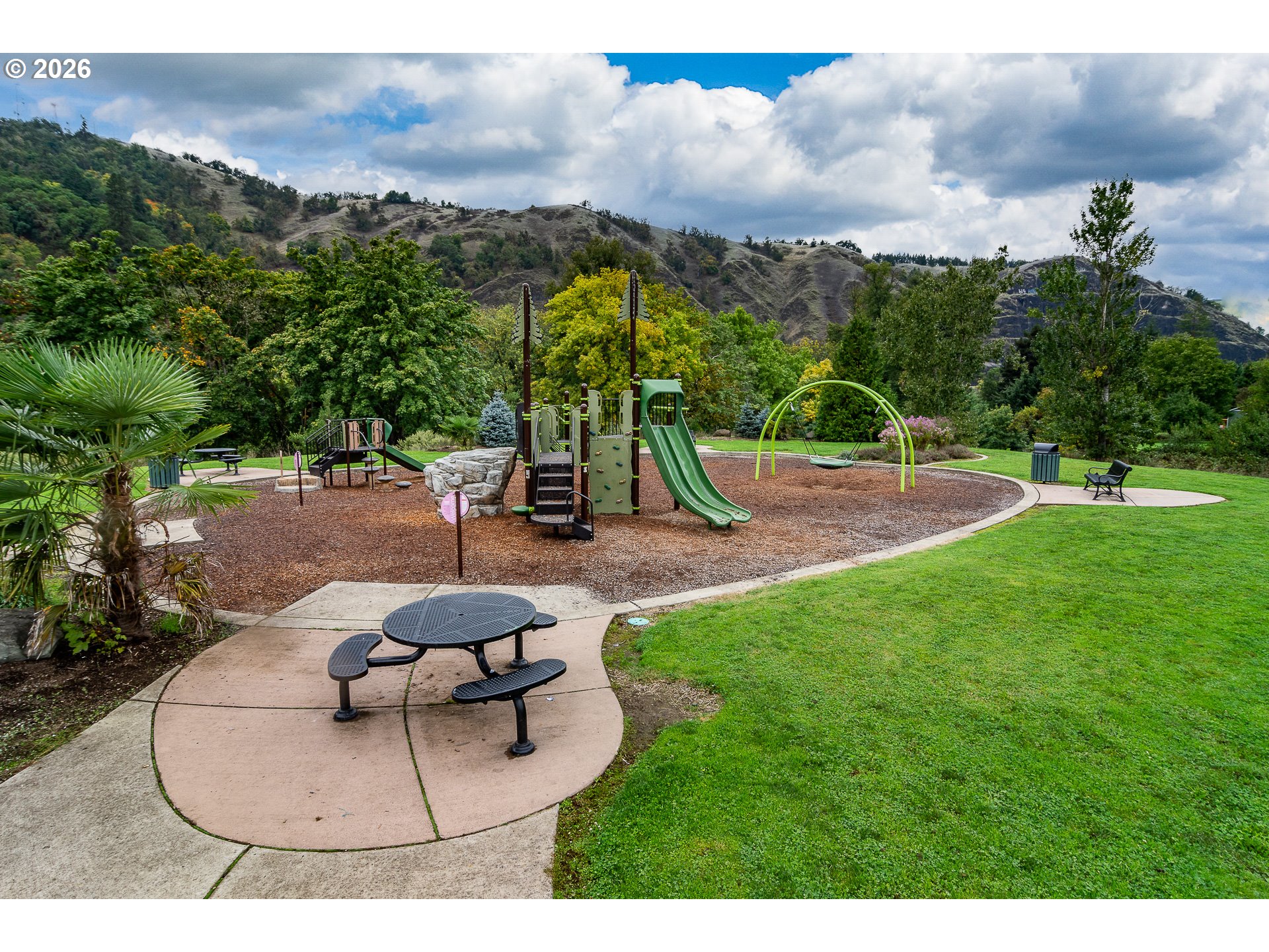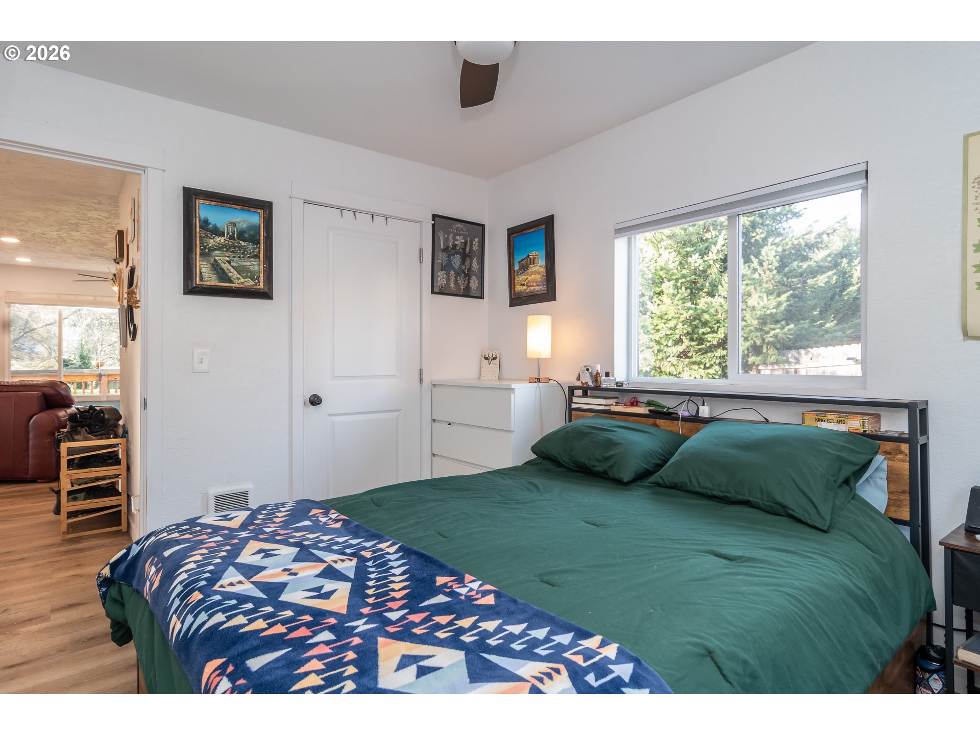This charming single-level, 3-bedroom, 2-bath home offers the perfect blend of privacy and convenience. The kitchen shines with white cabinetry, classic subway tile, and warm butcher block countertops, creating a modern yet timeless aesthetic. Enjoy your morning coffee at the island breakfast bar or unwind on the expansive deck while taking in views of the mountains and the lush, oversized yard.The easy-care, fully fenced yard is ideal for pets or gardening—perfect for enjoying the true Oregon lifestyle. An oversized double-car garage provides ample space for tools and a workshop, while the generous driveway offers plenty of room for vehicles, an RV, and recreational toys.Home has been completely remodeled from top to bottom in 2023.Tucked away for a peaceful, secluded feel, this home is just steps from walking paths, the dog park, community playground, and easy river access. Located in downtown, it offers a rare sense of retreat—an ideal place to relax and enjoy comfort, nature, and convenience.