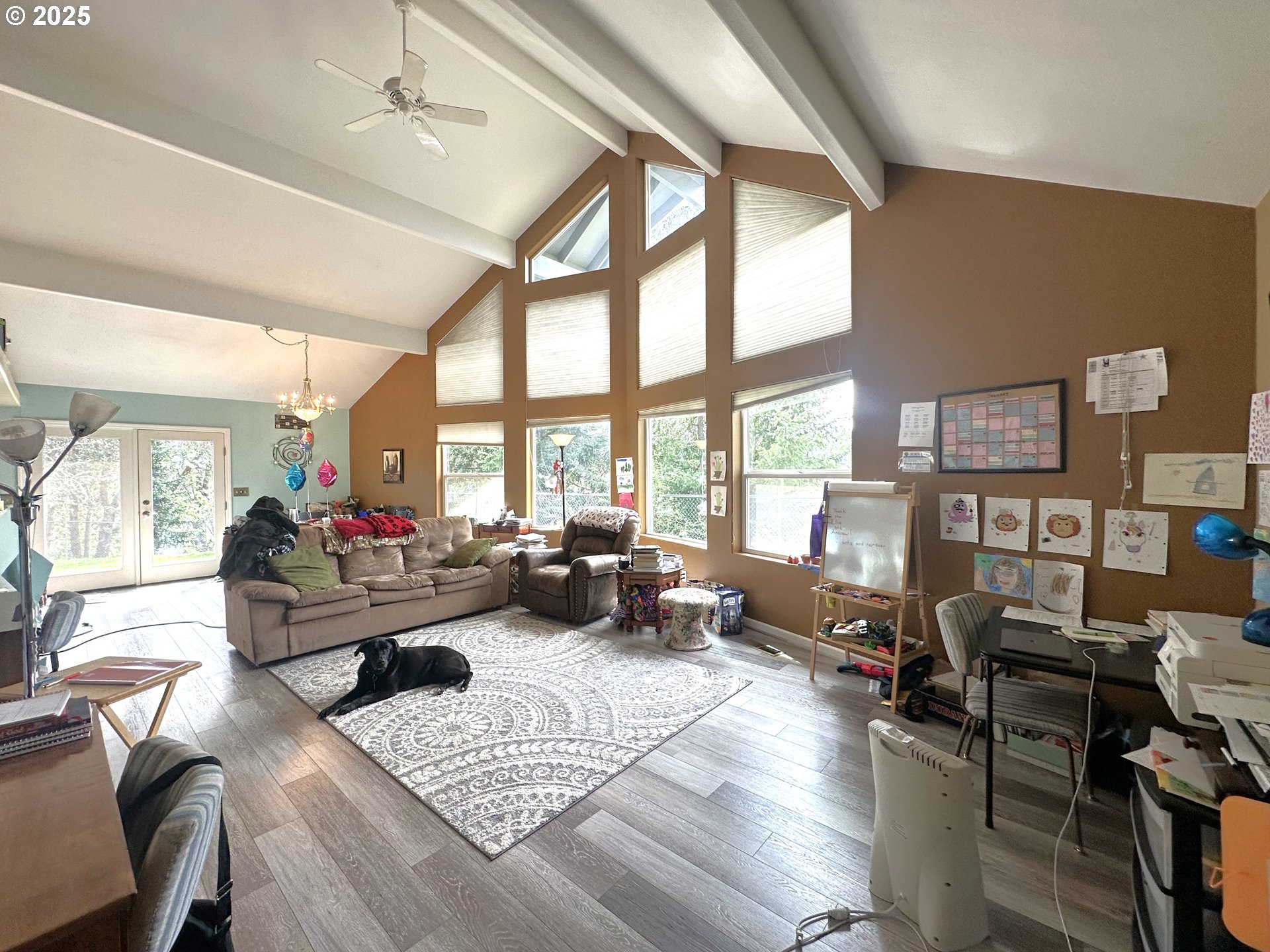 (503) 893-8874And the view goes on for miles and miles and miles... Welcome to this elegantly designed home with soaring 18' living room and 14' bedroom ceilings which create a sense of grandeur and openness. As you step inside, numerous sets of French doors not only enhance the home's classic charm but also allow for abundant natural light to flow seamlessly throughout the space. Modern vinyl plank flooring offers both style and durability complementing the home's sophisticated yet comfortable ambiance that is perfect for entertaining or relaxing. The open floor plan effortlessly connects the living areas making this home an ideal retreat for those who appreciate both elegance and functionality. Perched atop a private hill, the breathtaking panoramic views of the picturesque valley and majestic Callahan Mountain range can be seen from almost every roo