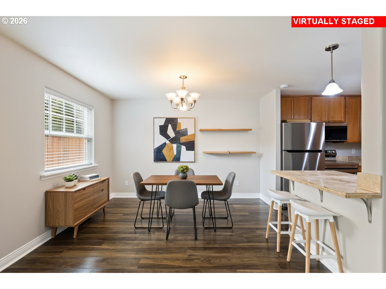 (503) 893-8874Welcome to this beautifully maintained and thoughtfully updated condo in the highly sought-after Four Seasons community, located at 1463 Four Seasons Dr in Roseburg. With inviting curb appeal featuring stacked rock accents and a newer roof installed in 2023, this home offers both style and peace of mind from the moment you arrive. Step inside to a spacious and light-filled main level where the living room welcomes you with durable LVP flooring and an open layout ideal for both everyday living and entertaining. The living area flows seamlessly into the dining space and kitchen, creating a natural gathering place for family and guests. The kitchen features tile flooring, tile countertops, new stainless steel appliances, and a convenient island perfect for meal prep, casual dining, or morning coffee. A half bathroom and access to the attached one-car garage add convenience to the main level. Upstairs, the primary suite serves as a comfortable retreat, featuring vaulted ceilings, recessed lighting, and an updated bathroom with double sinks and a brand-new shower surround. Two additional bedrooms with LVP flooring provide flexibility for guests, family, or a home office. The second full bathroom and a conveniently located laundry room are also on the upper level, making daily routines simple and efficient. Sliding glass doors off the living room open to a private concrete patio and fenced backyard, creating the perfect space to relax or entertain. The low-maintenance landscaping and raised planter boxes add charm while offering a great opportunity for gardening without the upkeep of a large yard. Conveniently centrally located in Roseburg, this home offers easy access to shopping, dining, and everyday amenities while providing comfortable, low-maintenance living in a desirable community. Move-in ready and beautifully cared for, this condo is ready to welcome its next owner.
