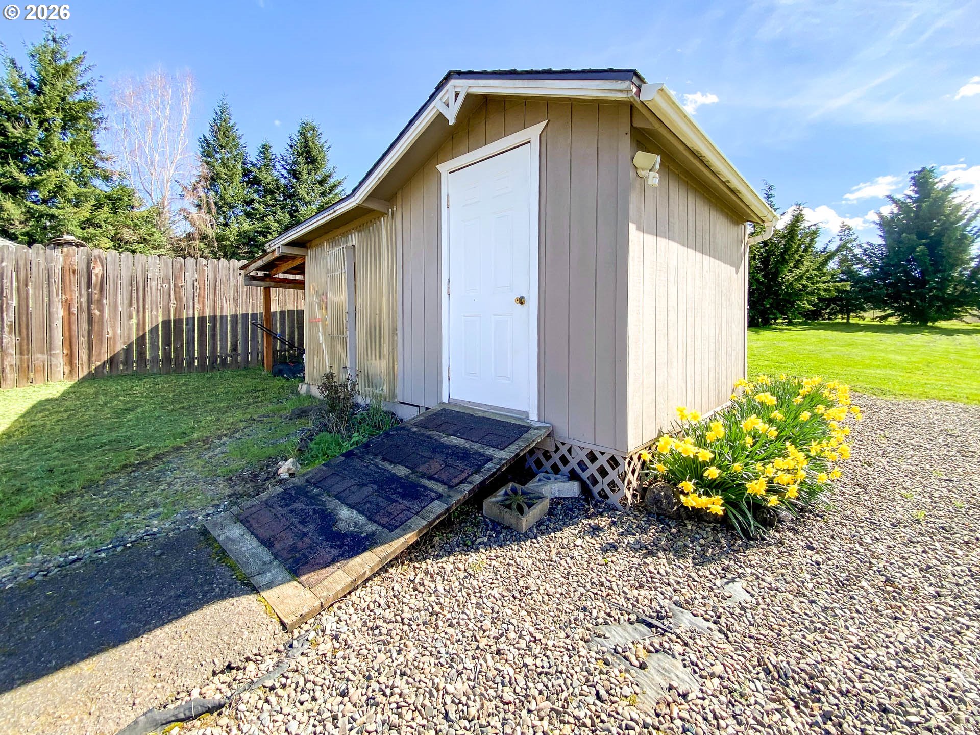 Come see this beautiful 0.61 acre property located on a quiet country cul-de-sac in a neighborhood of other custom homes all on large lots. You will enjoy what this one level home has to offer including a welcoming front porch, an open split floor plan, a living room with cathedral ceiling, and forced air gas heat and central AC. The roomy kitchen features plenty of storage with a pantry cupboard, a center island with new sink and faucet, and all kitchen appliances included. The dining area offers a sliding door to the large covered wood deck that's a seamless blend for indoor, outdoor entertaining! The large primary suite features an ensuite with large vanity and walk-in shower. Located on the opposite side of the home features two nice-sized guest bedrooms, one with an attached shared bathroom. Outside is a park-like retreat with an extra-large fully fenced backyard, a peaceful waterfall and pond feature, a large exceptionally nice storage shed with attached greenhouse, raised garden beds, and gated RV parking. The golf enthusiast will appreciate the two putting greens and the property's close proximity to Roseburg County Club and Bar Run - Roseburg's two premier golf courses. Recent upgrades include a newer roof and fresh exterior paint. All of this is located just minutes from Roseburg and all its amenities, yet outside the city limits for low county taxes! You won't want to miss this exceptional property. Call for an appointment today!
