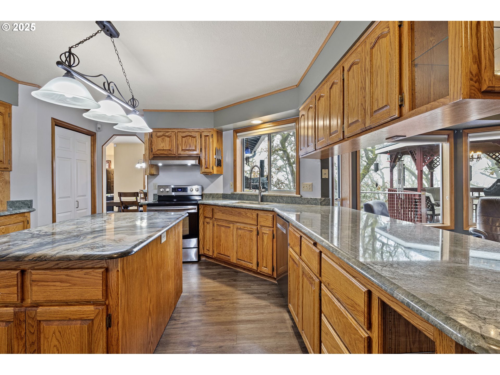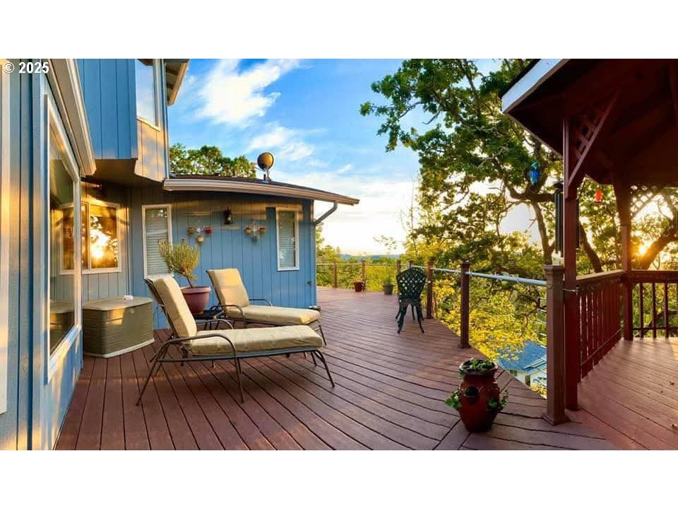 (503) 893-8874Tucked in a serene neighborhood, this home offers an “out-of-town” feel while just a few minutes from Roseburg’s shops and dining. Main level features a living room, dining room, family room, large laundry room with a sink, a full bathroom, and half bathroom. Step outside onto the balcony to enjoy the stunning views, equipped for rain or shine with the attached covered gazebo. The kitchen has custom granite countertops with a large island, as well as a coffee bar. Upstairs, the large primary suite features a walk in closet, a purse closet, bathroom, and views of the valley. Downstairs is another full bathroom, 2 bedrooms, and access to under the house storage area. There's an attached three car garage, and a place for RV Parking! The low maintenance yard has stair access from the balcony. Outdoor living shines with a large Trex deck, gazebo, and hot tub, perfect for entertaining or unwinding as the sun sets. Established gardens with roses, rhododendrons, and grapes, along with regular visits from deer, turkeys, and songbirds, complete the picture of peaceful hillside living. Whether it’s summer sunsets over the valley, misty winter mornings with fog rolling through the hills, or dramatic storm light breaking through clouds, the views here feel like living in a painting. Make this dreamy home yours!
