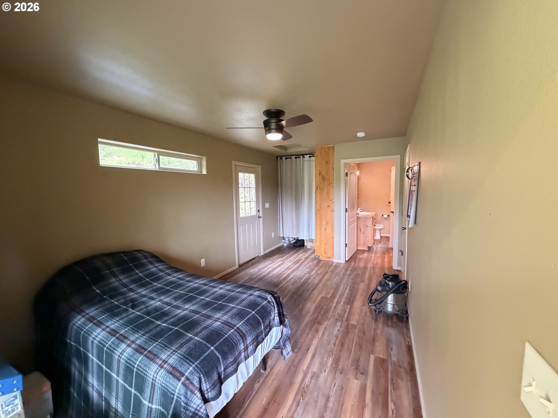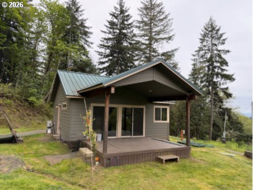 Welcome to your own private retreat on 5 serene acres, where simplicity meets intentional living. This charming 1 bed, 1 bath home is designed with location in mind, maximizing what actually matters: comfort, function, and connection to the outdoors. Step inside to a spacious kitchen featuring a beautiful, oversized corner window that frames your mountain view. The oversized bedroom offers a walk-in closet plus built-in storage, while the bathroom includes a walk-in shower and even more thoughtfully designed storage space. The dedicated utility room with washer/dryer hookups keeps everything practical and organized. Outside you'll find a covered deck over-looking 5 acres of peace, privacy, and potential. Much of the property has already been cleared, with a growing collection of fruit trees and native plants. Perfect for anyone craving a homestead feel, space to expand, or just room to breathe. This cabin-like cottage is waiting for its finishing touches!