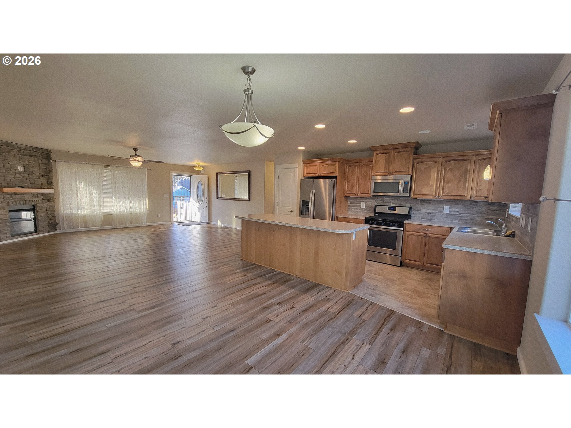Exceptional Home in Oak Meadows Subdivision off Lookingglass Road giving you the feeling of being in the country but still being close to town. This meticulously maintained home offers the ideal combination of comfort, style, and functionality. Step inside and experience a welcoming open-floor plan, highlighted by large, vaulted ceilings in the great room area. The space is further enhanced by a built-in gas fireplace, creating a warm and inviting ambiance. Step into the Entertainer’s Kitchen, where a spacious island becomes the heart of the home—an inviting hub for lively gatherings and meaningful moments for guests to gather while meals are prepared. The open layout seamlessly connects the kitchen to adjoining living spaces, making it easy to keep conversations flowing and everyone together. Making it a focal point for both everyday living and special occasions. Wonderful outdoor living with a large yard, a covered patio ideal for relaxing or entertaining, and a spacious workshop. There is ample room for RV parking, and the property is fully fenced, providing a secure space for your furry friends. The backyard is designed for fun, relaxation, and entertaining, offering versatility for a variety of outdoor activities. Easy Landscaping with built in sprinkler and drip system to keep your lawn and plants lush. This exceptional home was built by Tabor Building in 2015 and has had only one owner, reflecting the care and quality invested in its construction and maintenance.