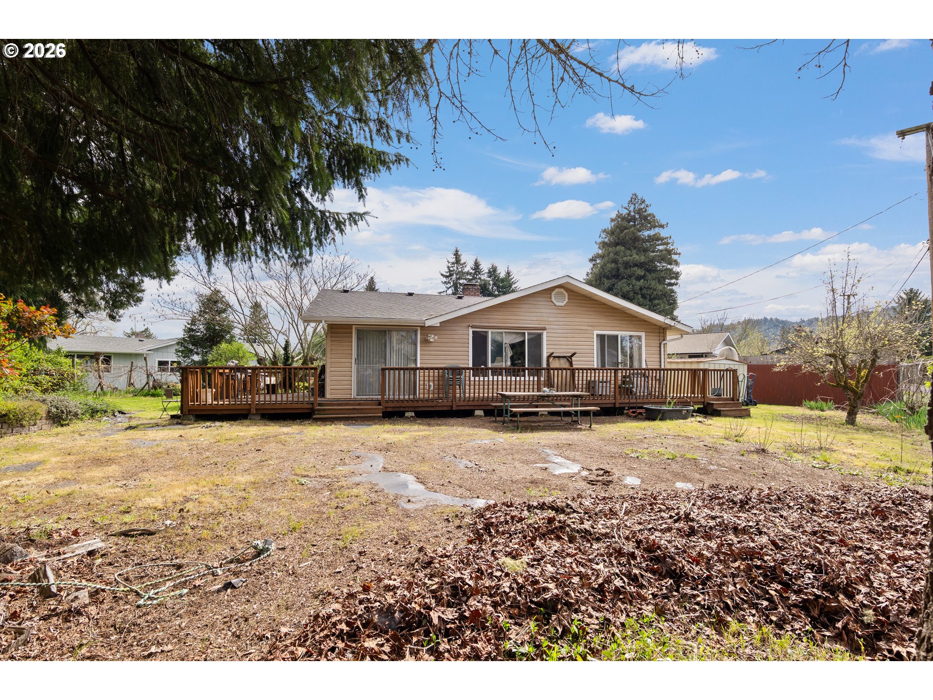 Charming 3-bedroom, 2-bath home offering 1,374 sq ft of comfortable living space on a spacious .25-acre lot. This property features a large, fully fenced yard—perfect for entertaining, pets, or gardening—complete with established fruit trees including two pear trees, two apple trees, and grapevines. A partial wrap-around deck provides the ideal space for outdoor relaxation. Inside, enjoy a warm and inviting living area with a beautiful wood-burning fireplace, along with the added comfort of a newer air-conditioning unit. The home also boasts a newer roof for added peace of mind. The 2-car garage provides ample storage and convenience.Located in a fabulous area just minutes from local amenities and within walking distance to Stewart Park, a 236-acre regional destination featuring scenic riverfront trails, golf, disc golf, playgrounds, and the popular Music on the Half Shell summer concert series. Nearby attractions also include Douglas County Museum, the YMCA, and Fir Grove Park with its seasonal splash pad. Close to shopping, dining, and medical facilities—this home offers the perfect blend of comfort and location.