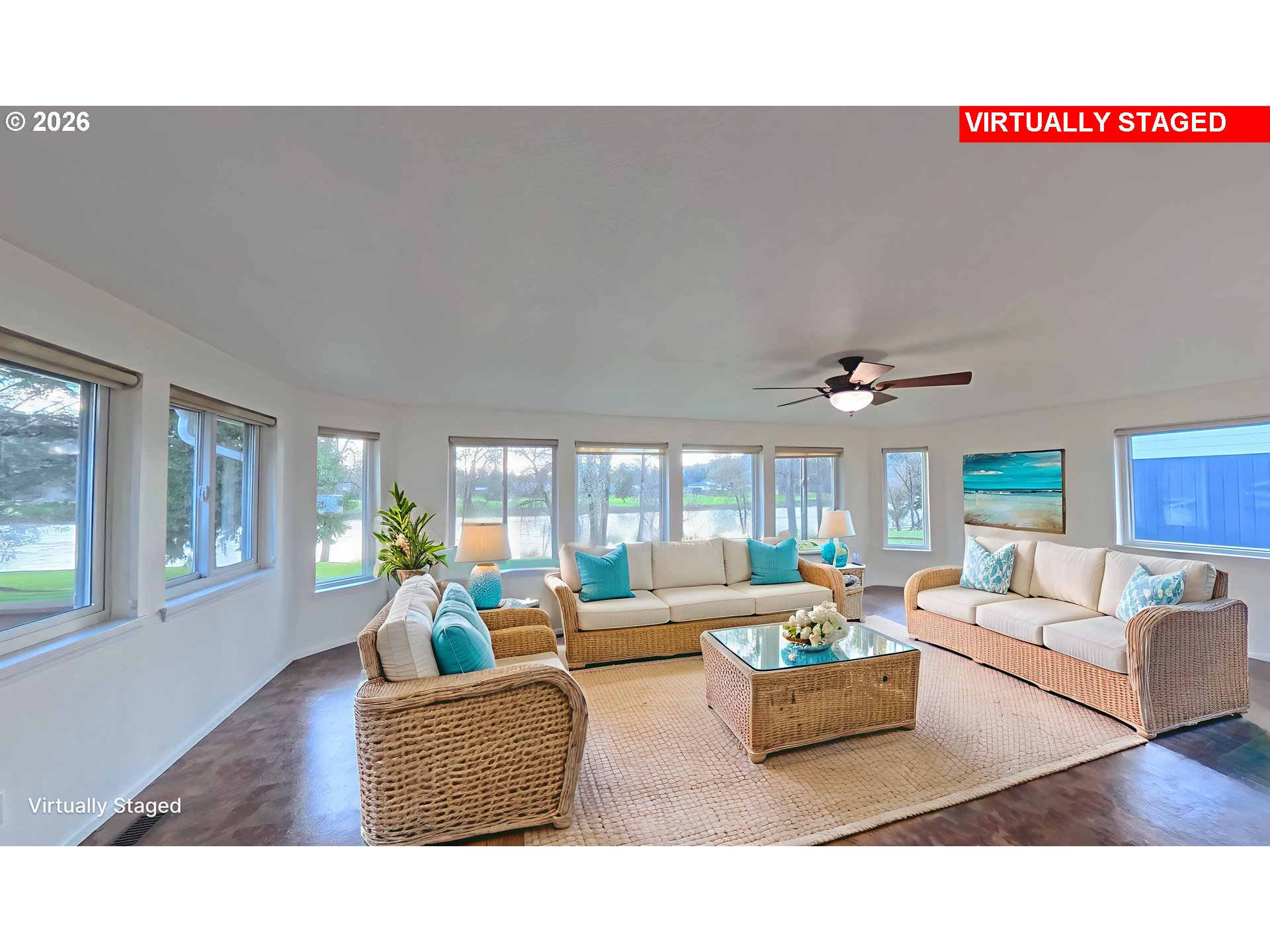 Welcome to your own North Umpqua Riverfront paradise! Enjoy gorgeous views from every room in this 3 BR/2 BA home, updated with fresh paint and new carpet. Perfectly blending scenic beauty, versatile living spaces, and room to grow, this home is a rare riverfront treasure. Inside, the sunroom’s large windows overlook the river, filling the space with natural light and creating a serene spot to relax year-round. The kitchen features abundant cabinetry, all appliances, and a window over the sink framing the river views. The living room features a wood-burning stove and a picture window with mountain views. The primary suite features a walk-in closet plus en-suite bath with a walk-in shower, while two additional bedrooms offer flexible options, and the laundry room includes a built-in sink for added convenience. Outside, enjoy a covered front porch with peaceful mountain views, set behind a charming white picket fence. The back deck opens to picturesque river views, perfect for entertaining. Additional amenities include a backyard shed, a large 40'x27' workshop with office space, a detached garage, and plenty of room to park an RV, trailers, or recreational toys. This exceptional property combines mountain scenery, riverfront living, and flexible indoor and outdoor spaces in a highly desirable Roseburg location. Make this home yours and you could be fishing from your backyard in no time.