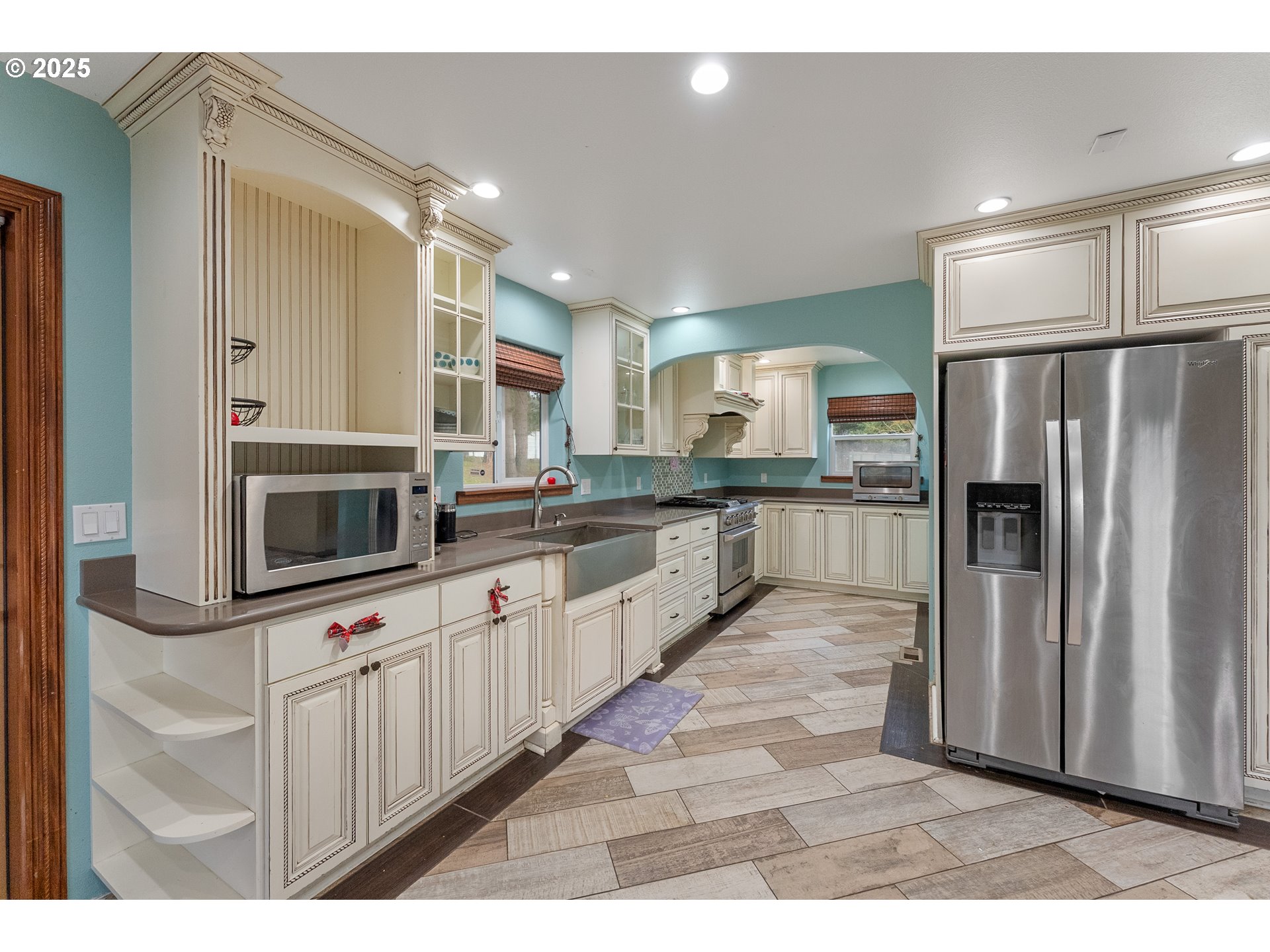 (503) 893-8874WOW! 1910 farmhouse transformed into a high-end custom beauty, with an 1888 sq ft shop and upstairs guest quarters. You do not want to miss this one! Thoughtfully reconstructed in 2017, blending modern craftsmanship with the character of the original 1910 farmhouse it was inspired by, resulting in a high-quality, 2,518 sq ft residence set on a fully fenced one-acre lot just outside Myrtle Creek, with quick access to I-5 and Roseburg. The main level features a large living room that opens seamlessly to a custom kitchen and dining nook. Stainless steel appliances, a gas range, custom cabinetry, and detailed tilework set the tone, while crown molding, solid-wood doors, and quality finishes carry throughout. A main-level bedroom and full bathroom with tile floors and a walk-in tiled shower offer flexibility to the floorplan. Upstairs includes three additional bedrooms, an office nook, and a beautifully finished guest bath with tile floors and a custom tiled shower. The primary suite stands out with double doors, a spacious bedroom, a private deck balcony, a large walk-in closet, and an ensuite bath featuring dual sinks and a walk-in tiled shower with dual shower heads. A full wraparound porch and patio extend the living space outdoors. The property also includes a substantial, fully insulated shop with ductless heating and cooling, a full bathroom with tile shower on both main and upstairs levels. Nearly 1,900 sq ft on the main level. Above the shop is a finished 768 sq ft guest or apartment space with a Jack-and-Jill bath. Plenty of parking, room for toys or a home business, plus an additional flat pad ready for future plans. Apple, cherry, fig, Asian pear, plum, and pear trees add to the setting. This is a rare blend of space, function, and craftsmanship in a small-town setting. Schedule your private tour of this one-of-a-kind home today!