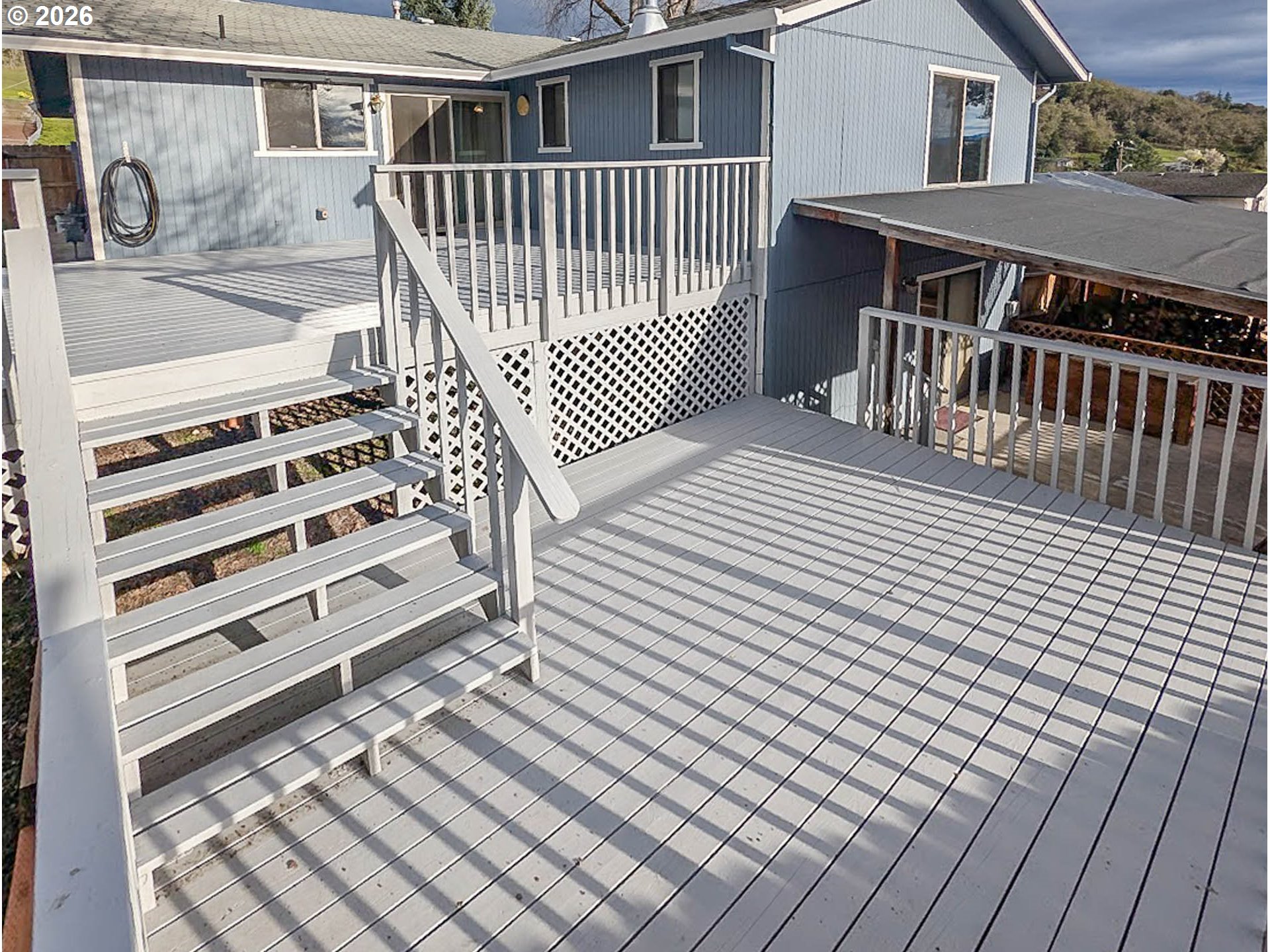 Come check out this well maintained, 3 bedroom, 2.5 bath house in a quiet, friendly neighborhood. Inside you will find a warm and inviting floor plan with a formal living room that leads to the kitchen and dining area. The kitchen includes quartz countertops, a large cast-iron sink, prep island and pantry. Step out the sliding door to a multi-tiered deck, great for entertaining with access to a fenced yard with a storage shed. Perfect place for get-togethers. The main level also has a generous-sized primary bedroom with private bath and a secondary bedroom. Recent upgrades include newer LVP flooring, carpeting, and fresh paint. The home includes a Terra-Firma foundation pier system with warranty. Downstairs is such a great place to relax. It includes a large, cozy family room with a new wood stove, a third bedroom, laundry/half bath, and storage. It has plenty of natural light with access to a covered patio. There is lots of room for entertaining and is already plumbed for a wet bar. Two car garage with built-in storage and workbench. RV/boat parking, 528 SqFt decking.
