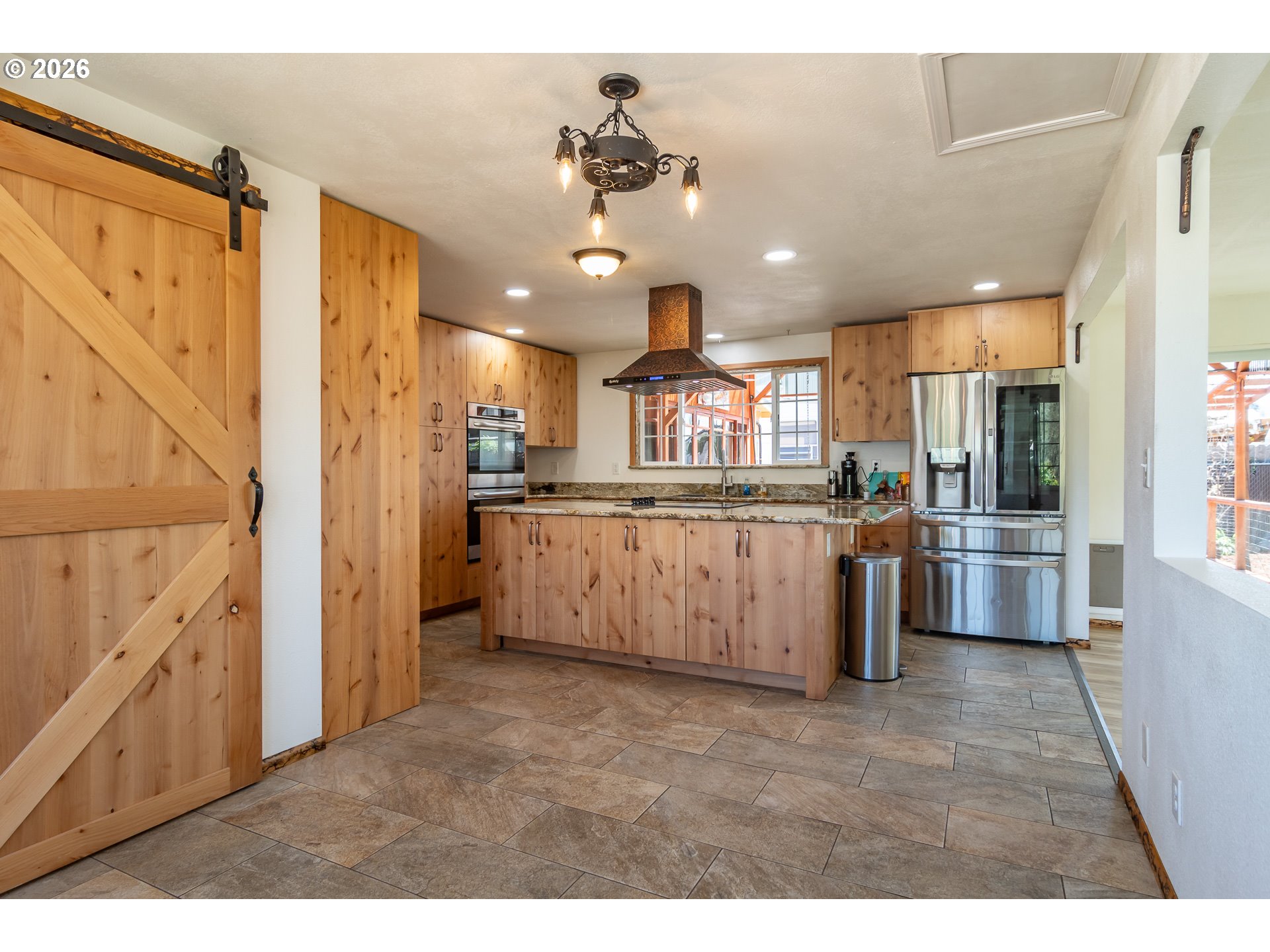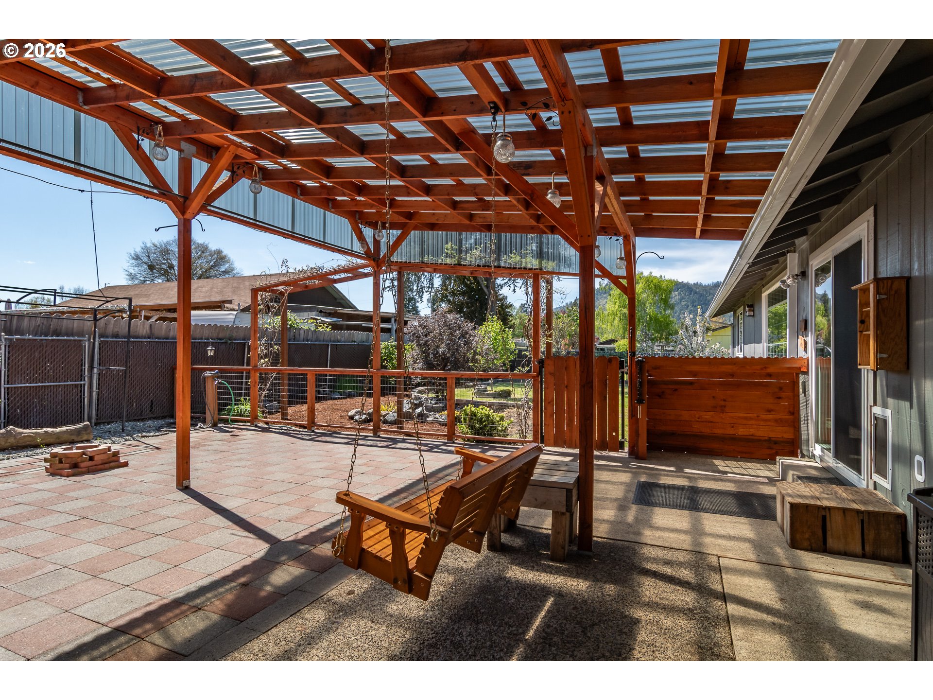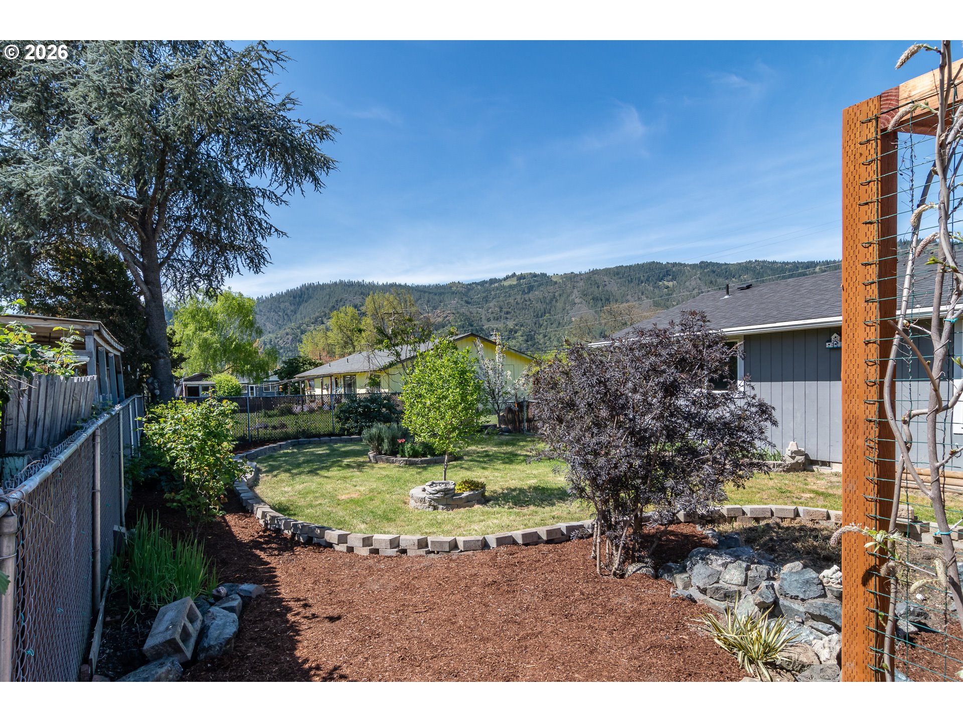 (503) 893-8874Beautifully maintained home on a spacious corner lot in an established Myrtle Creek neighborhood with mountain views, close-in amenities, and minutes to I-5. Inside, the home is filled with natural light and features double-pane vinyl windows throughout. The front entry opens to a large great room offering flexible living and family space, anchored by a cozy woodstove and complemented by ductless heating/cooling units throughout for efficient year-round comfort.The fully remodeled kitchen is a standout, featuring granite countertops, beautiful custom hardwood cabinetry, a cook island with glass-top stove, custom hood vent, double oven, stainless steel appliances, abundant storage, and a large pantry. The dining area offers a peek-a-boo opening to the living space, creating a wonderful balance of openness and separation. A bathroom with custom barn-style door adds charm and convenience. The home includes 3 bedrooms plus an attached exterior bedroom ideal for guests, extended family, office, or hobby use. Custom trim throughout completes this inviting and versatile home.Outside, the property continues to impress with well-landscaped front and back yards, fruit trees, gardening space, and a fully fenced backyard designed for privacy and enjoyment. The living room opens to a covered patio oasis featuring a porch swing, brick patio, fire pit area, and access to a an enclosed windowed hot tub room. A small fenced border creates excellent separation of space while opening to the expansive backyard beyond.