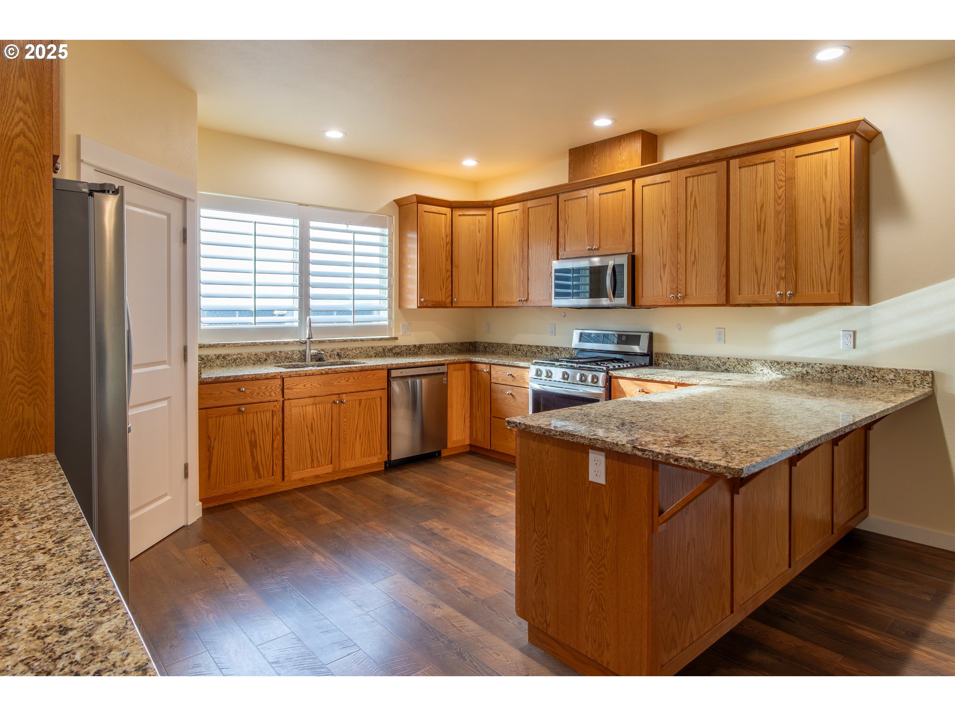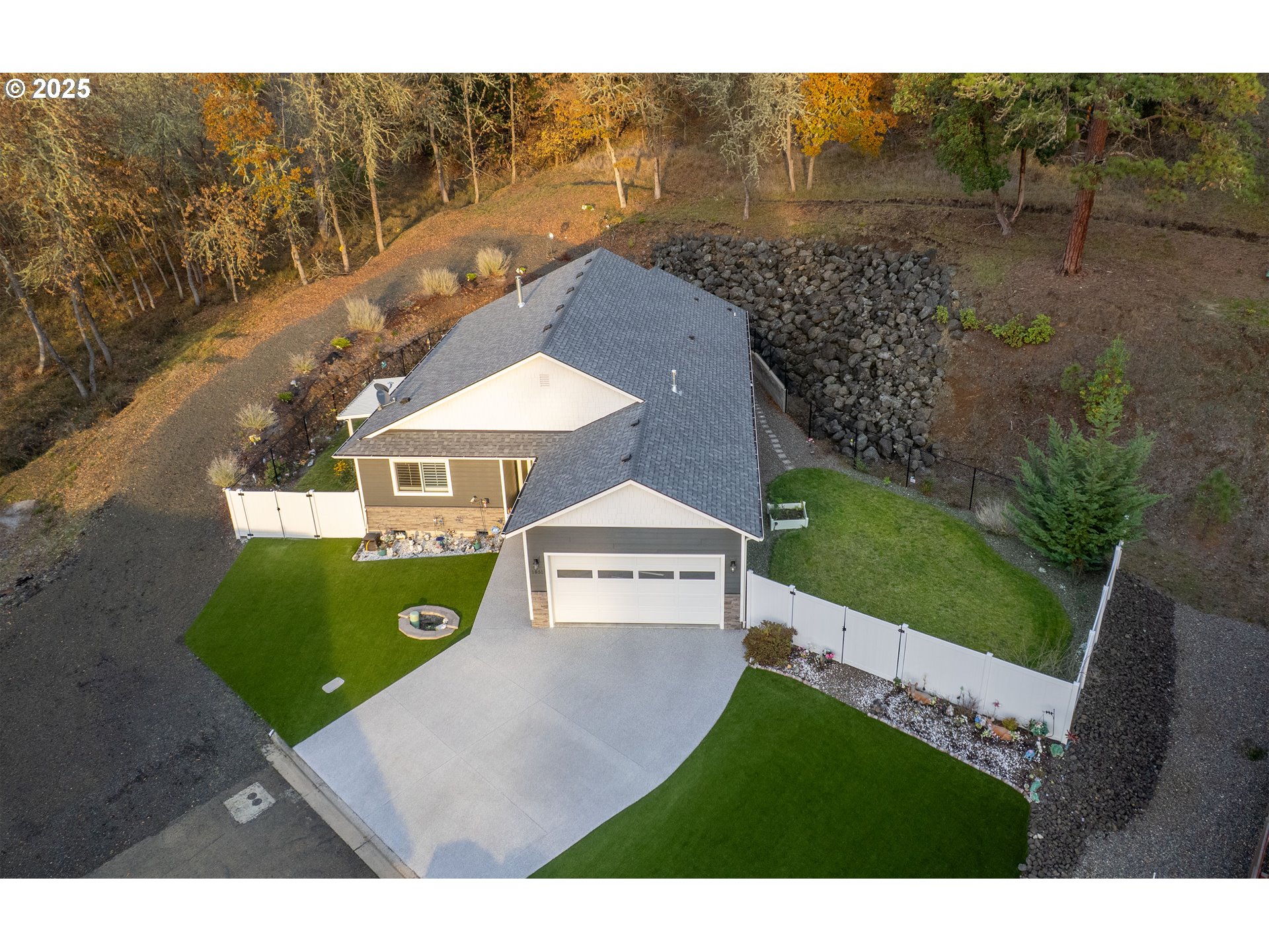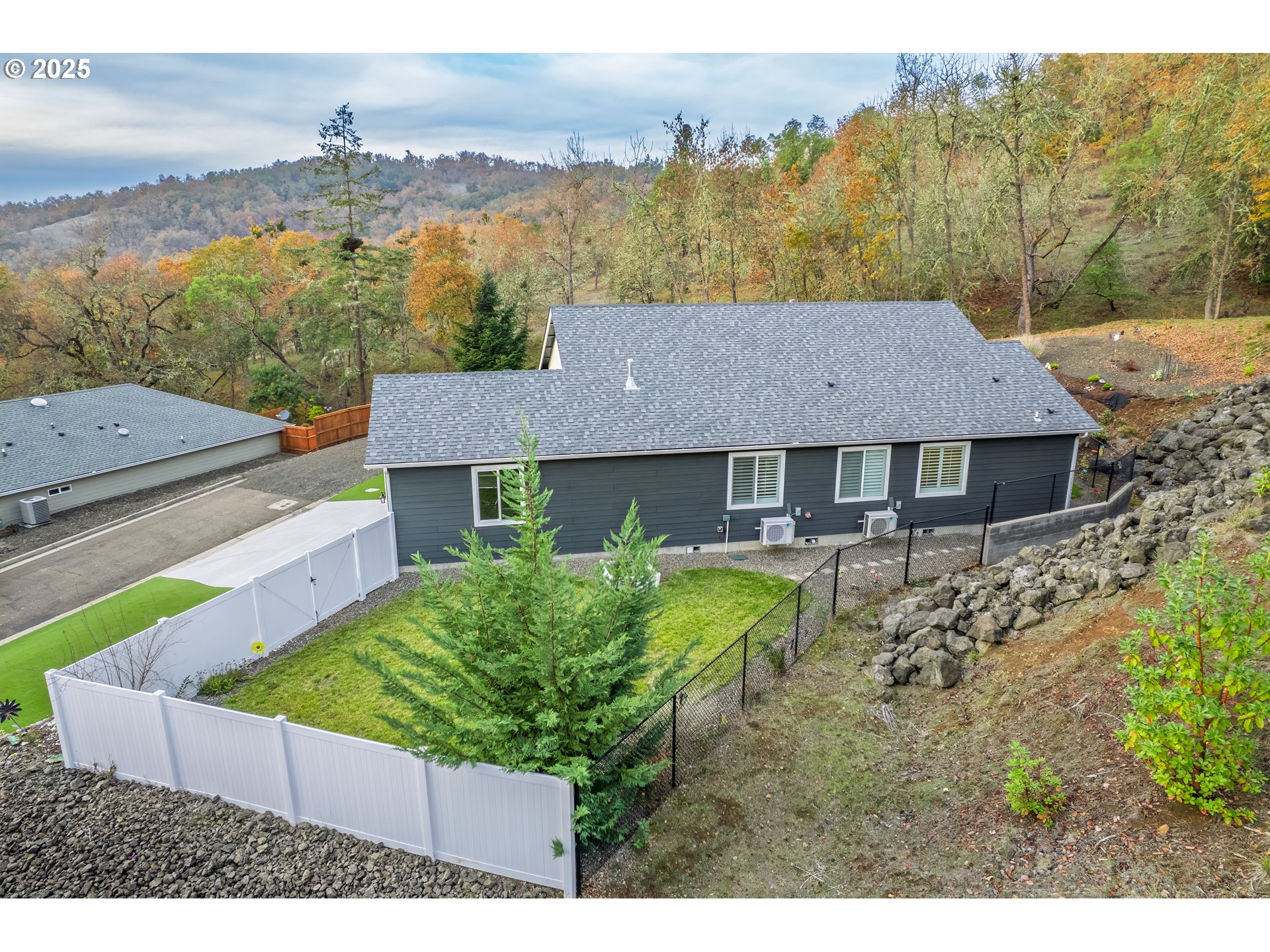 Welcome to comfort, quality and style in this custom-built home located in the scenic hills of Rose Village, a highly desirable, 55+ community. This 3-bed, 2 bath, 2-car garage home boasts 1952 sf on .48 acres. Nestled in a peaceful, private location with lovely curb appeal, this home showcases breathtaking mountain views, a low-maintenance artificial turf front lawn, a fenced backyard, 2 covered decks, and an automatic sprinkler system. A rare addition to this property is an extra-large auxiliary driveway. Step through the front entryway to an airy open floor plan featuring high ceilings, gorgeous luxury vinyl plank floors, and custom plantation shutters throughout. A high-efficiency Daikin HVAC system, cozy gas fireplace, and multiple ceiling fans keep the home comfortable all year-round, and the pleasant color palette and tasteful light fixtures add an elegant finishing touch. The spacious, well-appointed kitchen features tons of high-quality cabinets, granite countertops, a roomy corner pantry, built-in desk, and stainless-steel appliances, including a gas range. Soft-close cabinets and drawers are throughout the kitchen, bathrooms and laundry room. The washer and dryer are included for move-in-ready convenience. The expansive Primary suite is a true oasis with a king-sized bedroom and an enormous walk-in closet that must be seen to be believed. The huge spa-like bath retreat offers a luxurious jetted soaking tub and supersized walk-in shower, double sinks, and a private water closet. Situated in a quiet setting just minutes from shopping, restaurants, entertainment, and medical care, this home captures the best of Roseburg’s 55+ living. Schedule your private showing and experience it yourself.
