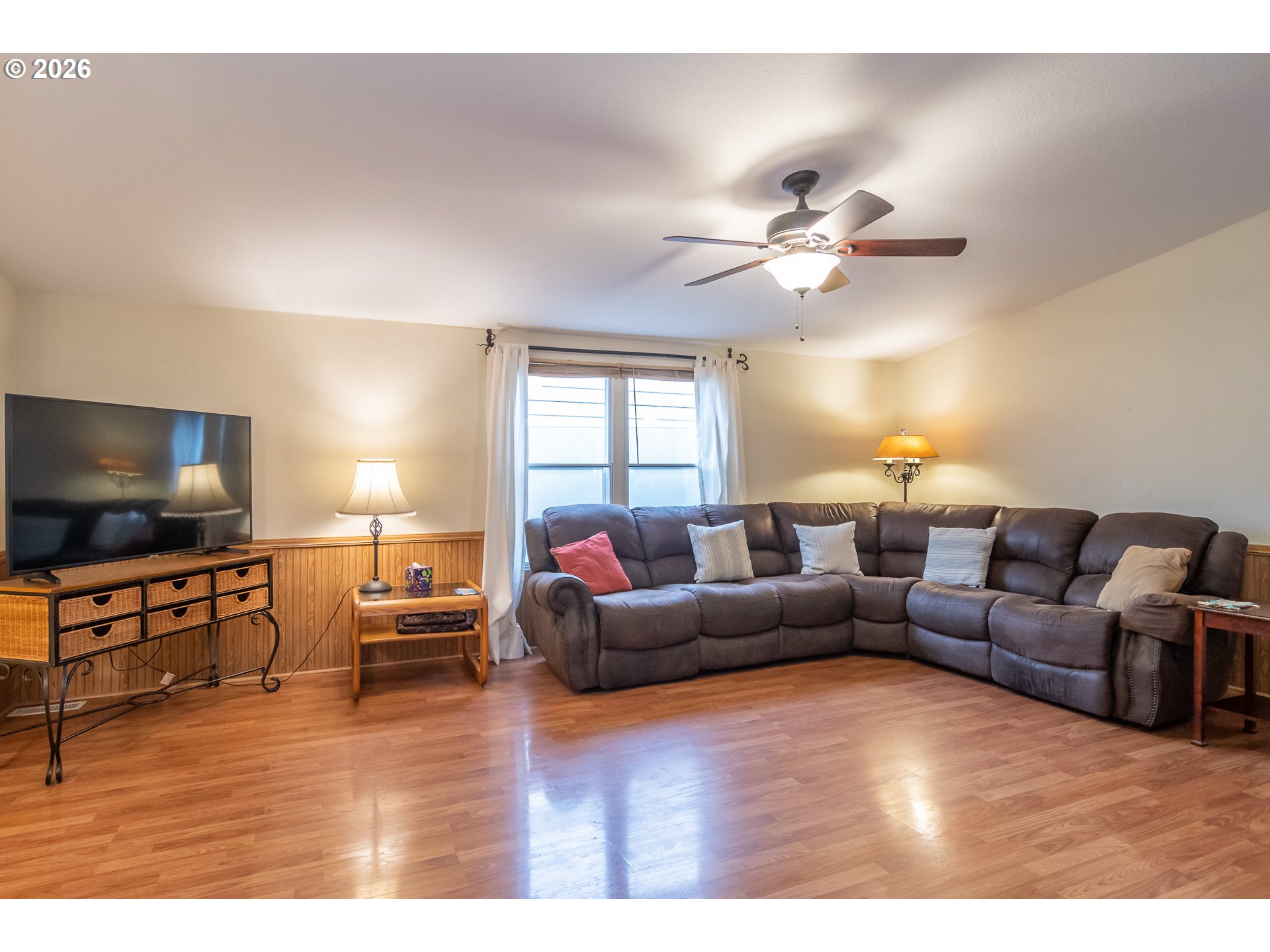 Well-maintained single-level home offering 3 bedrooms, 2 bathrooms, and 1,782 sq ft of comfortable living space. Features include a spacious 24x24 oversized detached garage with window and a brand-new roof. The privacy-fenced backyard includes a charming courtyard, covered patio with pavers, and an easy-care yard with a small garden area featuring raspberries, blueberries, and organic topsoil. Plenty of room to park multiple RVs, trailers, and toys, with parking available behind a drive-through gate plus an on-site RV sewer dump. Inside, enjoy a double-sided wood-burning fireplace serving both the living room and family room, along with a separate dining room and eat-in kitchen. Recent updates include newer flooring and fresh interior and exterior paint. All bedrooms feature brand-new carpet and walk-in closets. The primary suite offers a generous ensuite bath with soaking tub and walk-in shower. All kitchen appliances are included, along with washer and dryer. This property is perfect for those who need space, storage, and flexibility—bring all your toys!