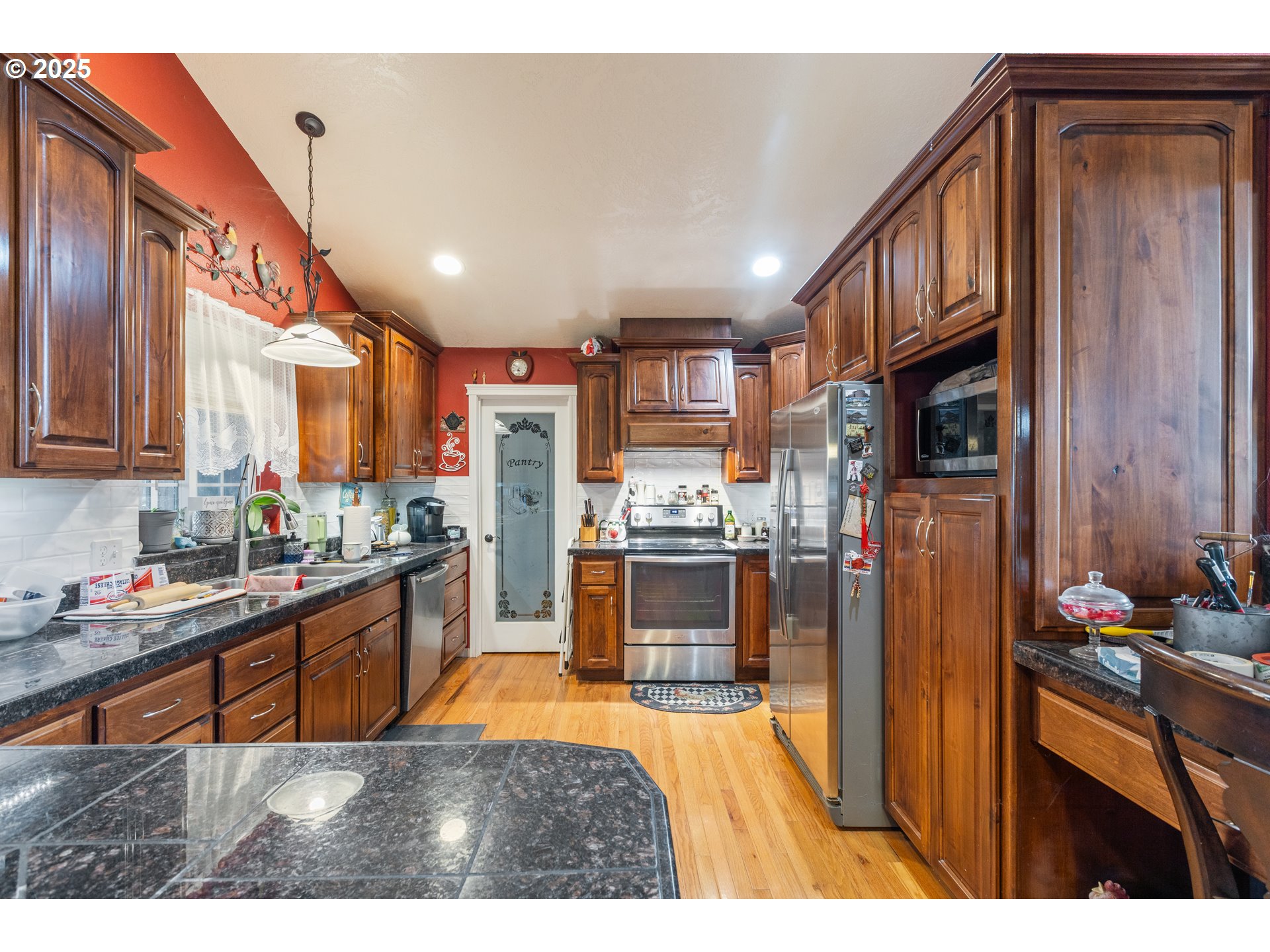 Charming 3-bedroom, 2-bath home on 1.66 acres in Sutherlin, offering the perfect balance of comfort,and style. This thoughtfully designed home features beautiful hardwood floors and a spacious, well-appointed kitchen complete with high-end cabinetry, a large walk-in pantry, and granite countertops, creating an ideal space for cooking and entertaining. The open and inviting floor plan provides a seamless flow between the living, dining, and kitchen areas, perfect for both everyday living and hosting guests. The primary suite offers a relaxing retreat with a large soaking tub and walk-in shower. A dedicated office with a connecting room provides flexible space suited for hobbies, or crafts. The large attached garage offers exceptional versatility, featuring upstairs living quarters with a bathroom and plumbing ready for a kitchenette, making it ideal for guest accommodations, multigenerational living. Outdoors, the expansive acreage provides ample room for small farm animals, gardening, or outdoor recreation. A scenic pond enhances the property, creating a peaceful natural setting where you can relax and enjoy the surrounding beauty. Conveniently located just minutes from town, this property offers the rare opportunity to enjoy a country lifestyle without sacrificing accessibility to local amenities.