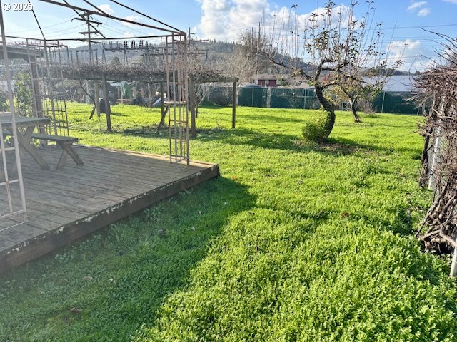 Vacant, move-in ready home on a large, level lot with a fully fenced backyard, wood deck, covered patio and garden boxes. The paved driveway allows RV parking. Features include a two-car detached garage with covered access, new roof (2025), freshly painted interior, remodeled bathroom with step-in shower, updated central heat system, vinyl windows and hardwood floors in bedrooms (possibly under living room carpet). The finished 330 sq.ft. attic offers extra storage or playroom space, accessible from an interior staircase built to today's code. This well insulated home will keep you warm and cozy winters and cool in summer. Seller lives on this dead-end street and says it's a friendly quiet place to live.