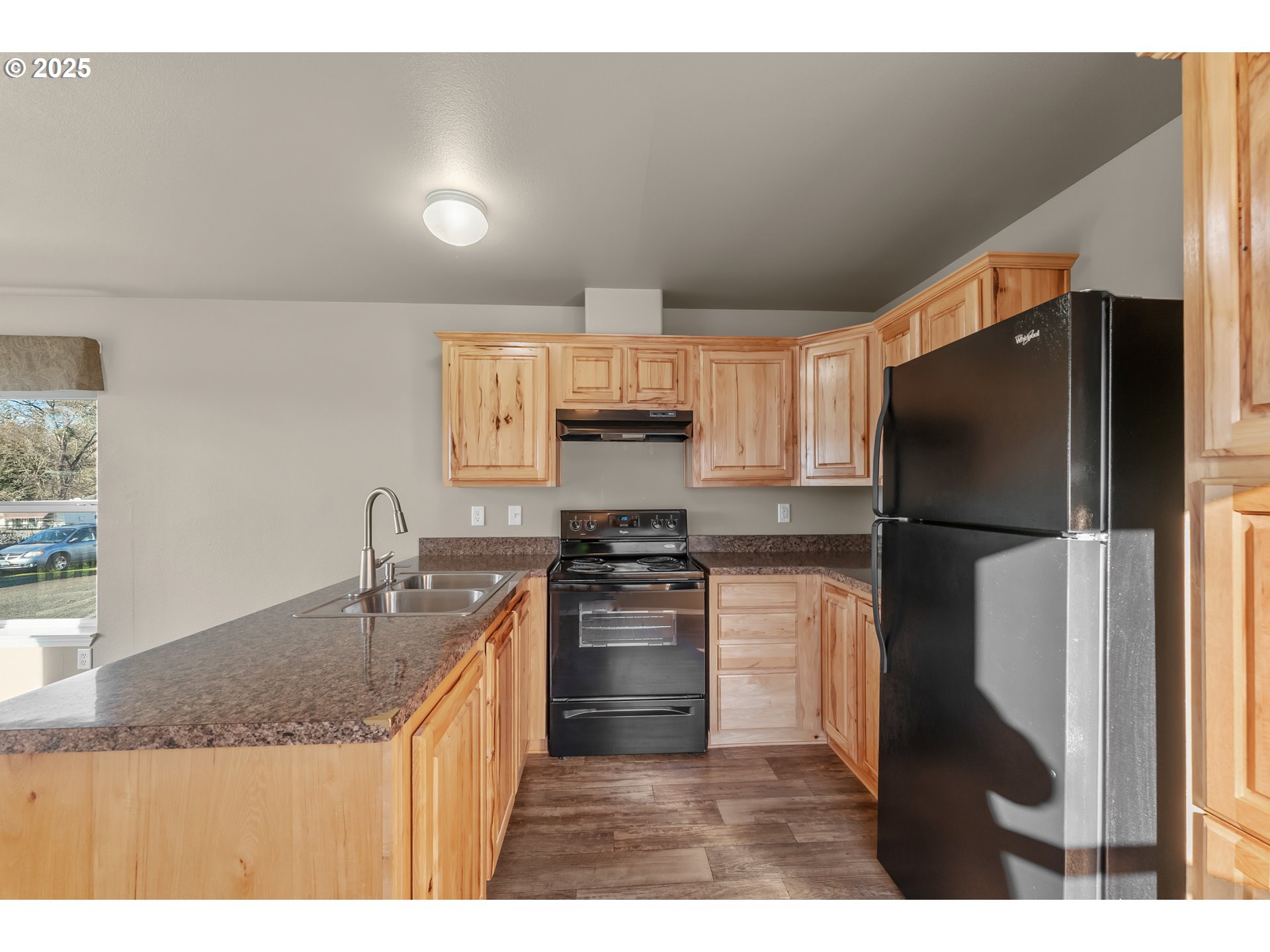 WOW! Clean and move-in ready! This well-kept 2-bedroom, 1-bath home checks all the boxes for comfort, condition, and affordability. Everything feels fresh and well cared for, inside and out, making this an easy move for the next owner. The exterior has been recently updated with new paint, a new shared carport with concrete slab, and new decking. A covered front porch adds a practical spot to sit and enjoy the quiet surroundings. The home sits in a well-maintained 55+ community with updated infrastructure, including new water and sewer lines throughout the park completed in 2023. Inside, the layout is efficient and open, with a bright living area that flows directly into the kitchen and dining space. The kitchen features natural wood cabinetry and includes the range and refrigerator. Vinyl plank flooring runs throughout the main living areas, and large windows bring in plenty of natural light. Both bedrooms are well-sized with good closet space, and the bathroom is clean and functional with a full tub/shower combo. Dedicated indoor laundry is a practical everyday convenience. Outside, you’ll find a shared carport, an attached storage area, and low-maintenance yard space. Space rent is an affordable $650 per month and includes sewer and trash service. Located in a quiet, established community with a peaceful setting, this home offers a practical, budget-friendly option without sacrificing condition or comfort. Clean, updated, and ready to go. Close to town, yet tucked away. What more could you ask for? Schedule your private tour today!