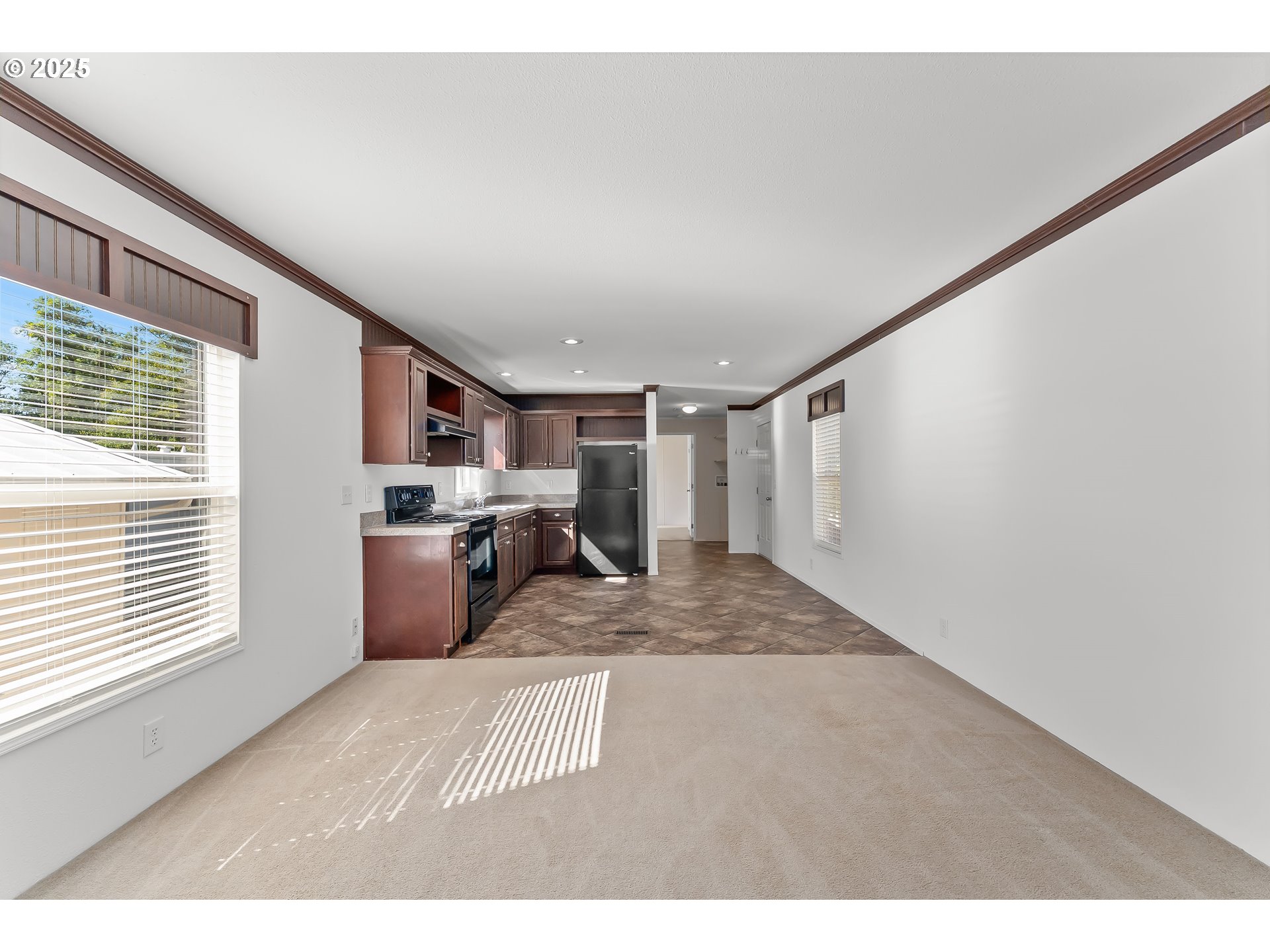 Located in a well-kept 55+ community with newly upgraded park infrastructure, this home benefits from all-new utilities. Peaceful creek-side setting and a friendly residential feel—close to town yet tucked away. This 2-bedrooms, 1-bath home offers an affordable and comfortable living setup with easy access to I-5 and just minutes from town. Featuring 746 sq ft and a modern floorplan with an open concept living room/kitchen area, and bedrooms located on either side of the home for privacy. This home feels brand new! Only lightly lived in, and recently updated with fresh interior and exterior paint, a new heat pump, and new front and back decks. The layout includes a dedicated laundry area, and all appliances are included, so you can move right in without the hassle. The covered carport with attached storage keeps your vehicle out of the elements and gives you extra room for tools or hobbies. Outside, the low-maintenance landscaping means less time doing yard work and more time doing whatever you want. Space rent is $650/month and includes water, sewer, and trash. This is a solid, easy-to-manage home in a quiet setting that keeps you close to everything without being in the middle of it all. Schedule your private tour today!