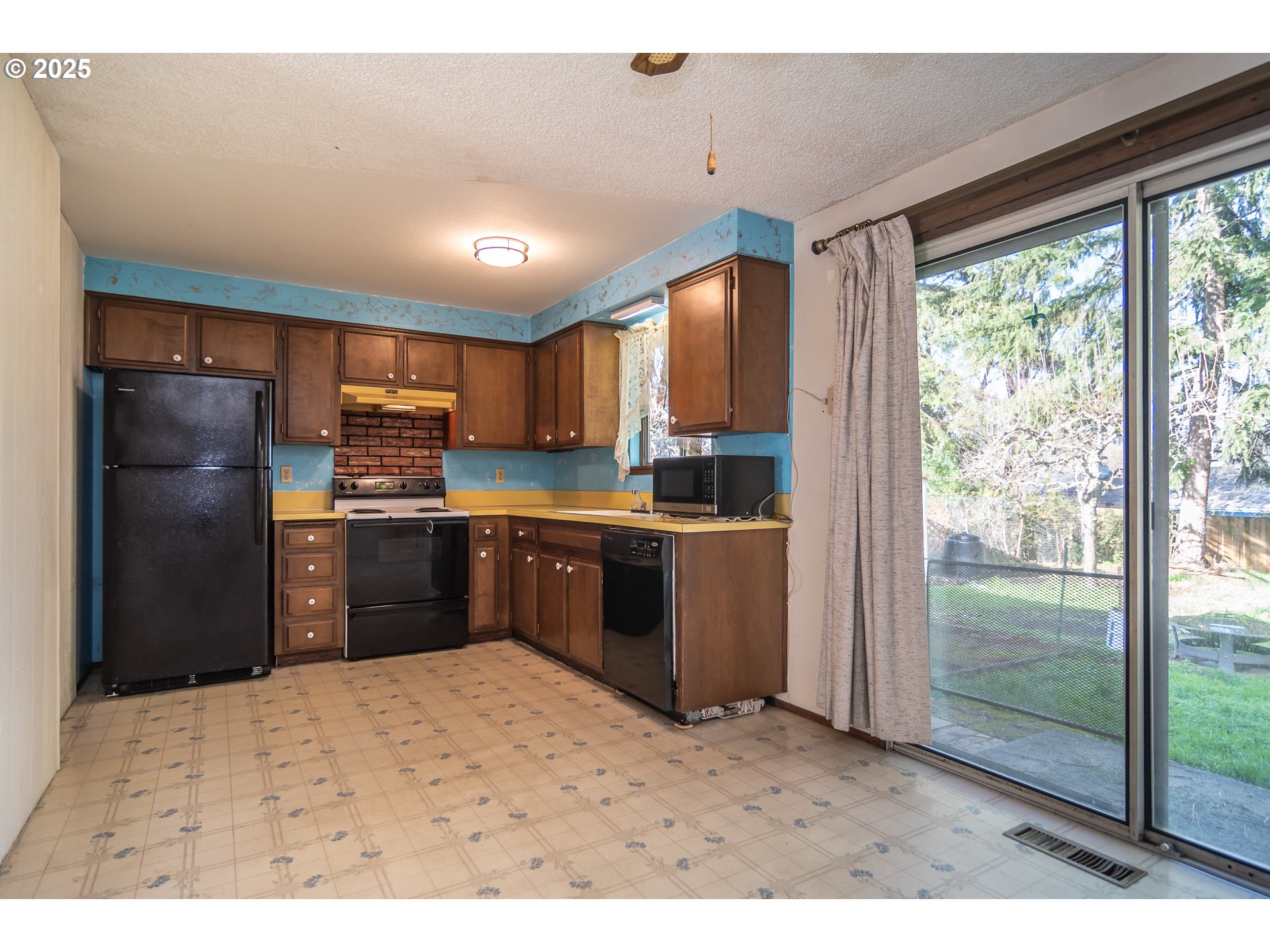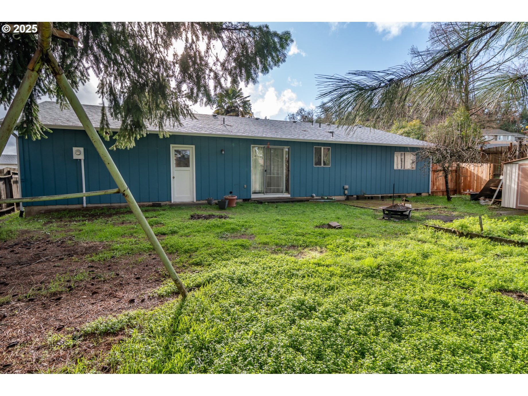 3-bedroom, 1-bath home with a spacious, fully fenced backyard! Recent improvements include a NEW roof, exterior paint, and gutters, offering peace of mind for years to come. All appliances stay, including the washer and dryer. The large driveway provides parking for three vehicles side-by-side or space for an RV. An oversized, extra-deep garage features a convenient man door leading directly to the backyard. Enjoy outdoor living with established landscaping, including a 38-year-old grapevine (perfect for juice), iris, roses, raised garden beds, and productive Bartlett and Asian pear trees. A tool shed adds extra storage, and the generous yard offers plenty of room for a clothesline, play equipment, pool, or future garden expansion. This well-maintained property combines practical updates, ample parking, and a versatile outdoor space—ready to fit a variety of lifestyles.