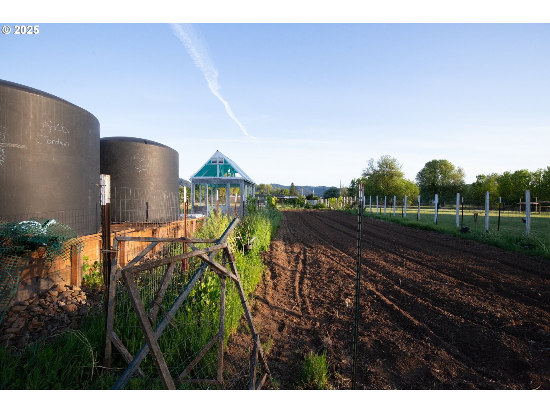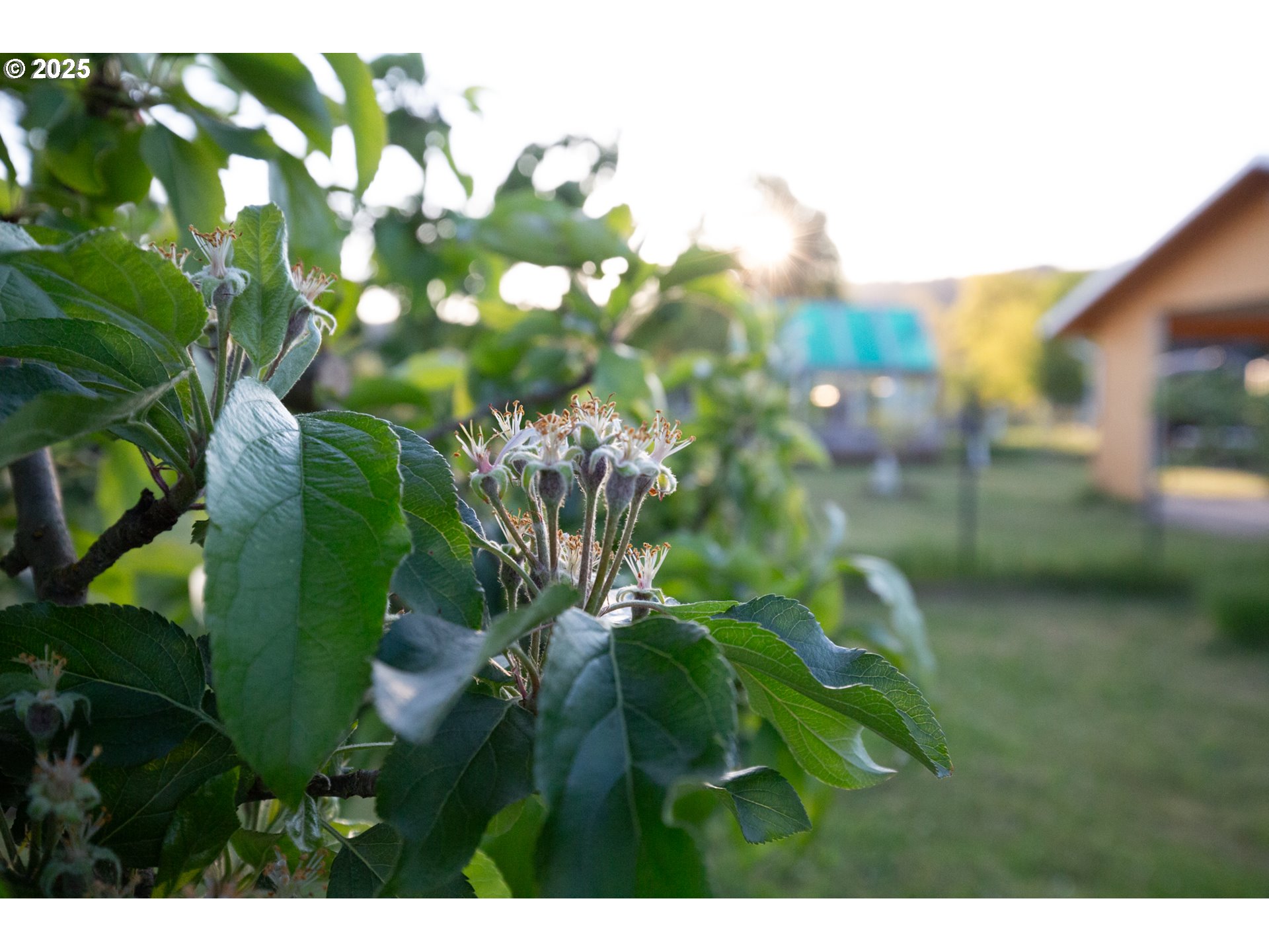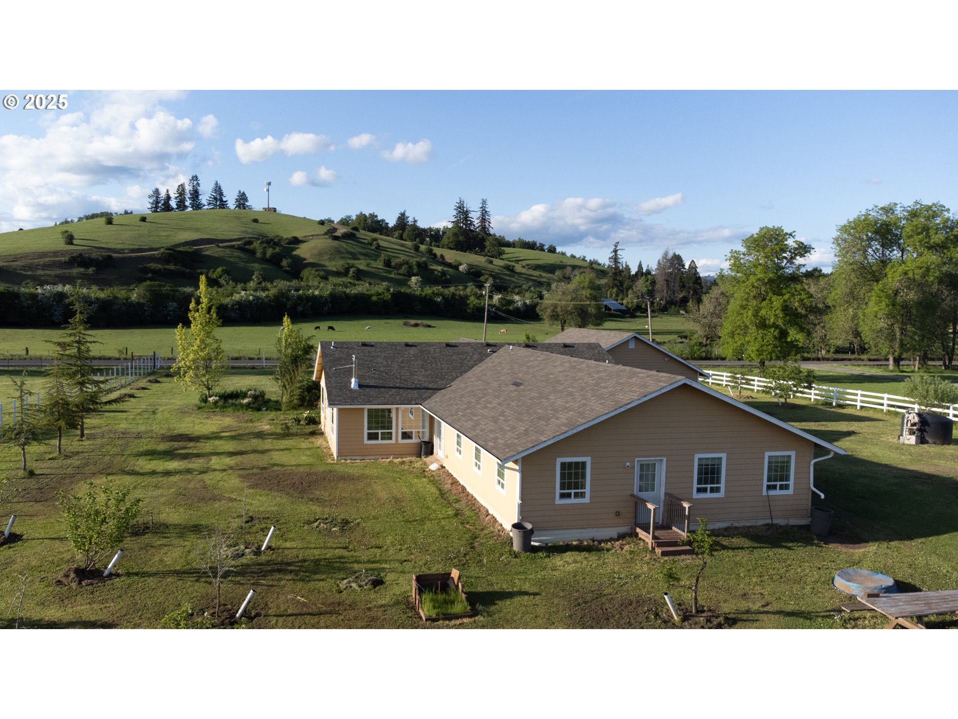 Rare opportunity to own flat land in this area! 4 bedroom 2 bath 3457 sq ft one level home is nestled on 2.46 flat acres and boasts beautiful hardwood floors and marble tile throughout. This home features a 1500 gallon holding tank and UV filter for drinking water. New roof installed February 2025 on the original house. New air conditioner March 2025. The home also has several new windows. The 31x38 great room with a corner bar is a must see and offers many opportunities!! Original garage was converted into a utility room/mudroom with 2 additional rooms perfect for storage, workout equipment, etc. 25x30 garage with power added in 2013. Orchard provides multiple varieties of fruit and nut trees (55 total) have been meticulously cared for, including Apple, cherry, fig, nectarine, peach, pear, plum, dates, figs, pomegranate, persimmon, hazelnut, and almonds. Fenced in garden also has thornless blackberries ,raspberries, and gooseberry plants. Detached 29x29 garage with power also has a covered patio. Large poultry coop and run are ready for your animals!!
